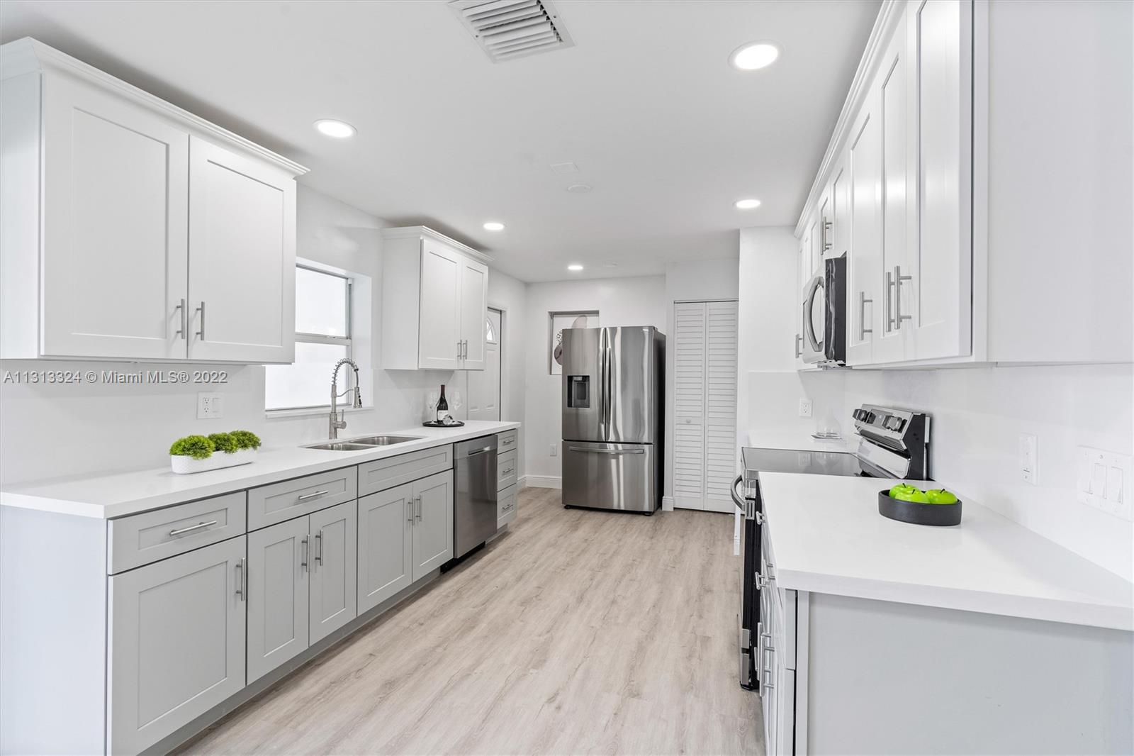 Beautiful open and bright fully renovated single story 3 bedroom 2 bathroom in the heart of Miramar. Property features stunning kitchen boasting white quartz counters and backsplash. All new SS appliances. AC new 2019 fully serviced. Water softer unit. Impact windows, Fully fenced backyard, perfect for a pool or entertaining. Best part NO HOA.