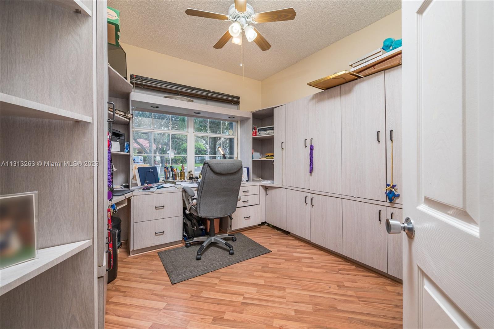 Oversized lot on quiet cul-de-sac! Walk to temple and A+++ schools! Located in the sought after 24 hour guard gated community of Embassy Lakes adjacent to a lovely community park. With-in walking distance of the main club house with huge community pool, exercise room & tennis courts. Spacious foyer entry. Classic marble-look tile in the living areas, laminate in the bedrooms. High volume ceilings throughout. Large master has dual sinks and separate Roman tub/shower, walk-in closets. Kitchen has a loads of wooden cabinet storage, a pantry & a huge snack counter. Inside laundry. Patio is extended. Enormous fenced back yard. Roof is 14 years old. Newer A/C. Accordions. Active community with gorgeous tree canopies and sidewalks throughout.
