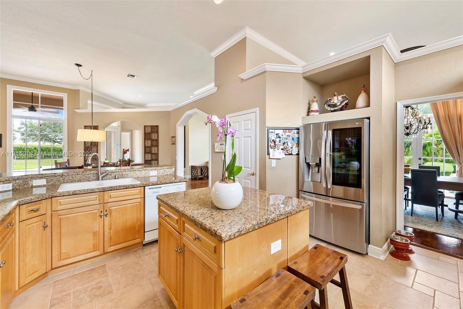 New Year, New Home! Providing a feeling of serenity and privacy, Casa Mia is a breathtaking, courtyard home nestled on a nearly half-acre premier lot in the beautiful resort-style community of Sunset Lakes. The courtyard entrance impresses every time! The main home has 6 bedrooms & 5 full baths. The guest house has 1 bedroom & 1 full bath. Walk out through the french doors from the family room, master suite or guest house into the courtyard which has an open and covered patio area and pool. High ceilings and natural light cascade throughout the home creating an open and inviting feeling. And because of the way this home is situated on the lot, you will enjoy endless hours of family and entertaining time in privacy and comfort.