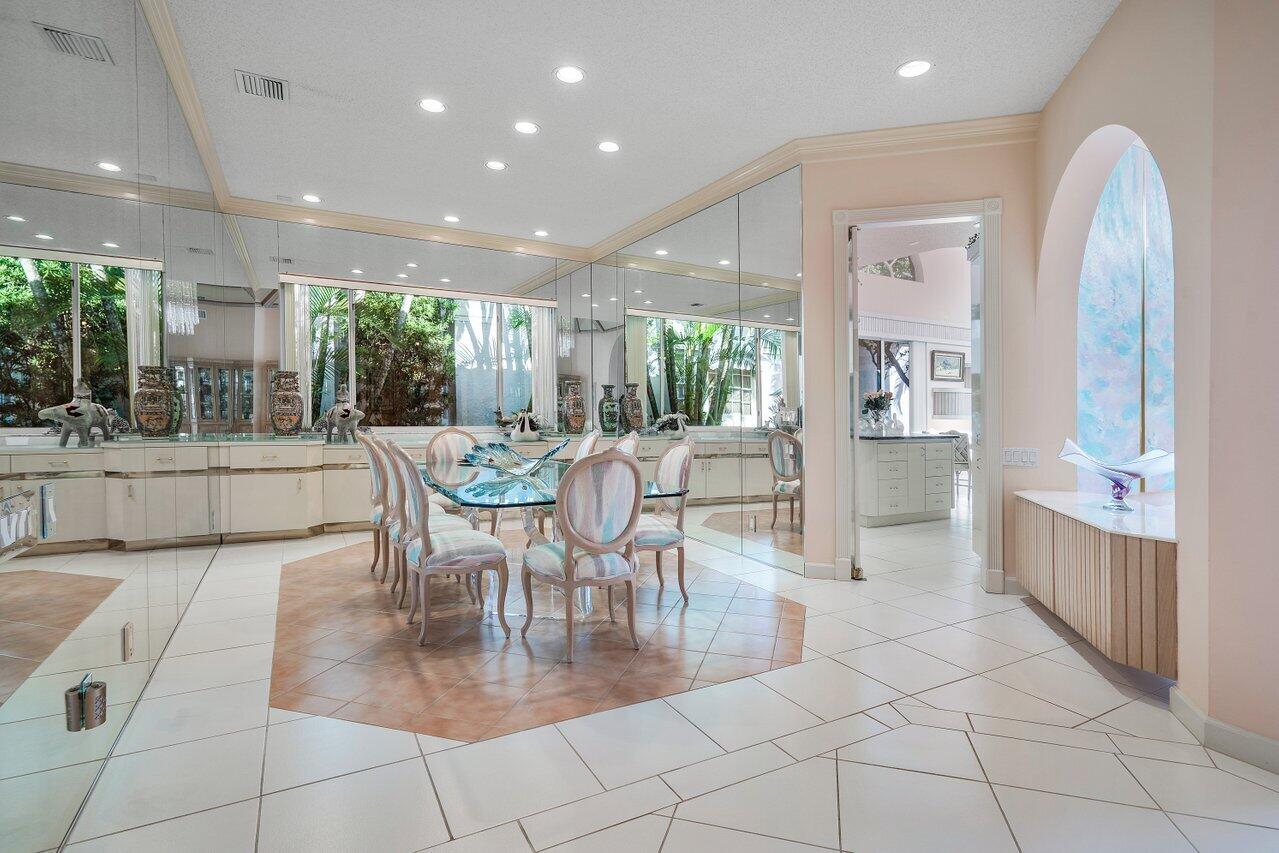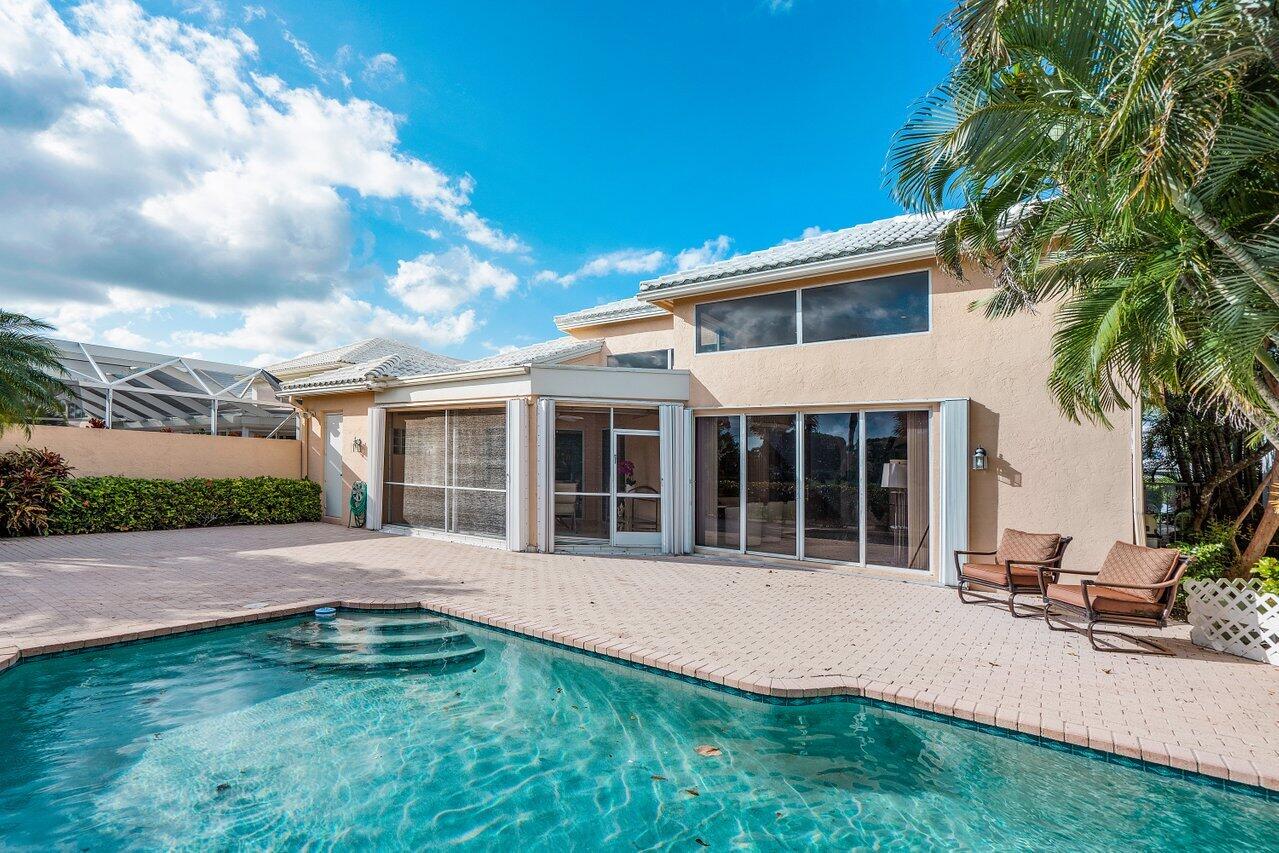 An opportunity to customize your own estate awaits! Located in one of the premier sections in The Polo Club, this Waterford home offers beautiful vistas of both lake and long golf views of the 9th and 10th holes on the Equestrian golf course. This one-story home has an expansive layout, beautiful volume ceilings, and a desirable split floor plan. The grand foyer catches your attention with the double-height statement ceiling. A large living room offers access to the screened-in patio where you can enjoy the private pool and views. Flowing seamlessly from the living room into the family room, a convenient wet bar is great for entertaining. The kitchen offers ample storage, a built-in work desk, and an eat-in area. The formal dining room is the perfect place to fit large gatherings but can