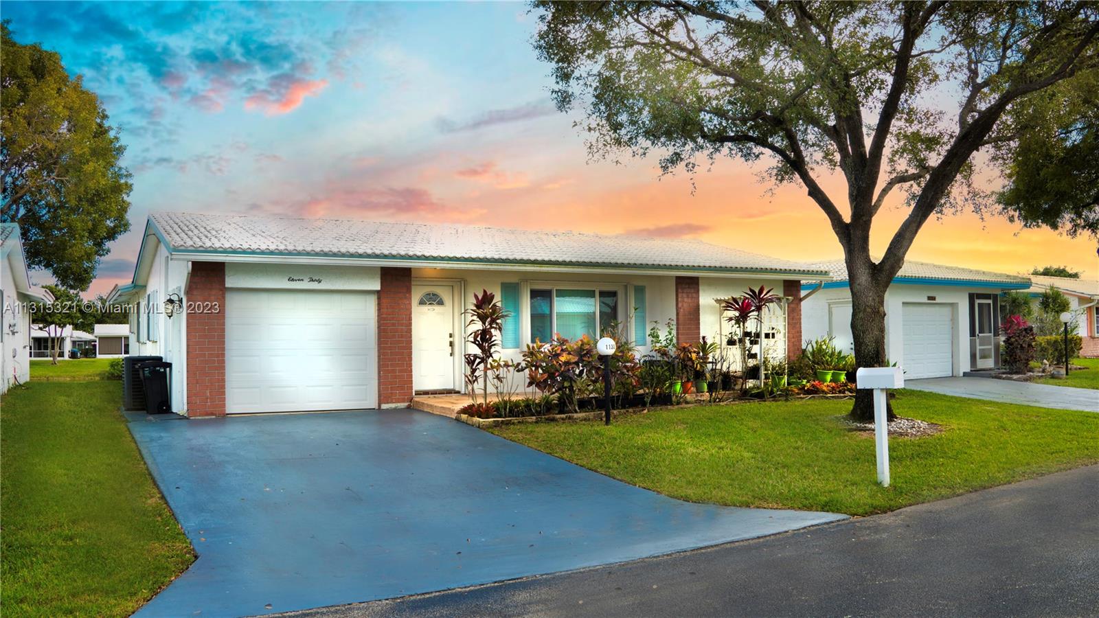 Beautiful Lake View Model Home. 2/2 split bedrooms with walking closets and tile through out the unit. Updated about 5 years ago. This is a 55+ over community. Unit has a NEW AC with screened in patio, hurricane shutters and impact windows with beautiful lake view double wide driveway and 1 car garage. Big Clubhouse with lots of entertainment, tennis courts, courtesy bus. Move in ready !!!