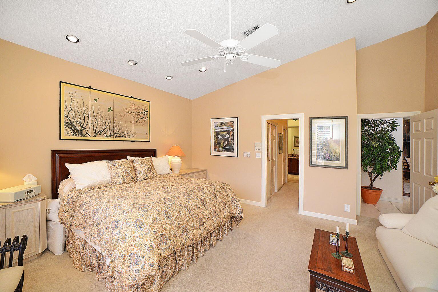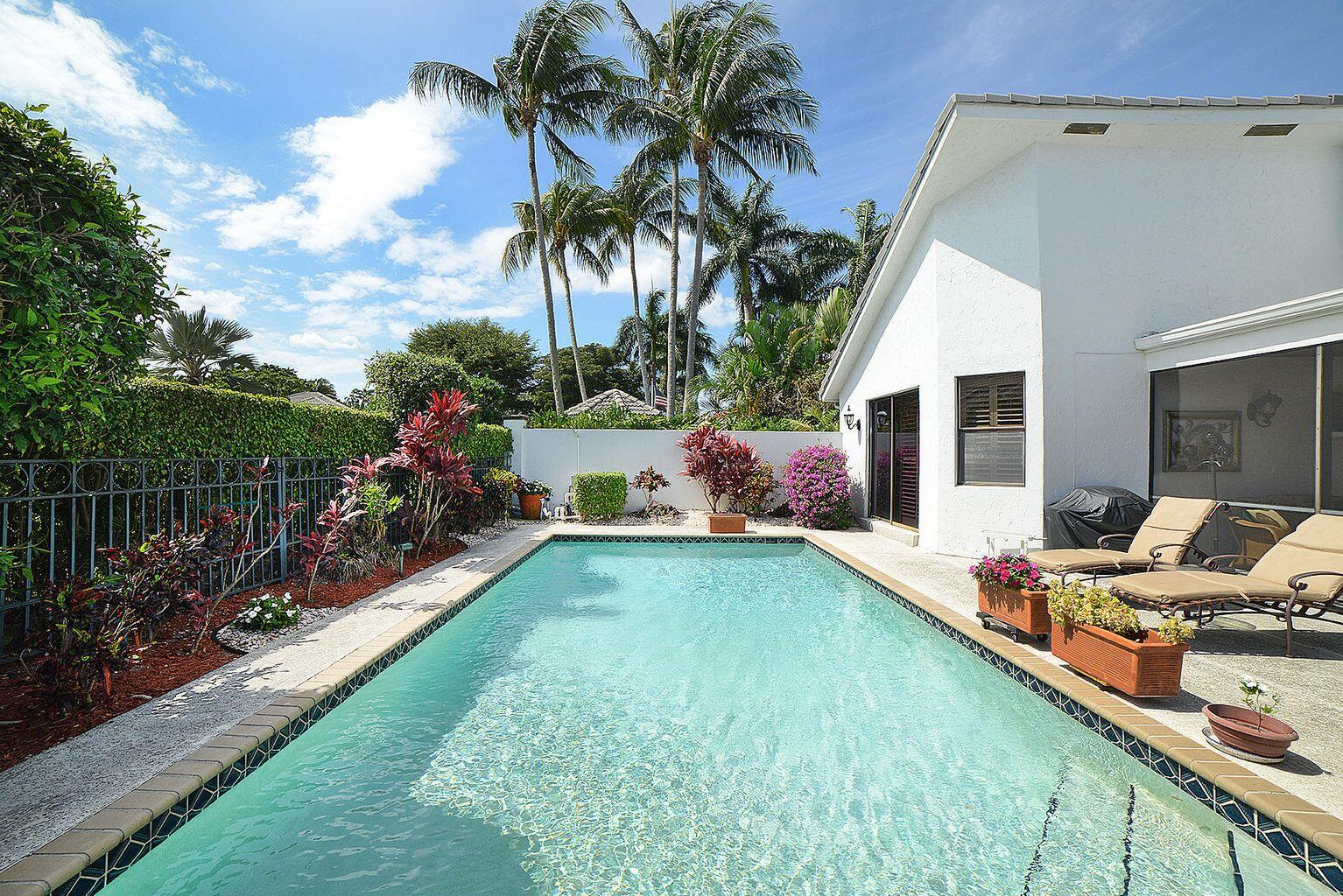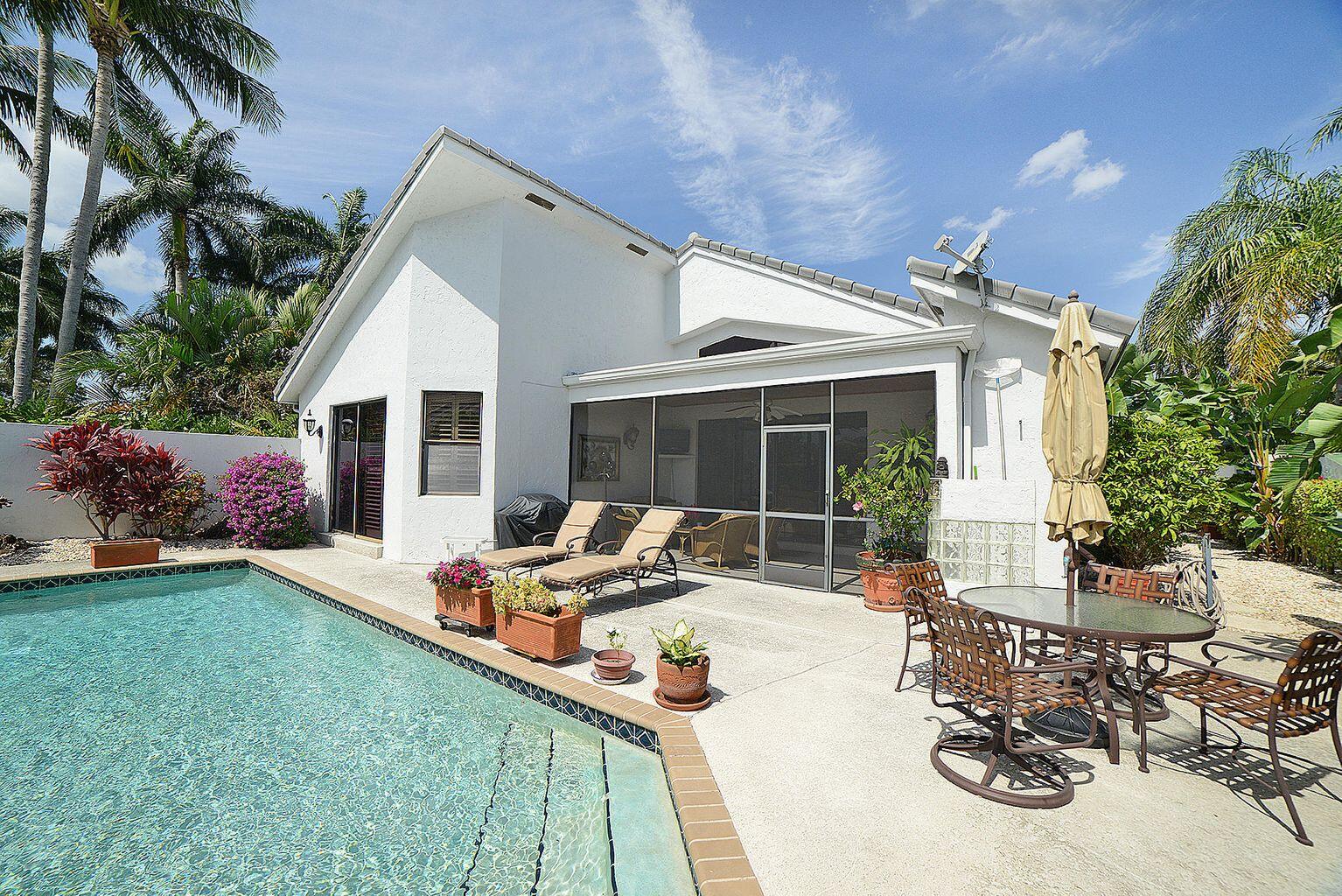 For those wanting to escape winter's cold for Florida sunshine, this 2 bedroom + convertible den, 2.5 bath home, located in the Fairway Bend village of Broken Sound is the perfect getaway. Inside you will find an open floor plan with light and bright vaulted ceilings & neutral colors throughout. The large primary bedroom is decorated with elegant plantation shutters, features a large walk-in closet & offers direct access to the private backyard patio. The skylight in the primary en suite bath allows an abundance of natural light on the dual sinks, jacuzzi tub & walk in shower. The open eat in kitchen has plenty of counter space, stainless appliances and storage pantry. The outdoor space is perfect for relaxing & entertaining beside your private pool with beautiful landscaping & privacy.