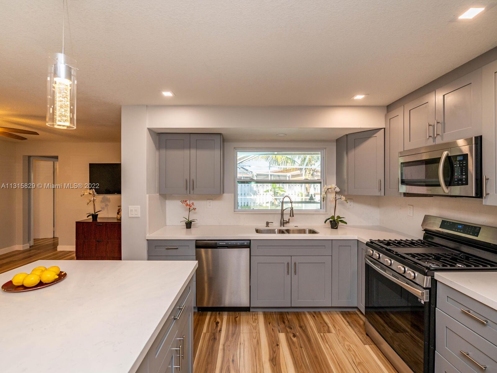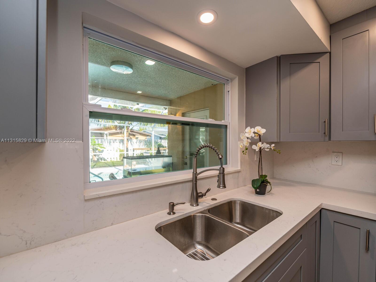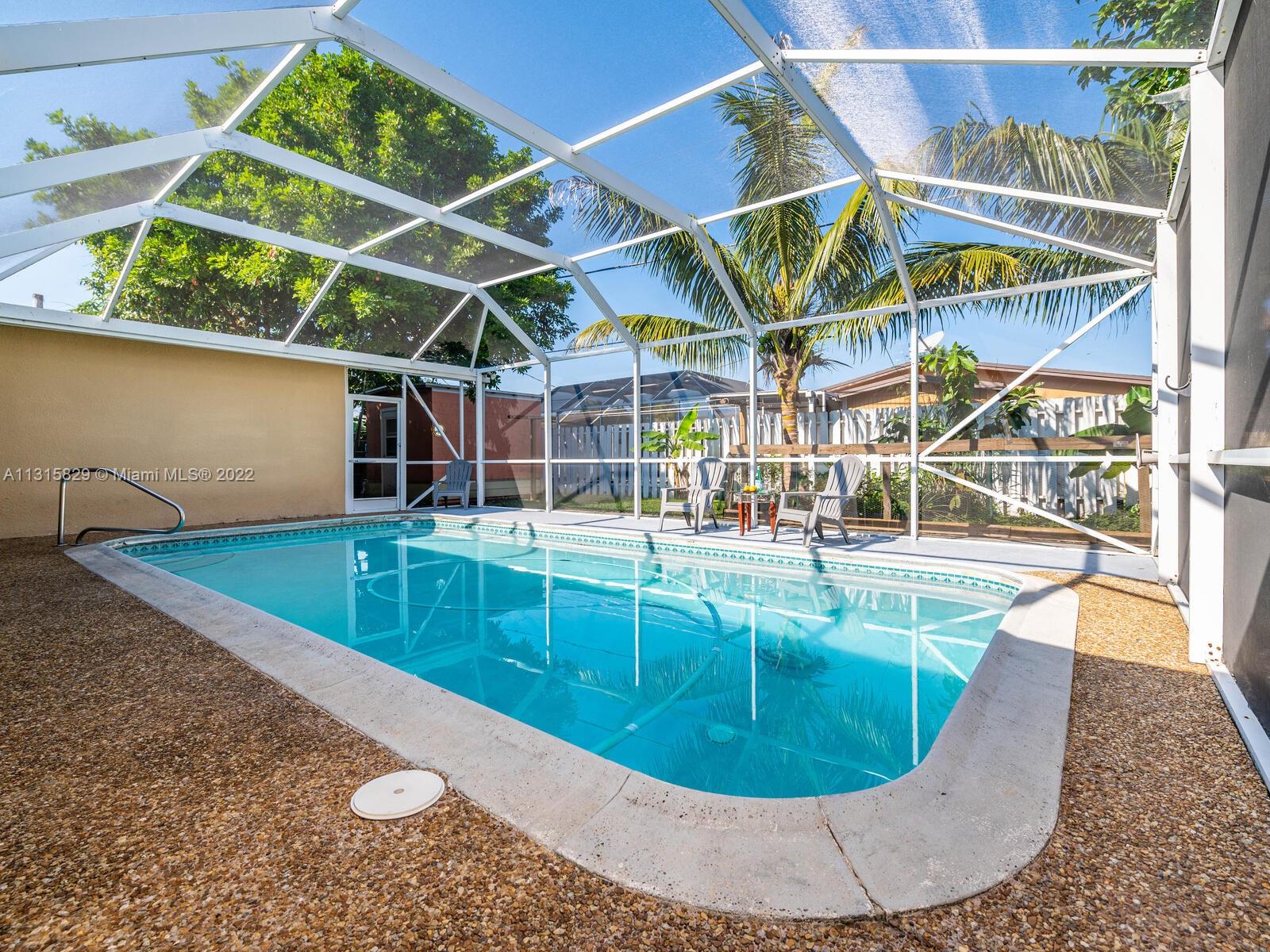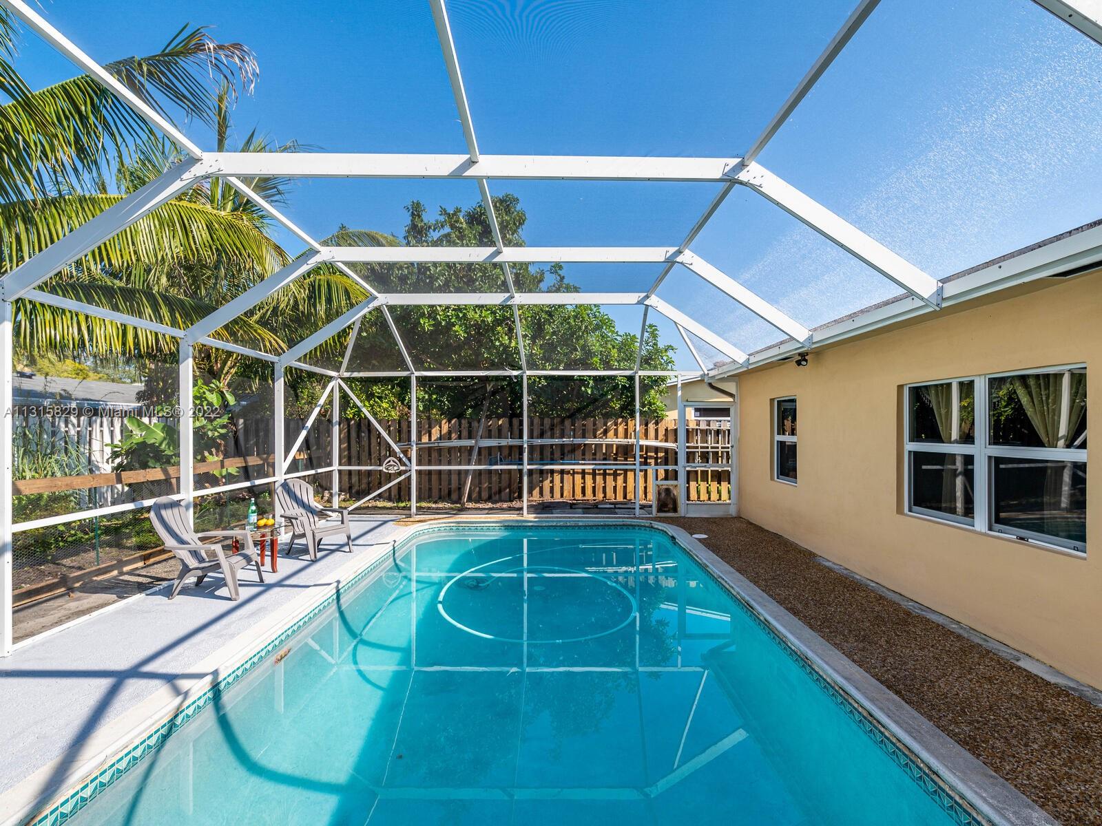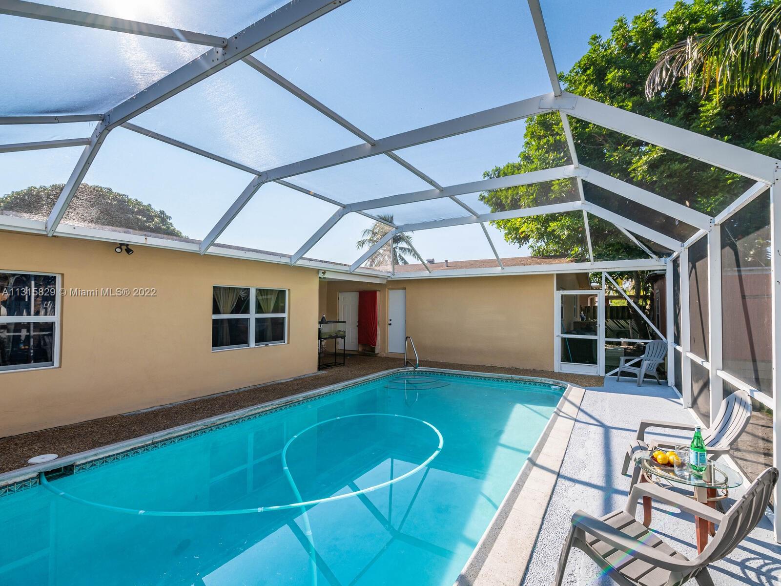 A Great house to call home sweet home with the option to receive a monthly income. The property has been completely remodeled, Primary bedroom with spacious walk-in closet & primary bathroom with a comfortable Jet hot tub. The property also offers an attached studio with a private entrance. Walk into a spacious and bright open-concept kitchen with top-of-the-line appliances & Island with calacatta quartz countertops. Wood flooring throughout. 3 exits to Pool area, screened-in cover patio, fruit trees & more. All permitted, garage legally converted to a wonderful studio or guest quarters or the college kid. Properties living area is 2,570. Impact windows throughout, except front window.