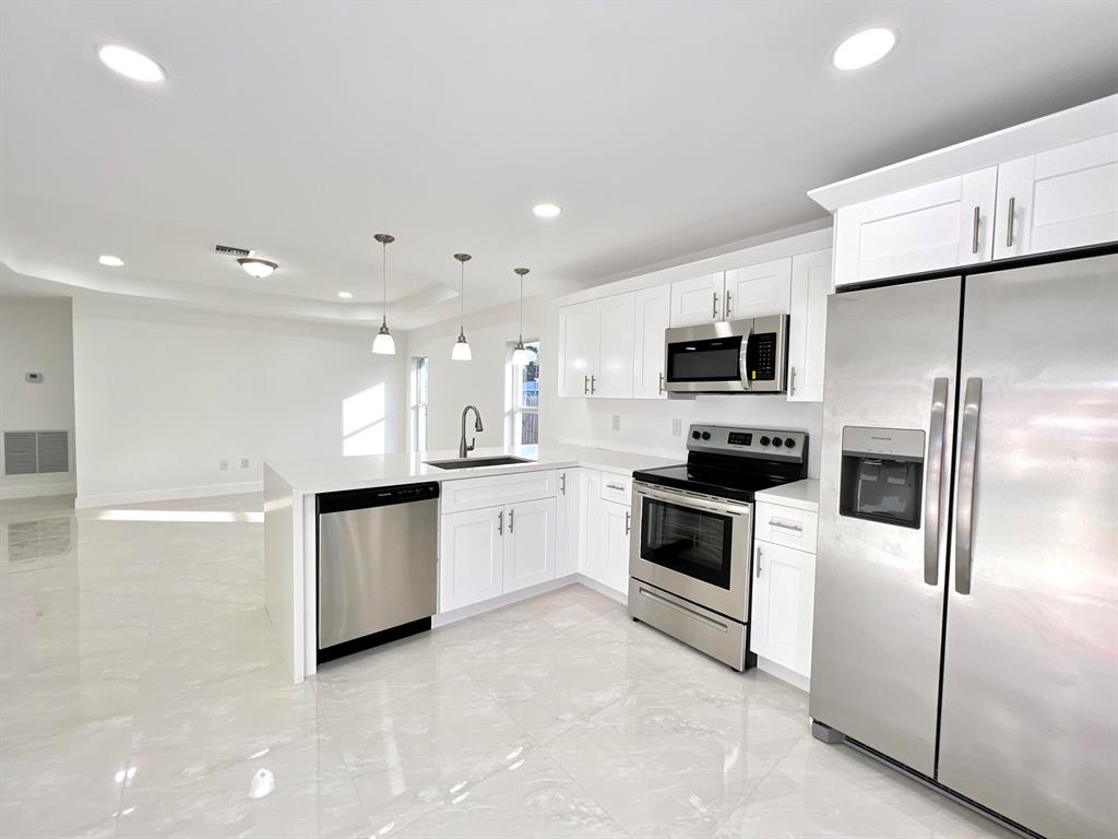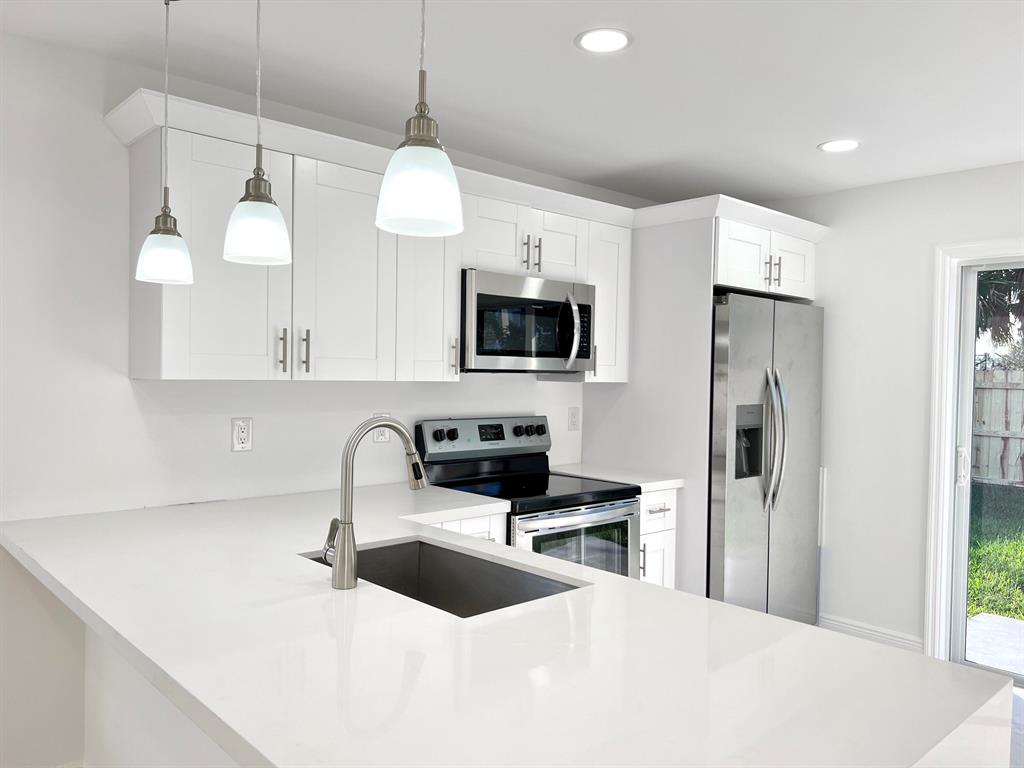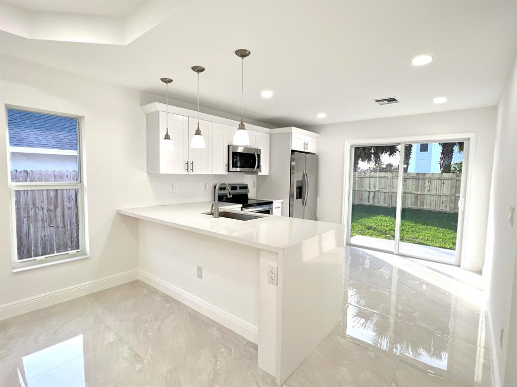 Gorgeous NEW CONSTRUCTION single family residence in the heart of West Palm Beach. The house boasts a bright, open living area and kitchen with quartz countertops, white wood cabinetry, stainless steel appliances. The property also features porcelain tile flooring, dual sink bathrooms, cathedral ceilings, impact doors and windows, and much more. Make this charming house yours today!