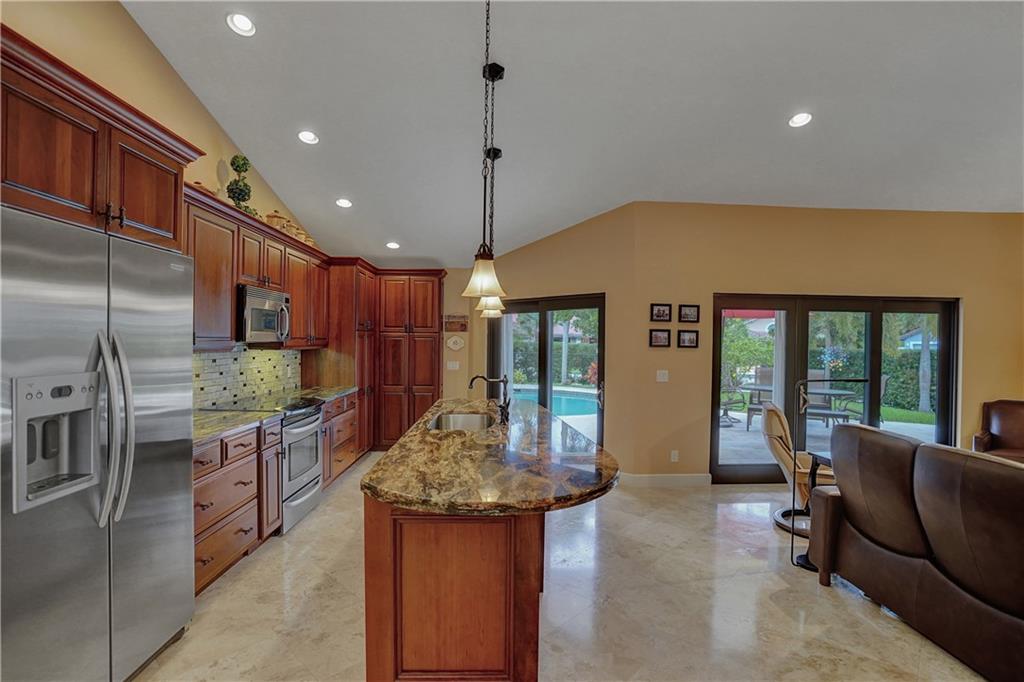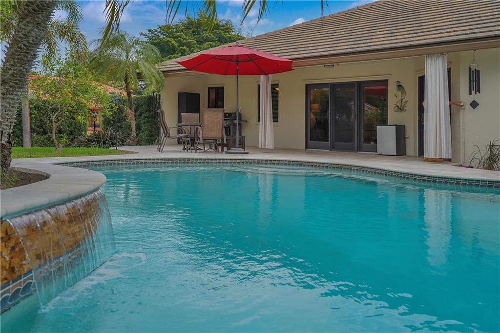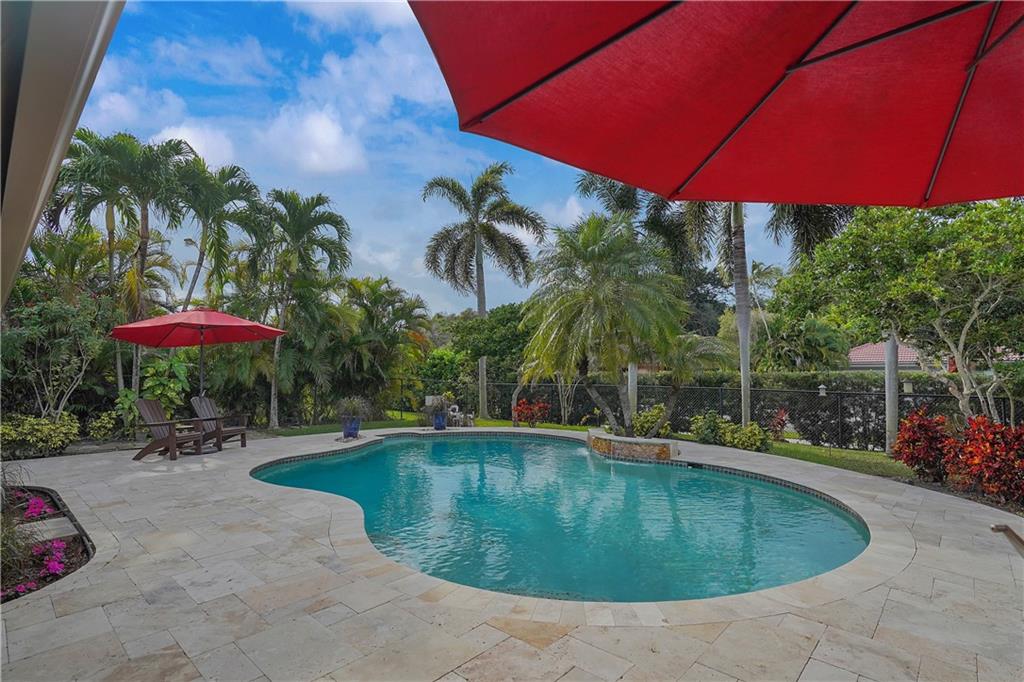 Welcome to your very own corner lot in the extremely quiet neighborhood of Oak Knoll Ridge in Davie…with the added benefit of the Pine Ridge Island County Club. This home features custom kitchen cabinets, SS appliances, high hat lighting, travertine flooring, impact windows and doors throughout and an open layout that flows into the backyard for entertaining. This oasis offers you a beautiful yard, travertine decking, covered patio, and a swimming pool with water falls that was redone in 2016. There is a beautiful nature trail that leads to the country club and children's playground. The roof was replaced in 2008 with flat concrete tile. With quick access to I-595 and plenty of shops, this home has been lovingly cared for by the owners and is ready for a new family to enjoy.