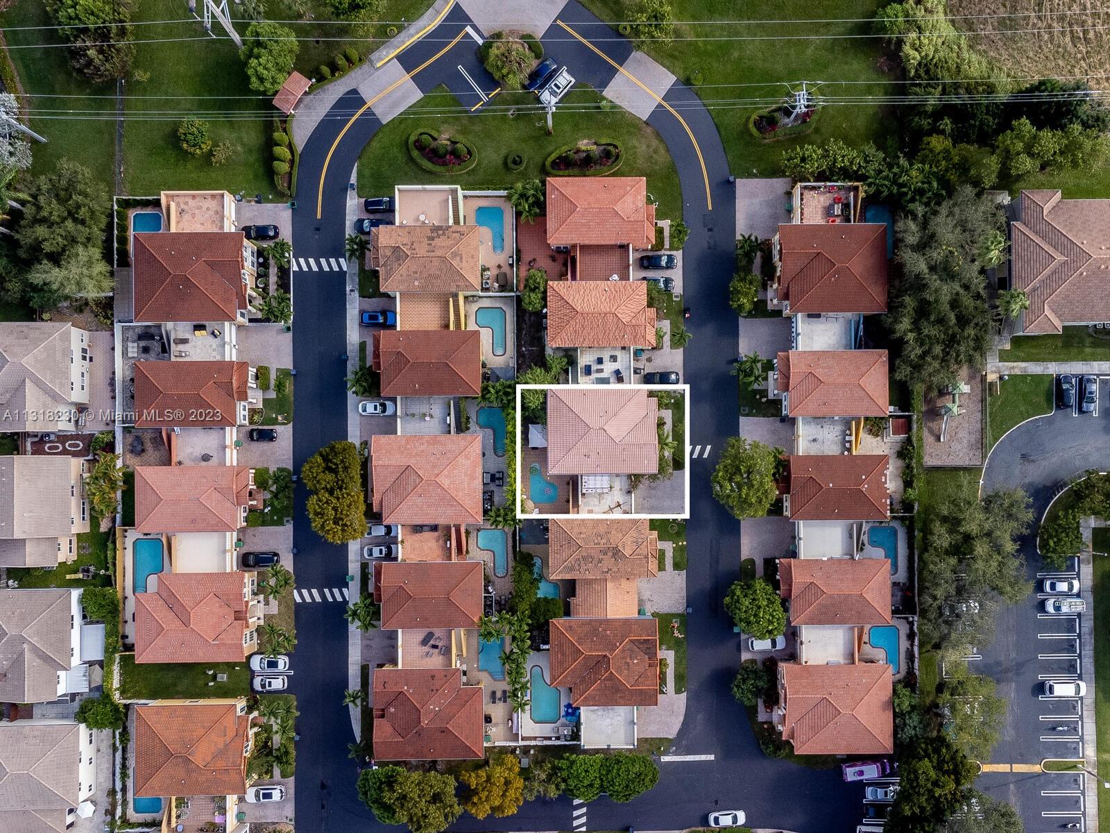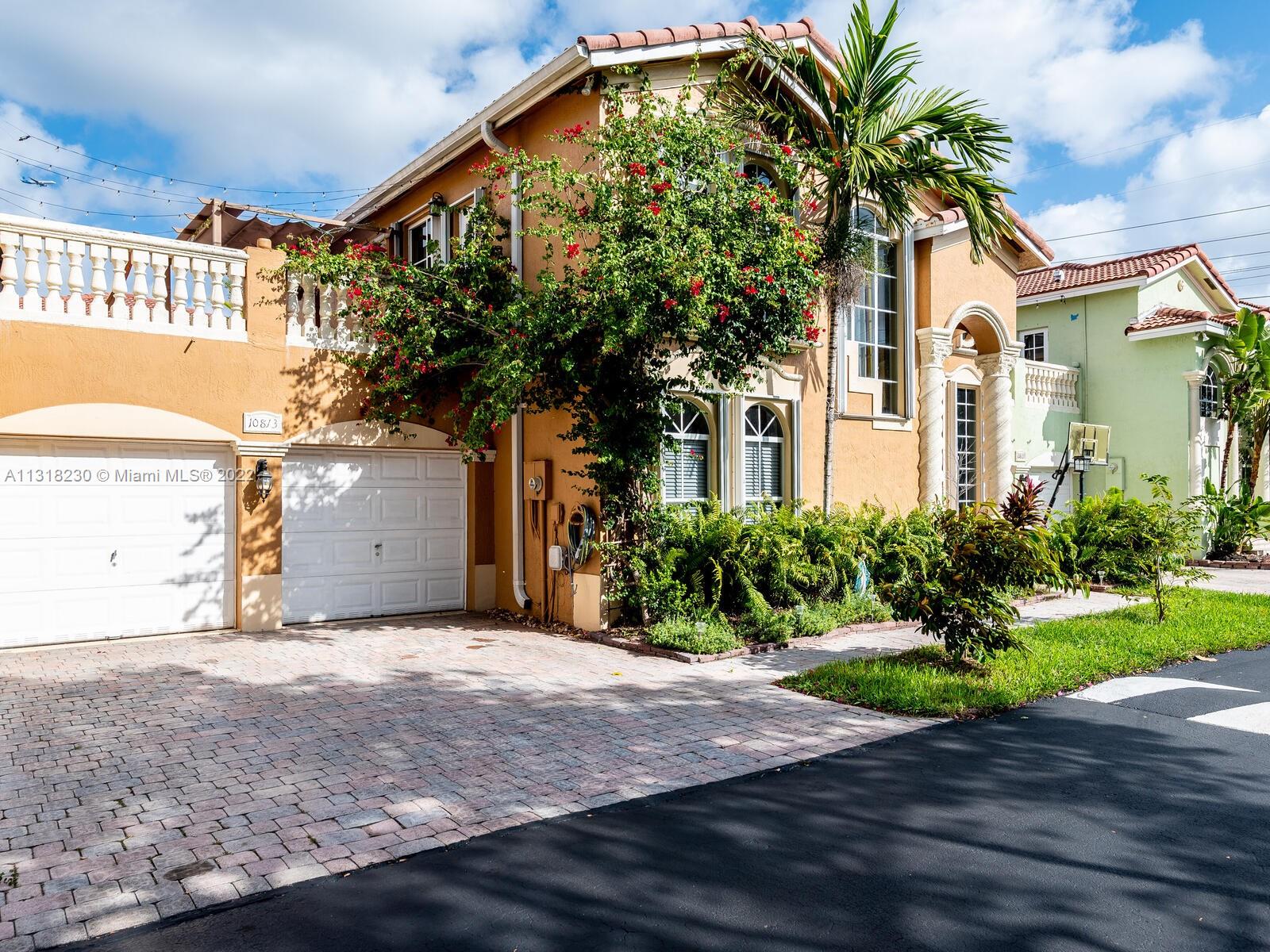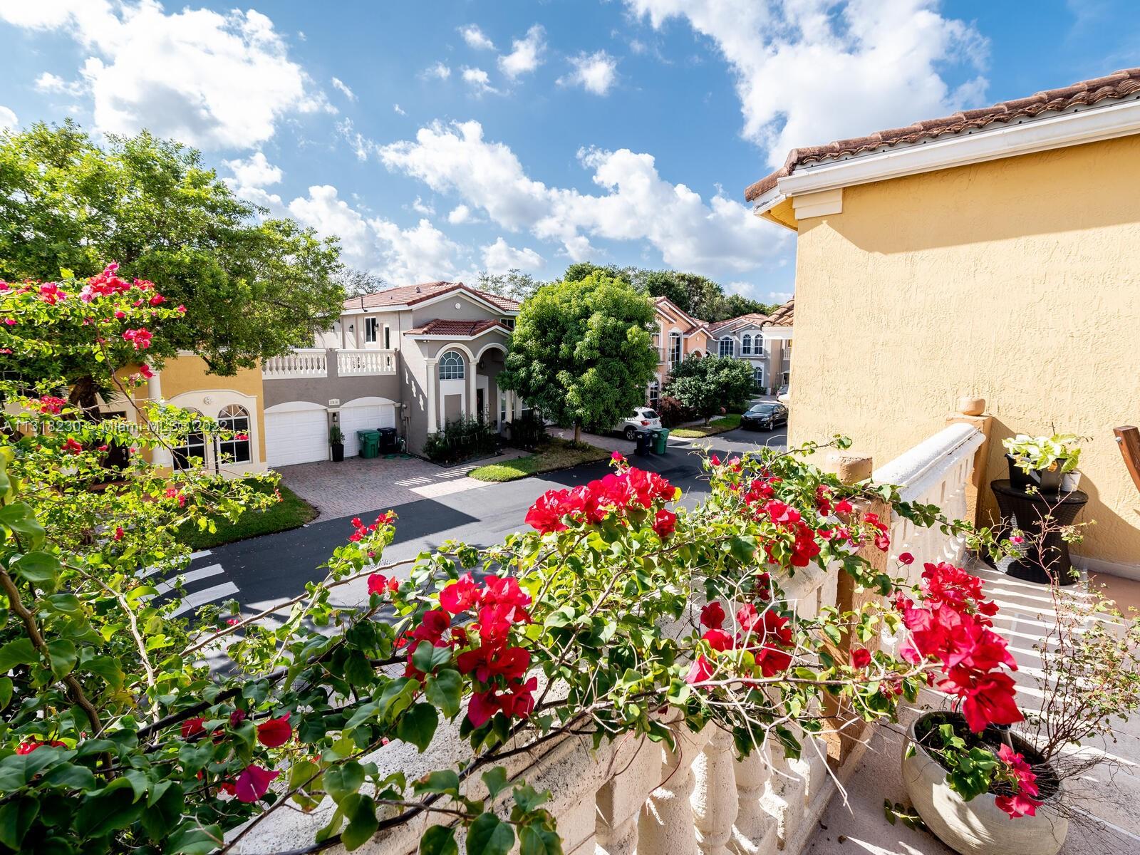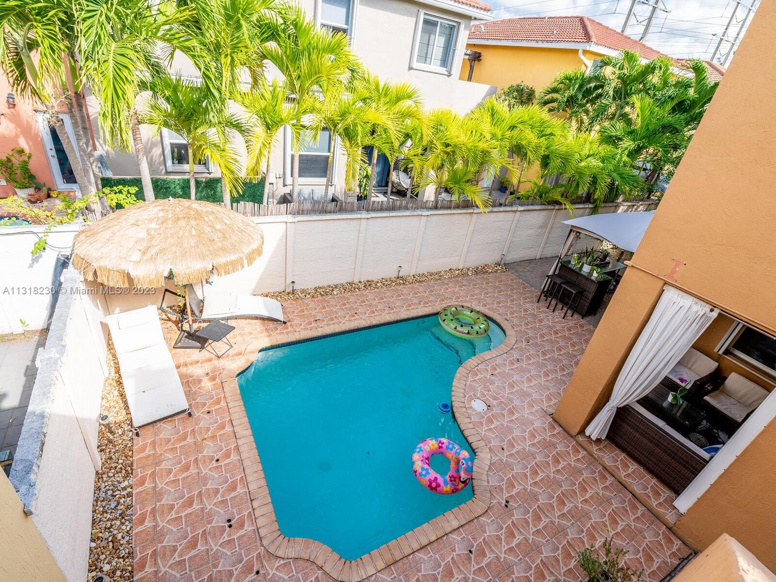 REDUCED...Great Location, Spectacular Mediterranean style. 4BR 3.5 Bath home, formal living and dining room, huge family room, LOFT, roof top terrace/sun deck overlooking the spacious patio and your own in ground POOL. Eat-in kitchen with wood cabinets, granite countertops, and SS appliances, full bedroom and bath downstairs, tile downstairs and wood laminate 2nd floor. Hurricane rated accordion shutters. Large two car garage, Outside shower/cabana bath, low HOA includes gated security, alarm, cable, walking distance to schools, shopping, entertainment, basic cable TV and ADT monitoring included. BACK ON THE MARKET. ROOF NEEDS REPAIR. CASH ONLY. Offer with proof of funds