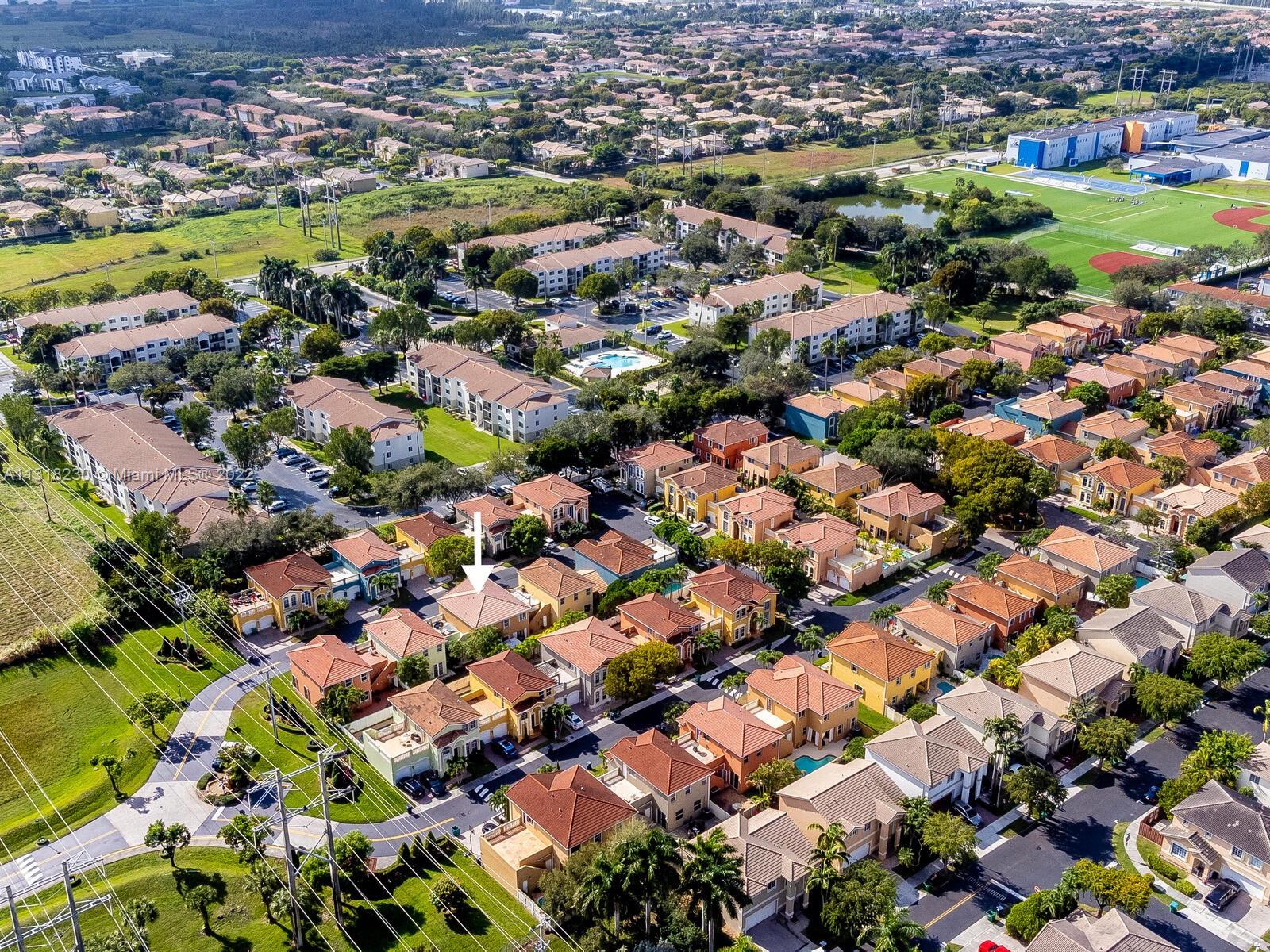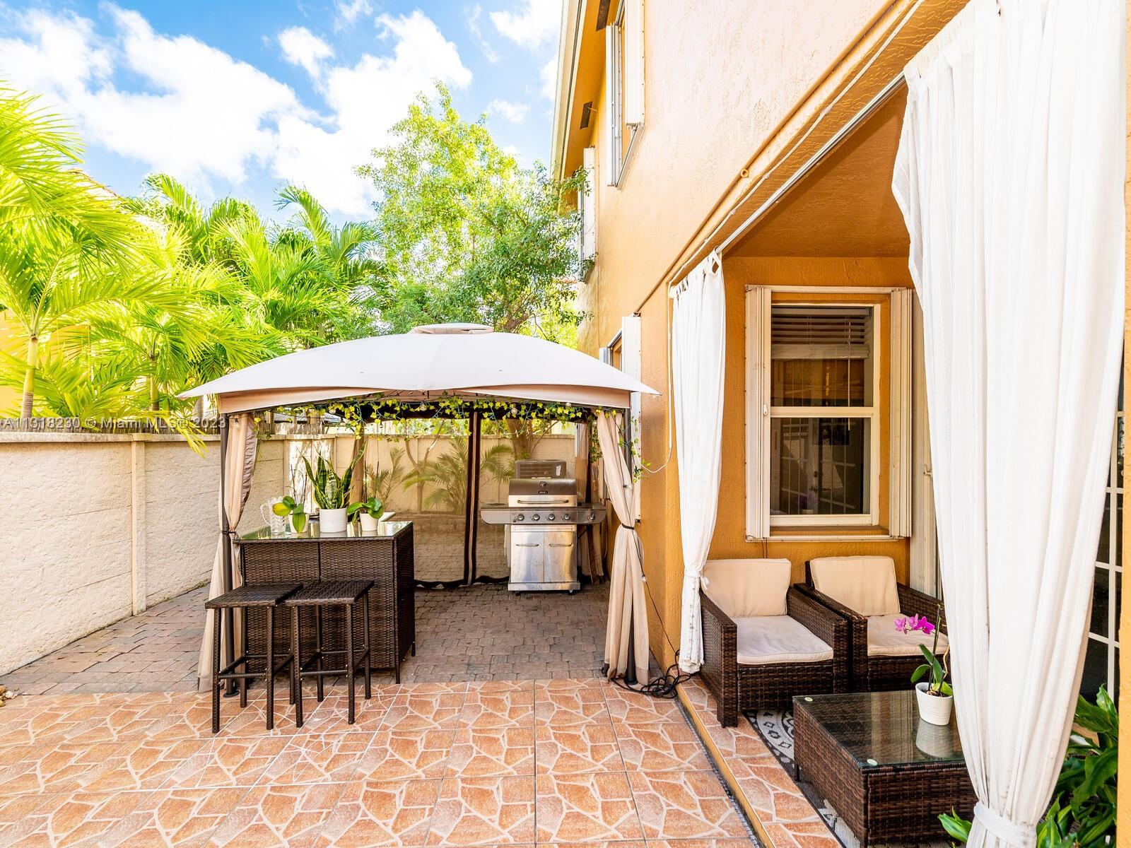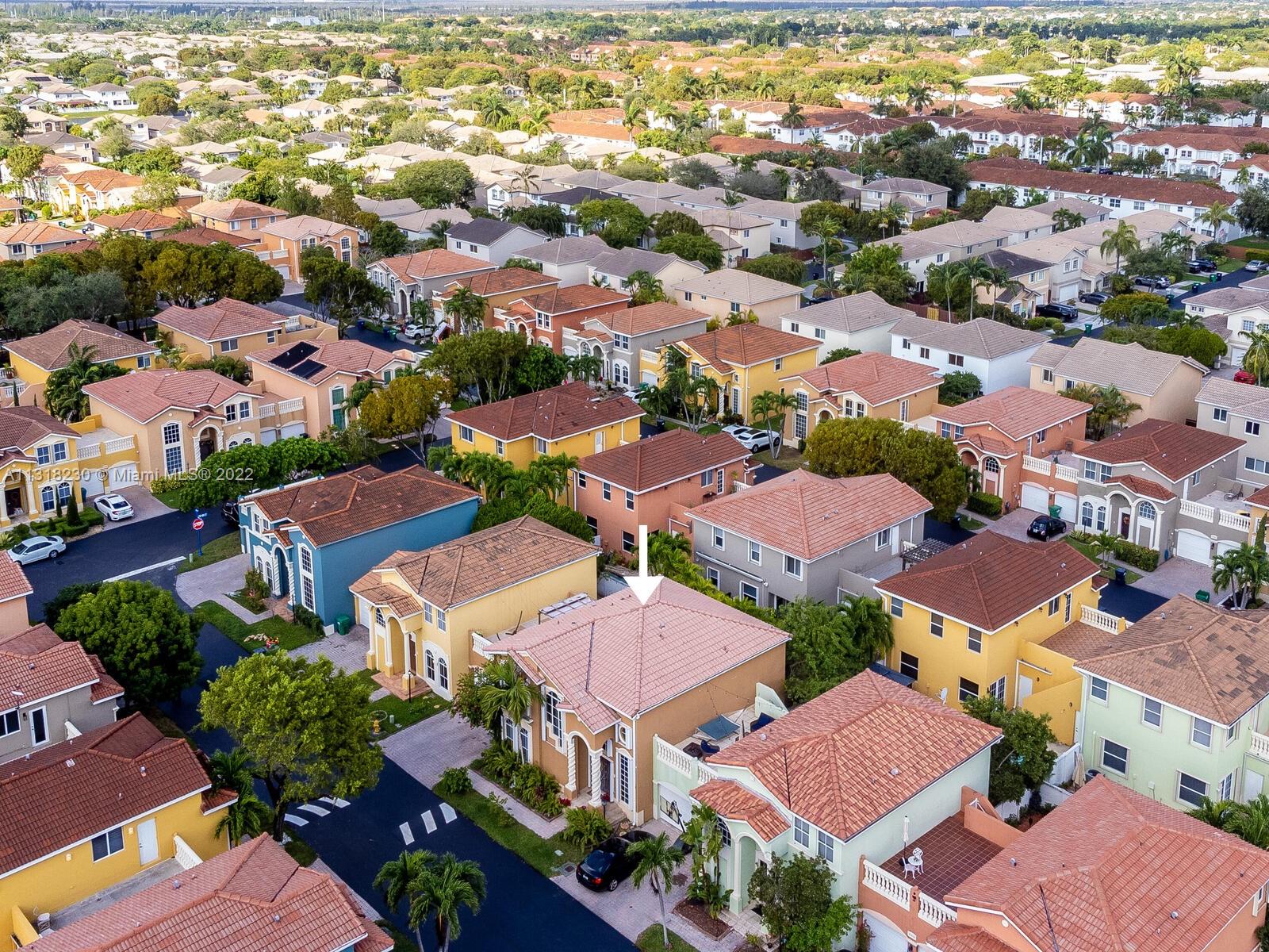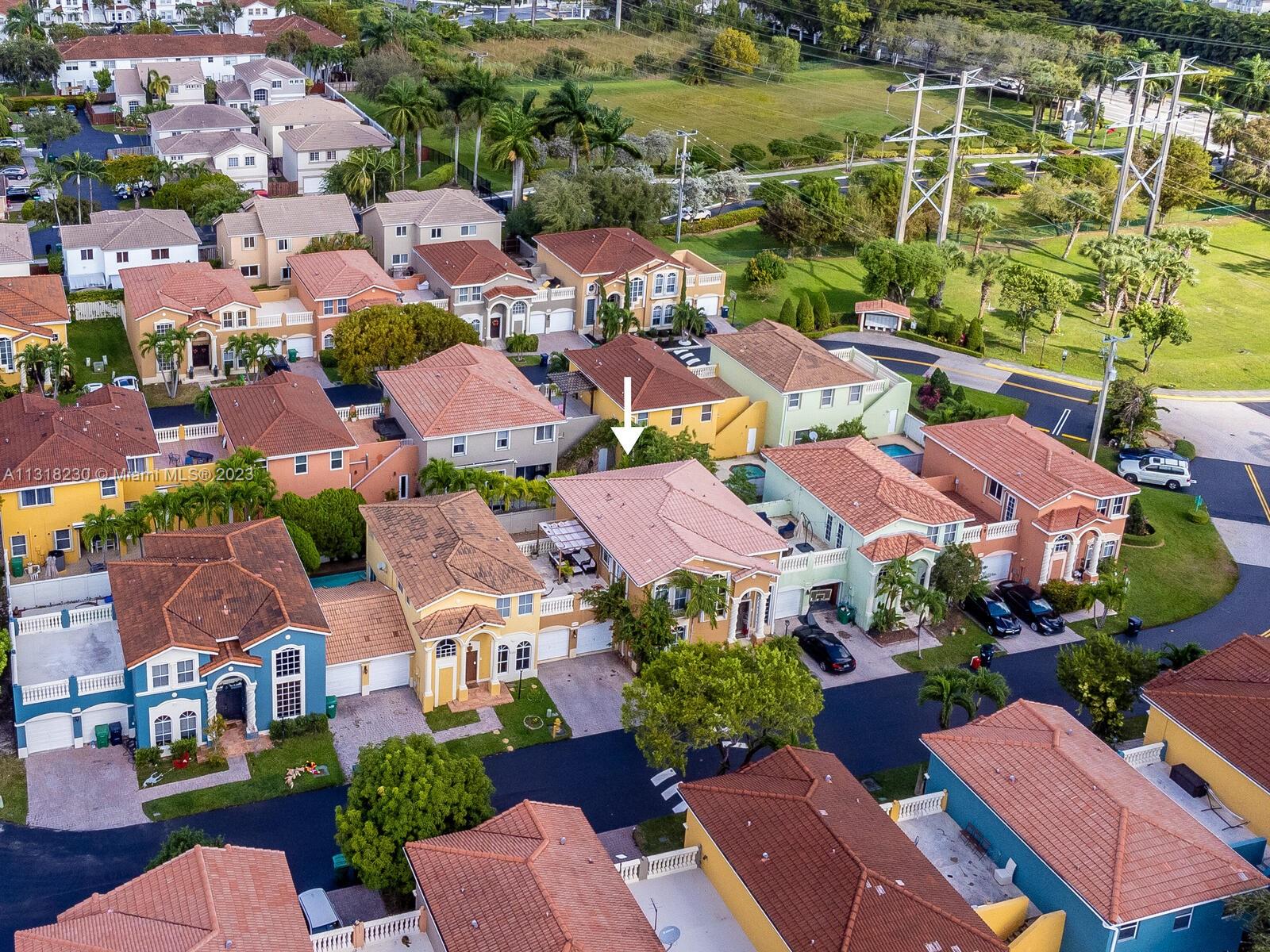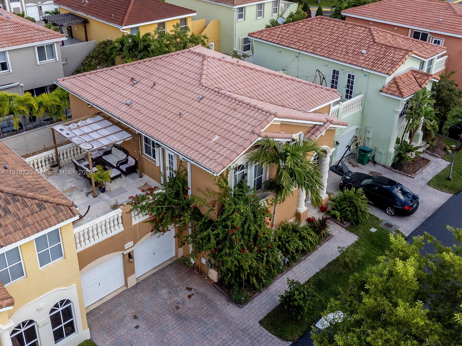 REDUCED...Great Location, Spectacular Mediterranean style. 4BR 3.5 Bath home, formal living and dining room, huge family room, LOFT, roof top terrace/sun deck overlooking the spacious patio and your own in ground POOL. Eat-in kitchen with wood cabinets, granite countertops, and SS appliances, full bedroom and bath downstairs, tile downstairs and wood laminate 2nd floor. Hurricane rated accordion shutters. Large two car garage, Outside shower/cabana bath, low HOA includes gated security, alarm, cable, walking distance to schools, shopping, entertainment, basic cable TV and ADT monitoring included. BACK ON THE MARKET. ROOF NEEDS REPAIR. CASH ONLY. Offer with proof of funds