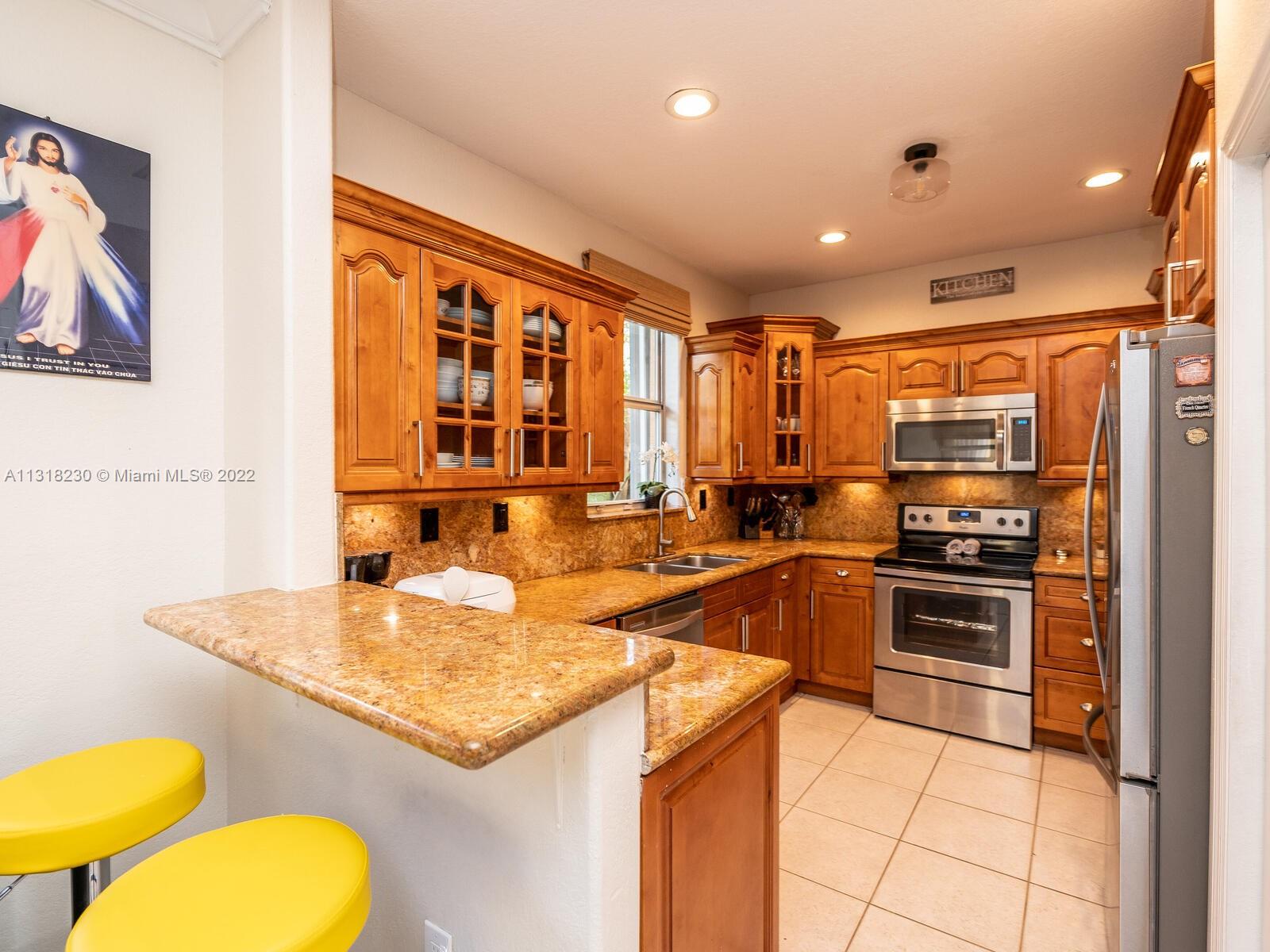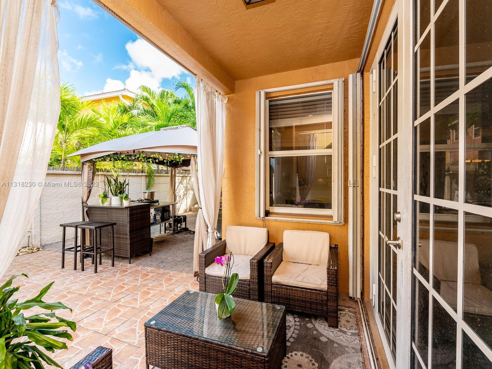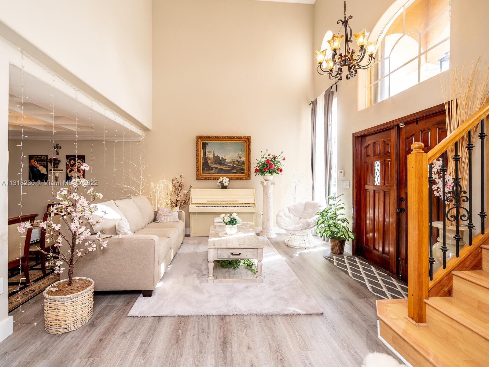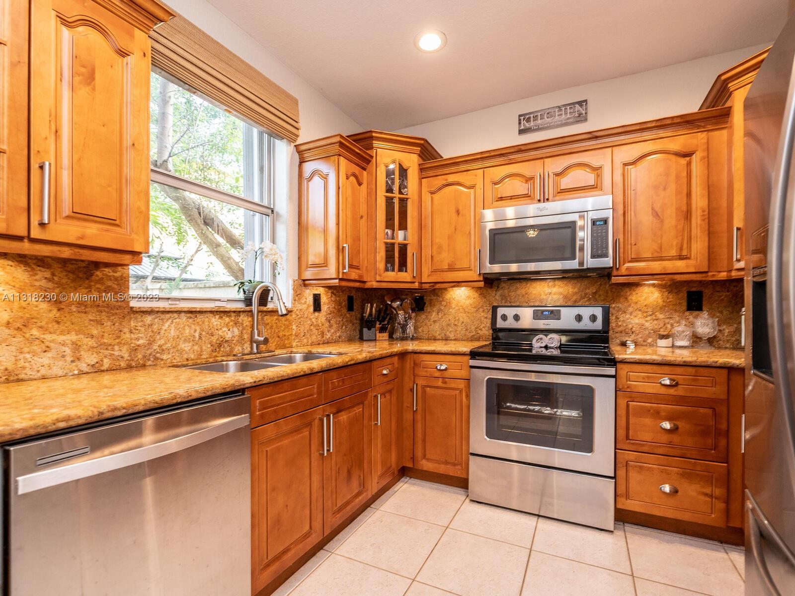 REDUCED...Great Location, Spectacular Mediterranean style. 4BR 3.5 Bath home, formal living and dining room, huge family room, LOFT, roof top terrace/sun deck overlooking the spacious patio and your own in ground POOL. Eat-in kitchen with wood cabinets, granite countertops, and SS appliances, full bedroom and bath downstairs, tile downstairs and wood laminate 2nd floor. Hurricane rated accordion shutters. Large two car garage, Outside shower/cabana bath, low HOA includes gated security, alarm, cable, walking distance to schools, shopping, entertainment, basic cable TV and ADT monitoring included. BACK ON THE MARKET. ROOF NEEDS REPAIR. CASH ONLY. Offer with proof of funds
