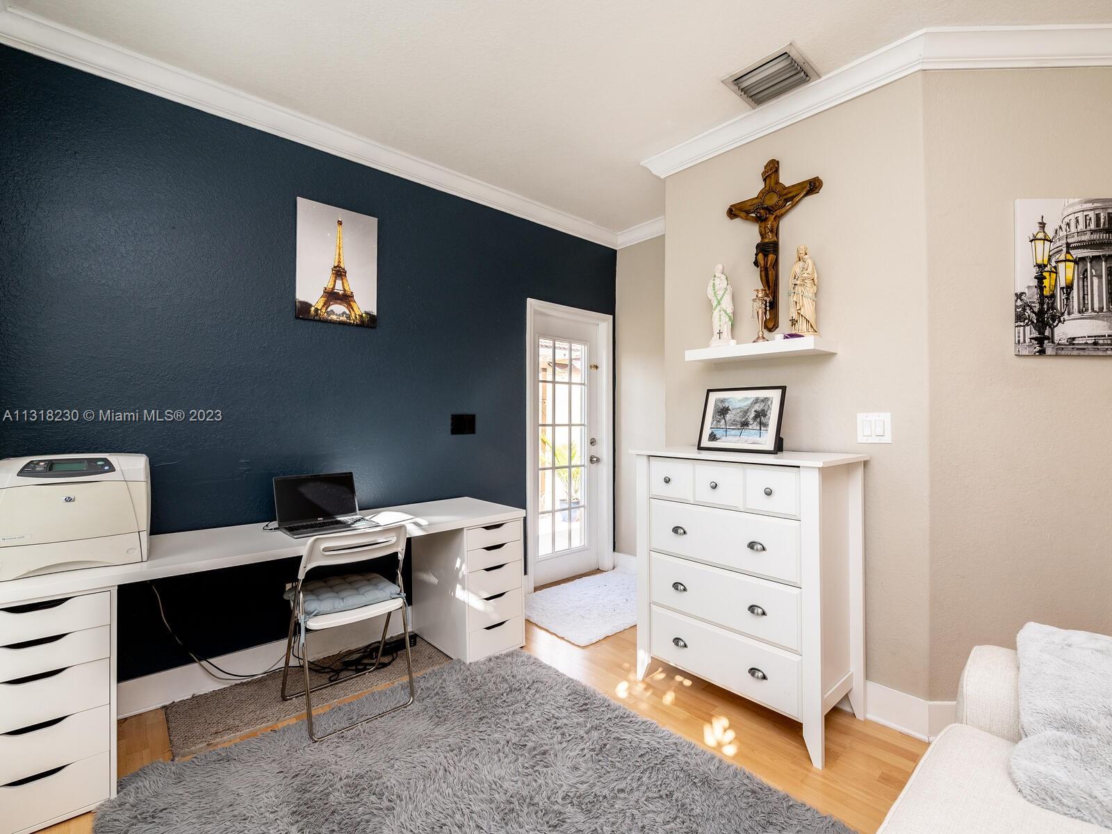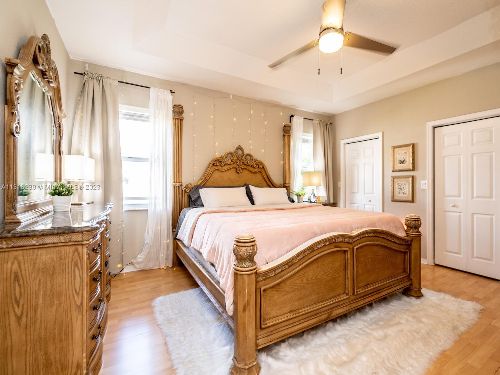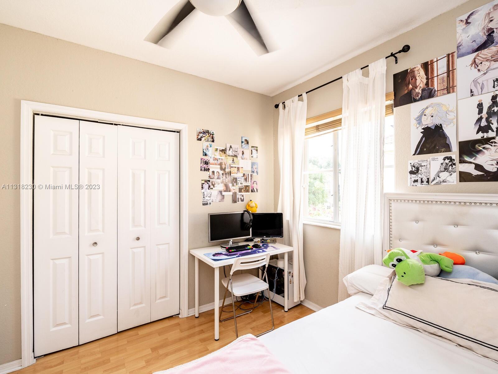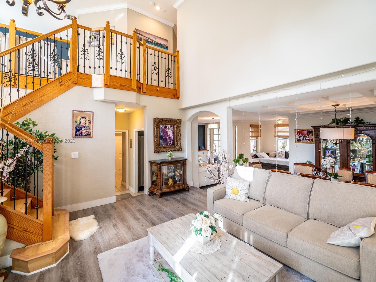 REDUCED...Great Location, Spectacular Mediterranean style. 4BR 3.5 Bath home, formal living and dining room, huge family room, LOFT, roof top terrace/sun deck overlooking the spacious patio and your own in ground POOL. Eat-in kitchen with wood cabinets, granite countertops, and SS appliances, full bedroom and bath downstairs, tile downstairs and wood laminate 2nd floor. Hurricane rated accordion shutters. Large two car garage, Outside shower/cabana bath, low HOA includes gated security, alarm, cable, walking distance to schools, shopping, entertainment, basic cable TV and ADT monitoring included. BACK ON THE MARKET. ROOF NEEDS REPAIR. CASH ONLY. Offer with proof of funds