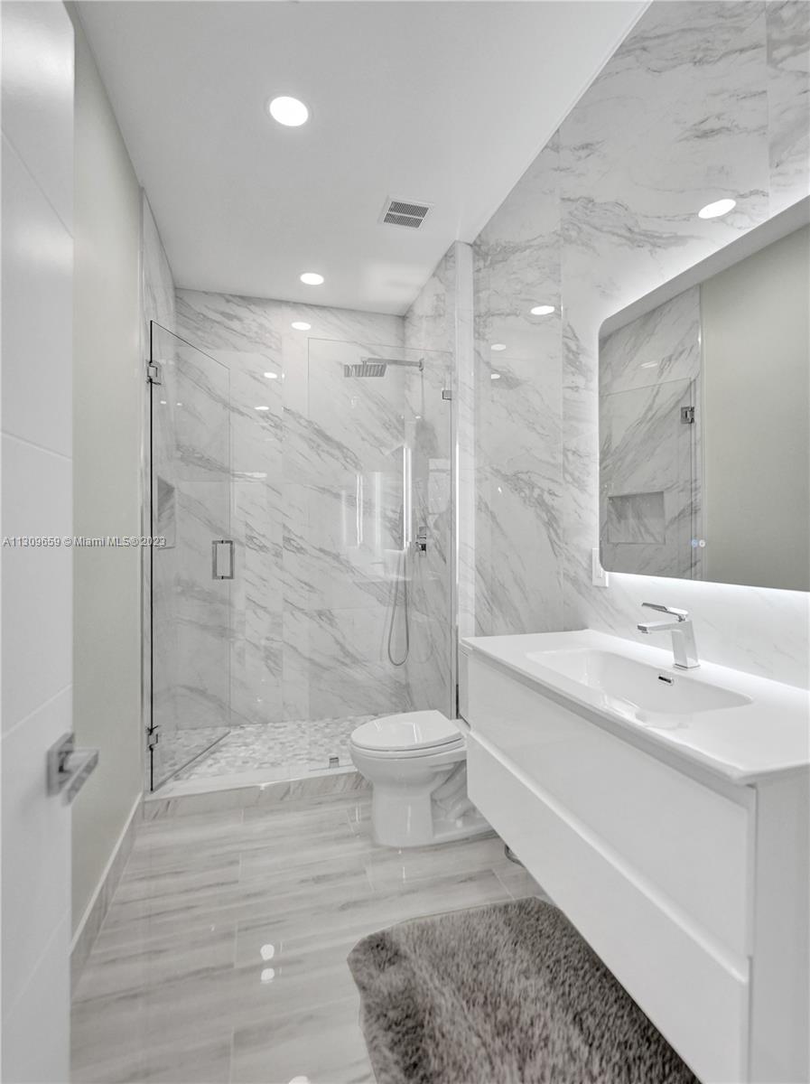 Contemporary & elegant, fully renovated turn-key home situated in beautiful Broken Sound, a gated 5 Star Platinum Club for golfers. This home boasts luxury high-quality craftsmanship & finishes. Vaulted hi-ceilings, abundant natural light spanning across open concept kitchen with large island, granite edge waterfall counter top, professional Frigidaire appliances, & wine fridge with small bar. Porcelain floors throughout & luxurious marble tiled bathrooms, floating vanities & backlit mirrors. (True 2 bed 1 flex) Accordion shutters. NEW: TILE ROOF, electrical panel, hurricane impact front door & garage door, fence & landscaping. Appliances warranted & one-year construction warranty on the home. Clubhouse is undergoing $30M renovation. A-rated schools! Furniture excl, however for sale.