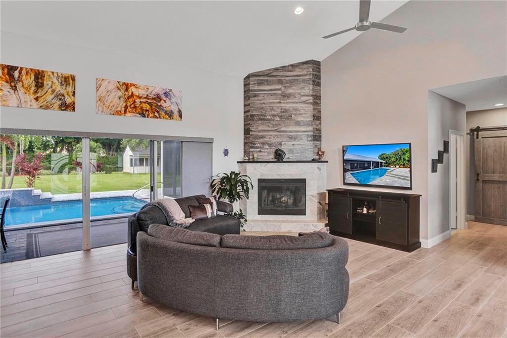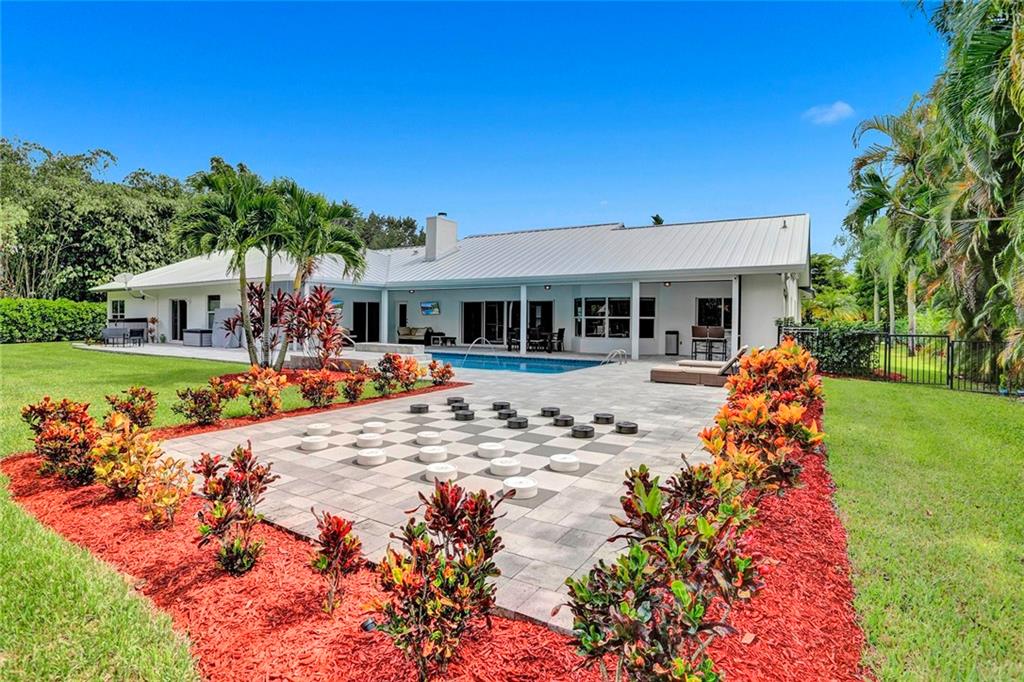 Must see this beautiful 1 acre estate w/5,565 total sqft. Located on one of the most private lots in the secluded enclave of Boniello Acres in central Boca Raton. This family oriented main home offers a spectacular Great Room, 4/4 plus Den. Large attached Guest/Next Gen House offers 2/2 w/full estate kitchen and separate entrance. Oversized garage. Property updated inside and out. Boasts an open and specious single story floor plan, with an abundance of natural lighting, fireplace, beautiful pool with LED fountains and waterfall, outdoor kitchen, motorized patio screens, a playground, room for Tennis/Basketball court. Tesla EV charger. Barn can be utilized for storage, Man/She shed. New roof/Impact Garage Door (2022), private gates and fencing. A Rated Schools Calusa, Omni, Spanish River.