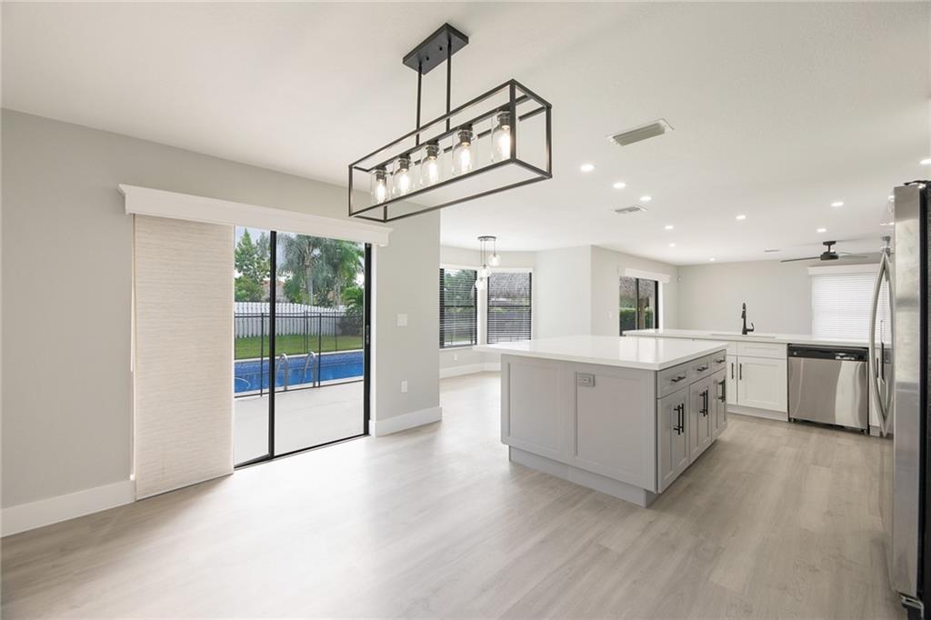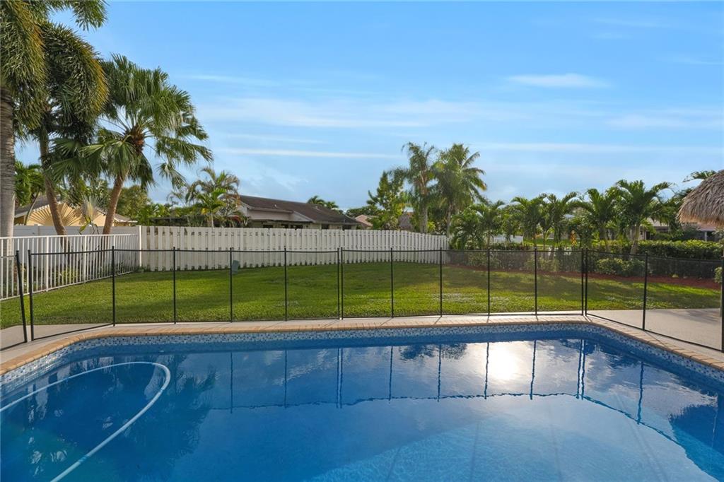 Completely updated and remodeled, gorgeous 4 bedroom 2.5 bathroom home in family friendly community Shenandoah. Eat in kitchen boasts new cabinets, quartz counter tops, huge island and stainless steel appliances New luxury vinyl flooring throughout the first floor. New vanity in half bath downstairs. Separate laundry room. Upstairs features 4 bedrooms with luxury vinyl flooring. Guest bathroom has new tile flooring, new tiled shower and new vanity. Primary bedroom boasts completely remodeled bathroom with dual sinks, huge vanity, separate beautiful tub, walk-in shower with new tile and glass. Lakefront backyard is an entertainer's dream. It has a large pool with Tiki hut and tons of pavers. Outstanding location in Davie, close to 595, Sawgrass expressway and Sawgrass Mall.