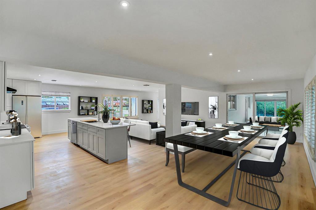 Exquisite modern design. Luxurious finishes. Sophisticated open-concept living. In the heart of east Boca Raton lies a mid-century modern home situated on a lushly landscaped corner lot with a grand ciruclar driveway. Experience the pinnacle of open concept living with a designer kitchen serving as the heart of the home. The kitchen boasts luxurious calacatta quartz countertops with a carrera marble feature wall, curated fixtures, and a 12 ft center island that serves as a versatile backdrop. The home features 3 bed/2 bath with a striking master bath ensuite inspired by Miami design. Further, partial impact windows, accordion shutters, fenced backyard, located in a charming community with no HOA in Boca Raton city limit. Minutes to beaches, downtown Mizner, and Lake Wyman Park