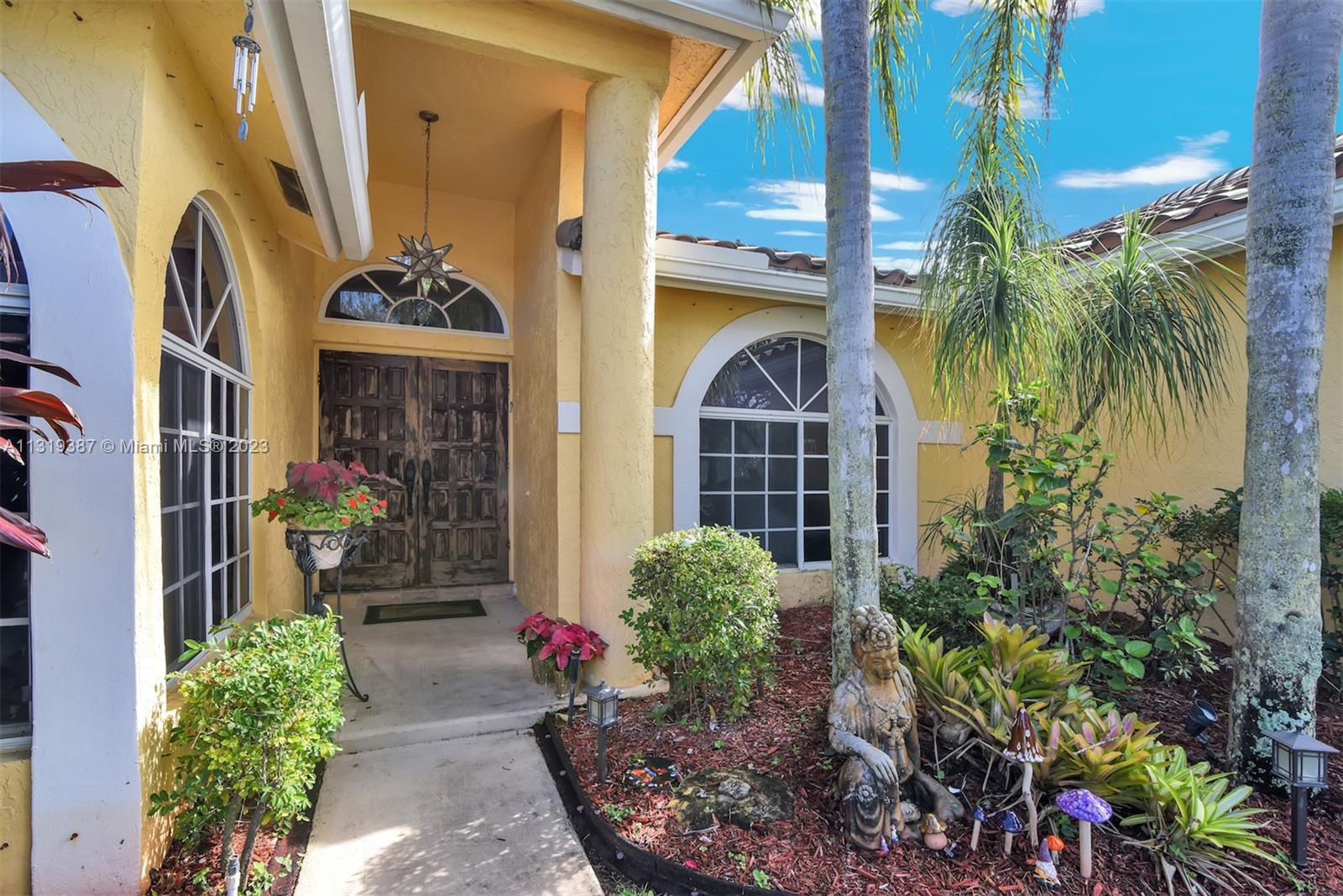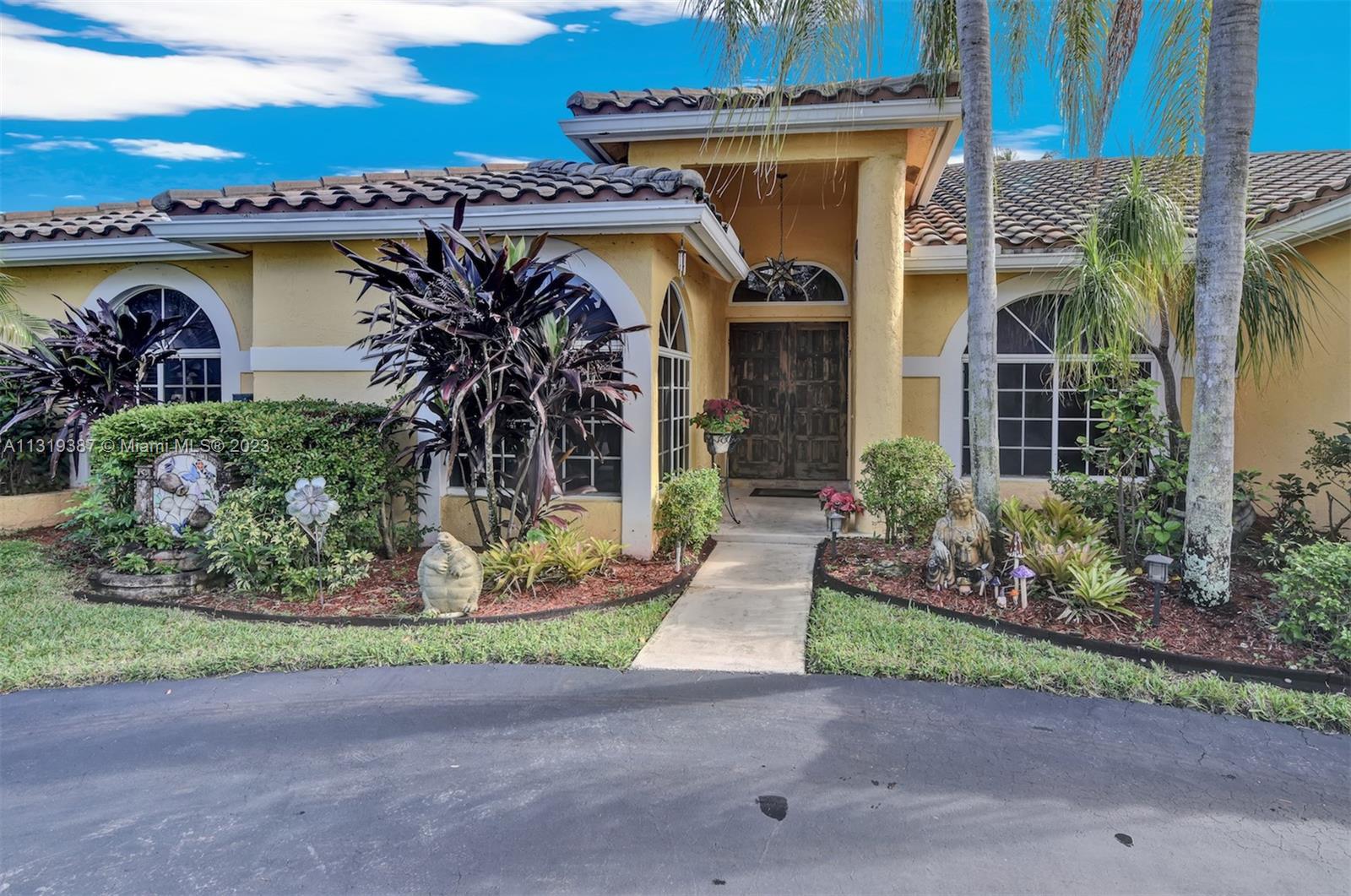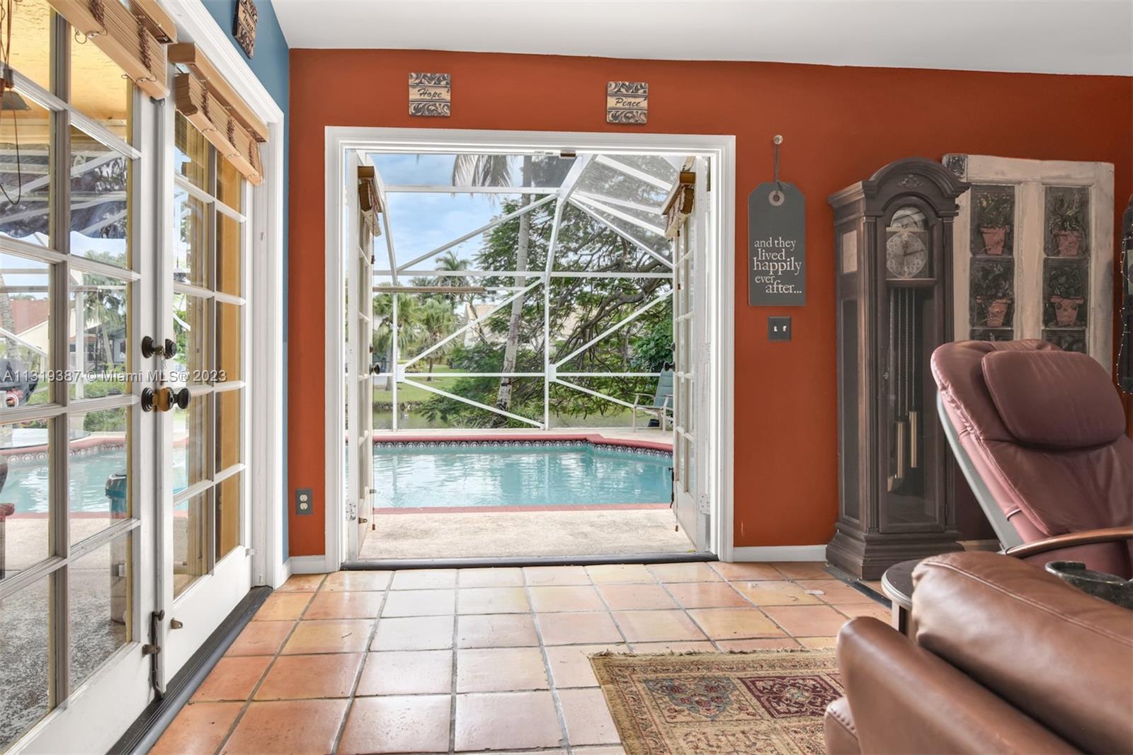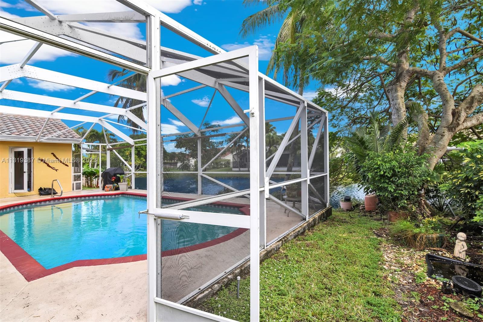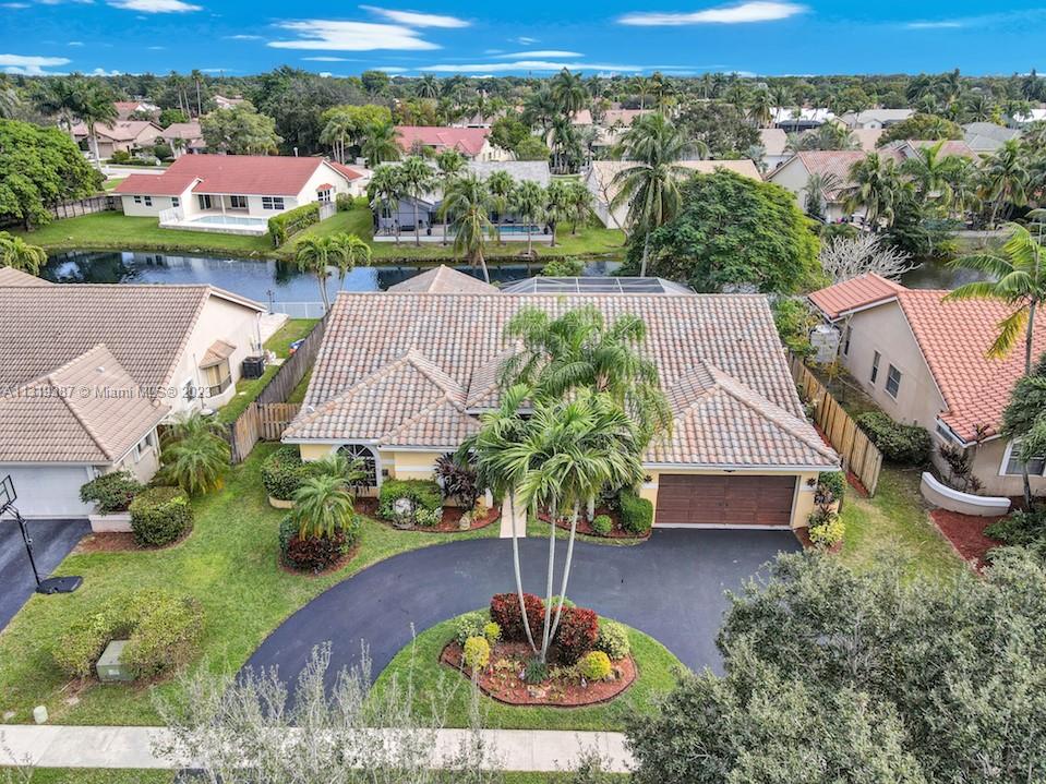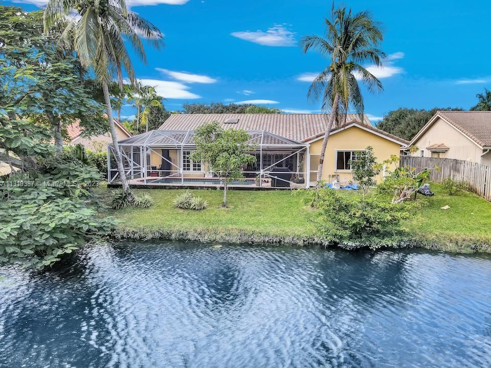 JACARANDA LAKES WATERFRONT WITH POOL. Breathtaking entrance revealing vaulted ceilings and six sets of French doors The lanai screen cage is extra-reinforced above hurricane guidelines. Clay/stone tile and wood floors throughout, Modern-rustic theme, Gigantic kitchen with updated granite counter tops stainless appliances. New bathrooms. Master bath is slamming with textured tile and shimmering copper tub! New roof 2007. Pool resurfaced in 2005. A/C 2013 Hurricane shutters, hurricane-rated garage door/skylight. Wide hallways, wide and generous bathroom space. Dual closets in master bedroom. PLENTY of storage. Home completely wired from the ceiling for all of your A/V needs, high quality professional speakers subwoofers in the ceiling of most rooms and patio. NO RENTAL RESTRICTIONS!