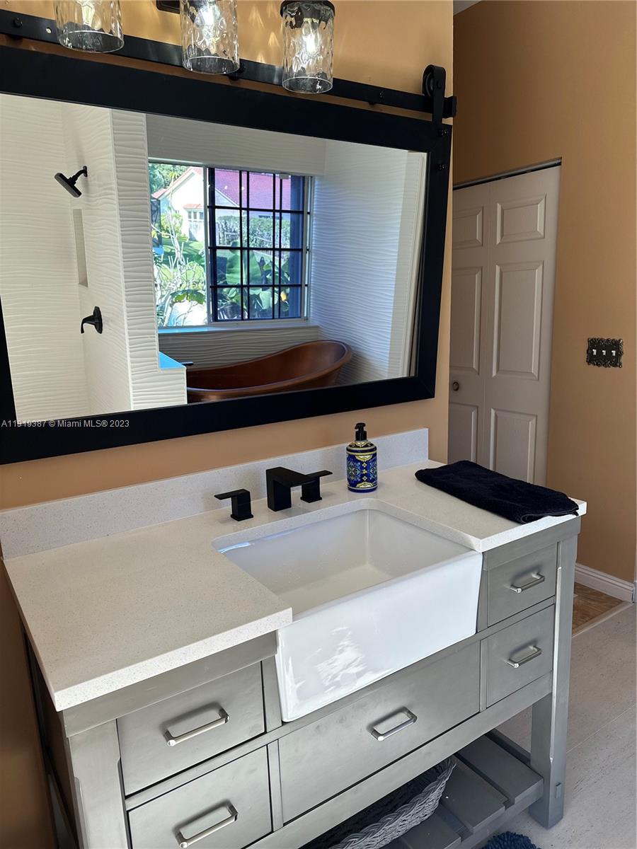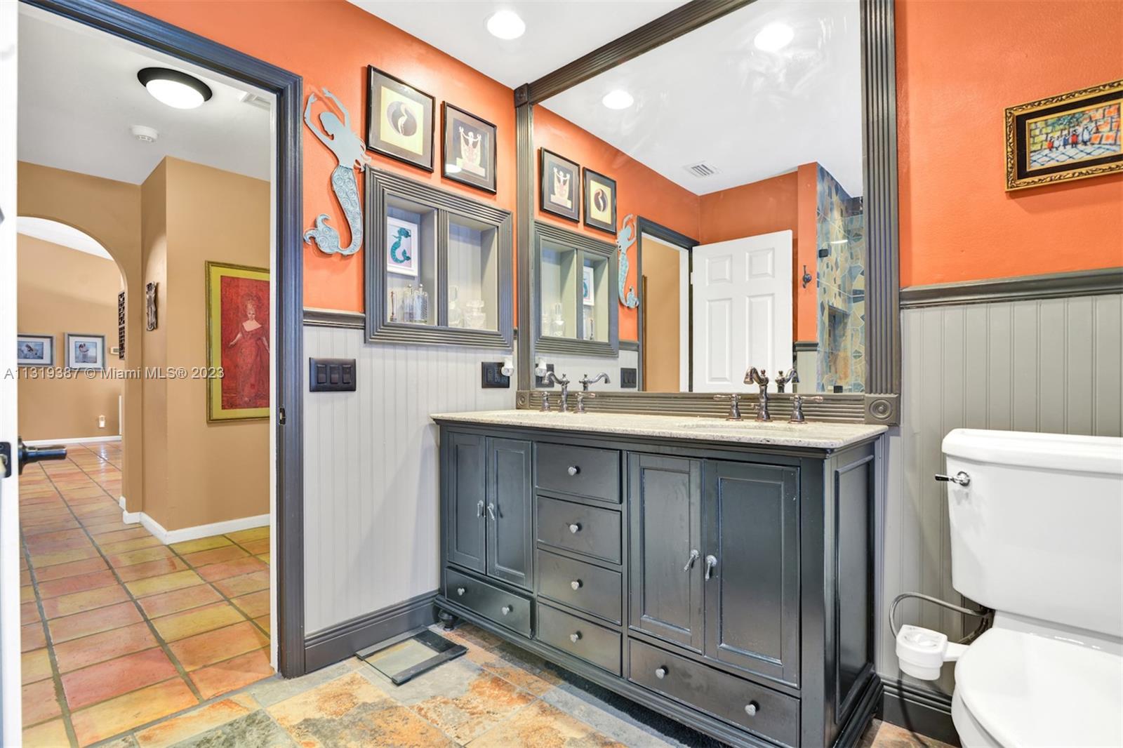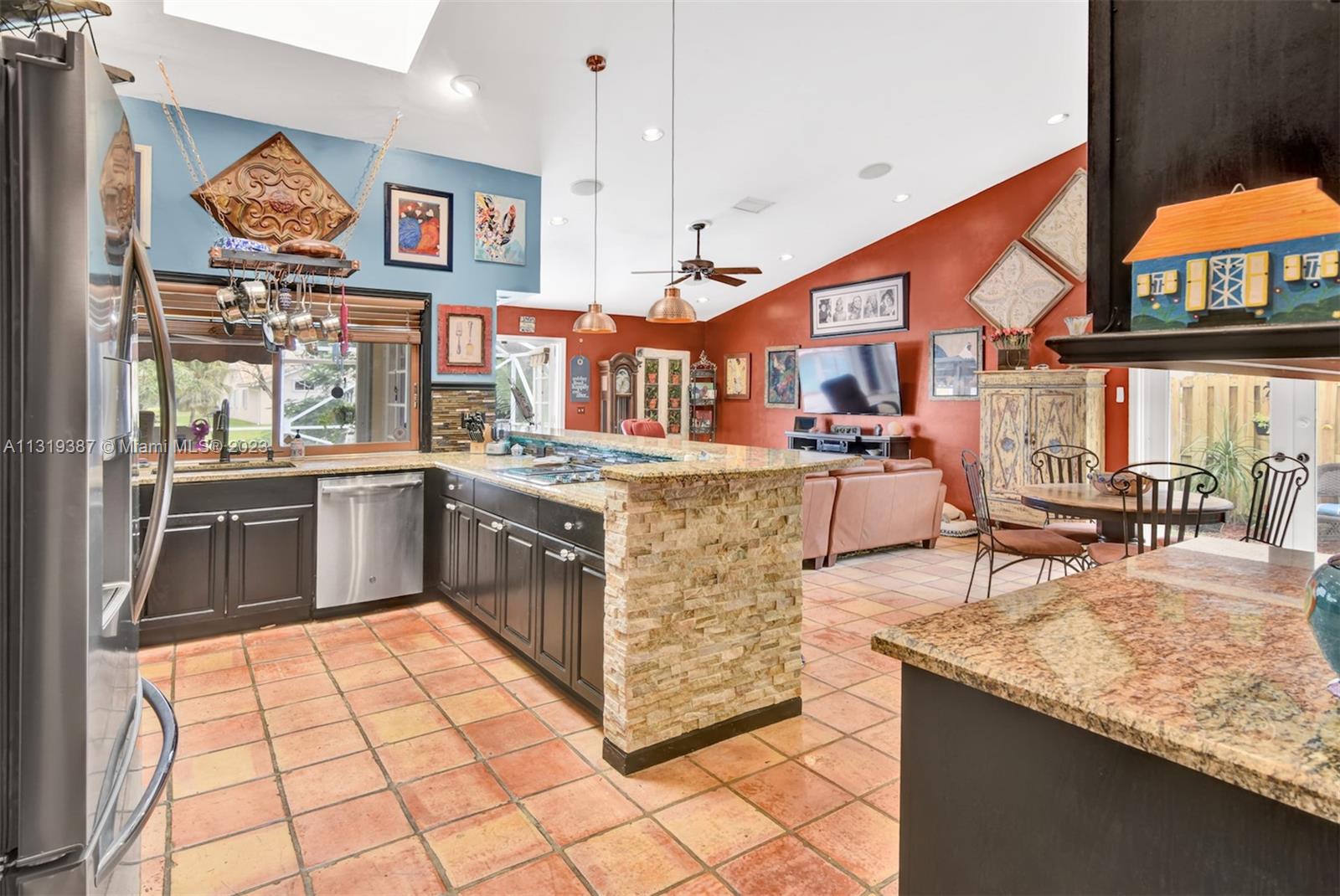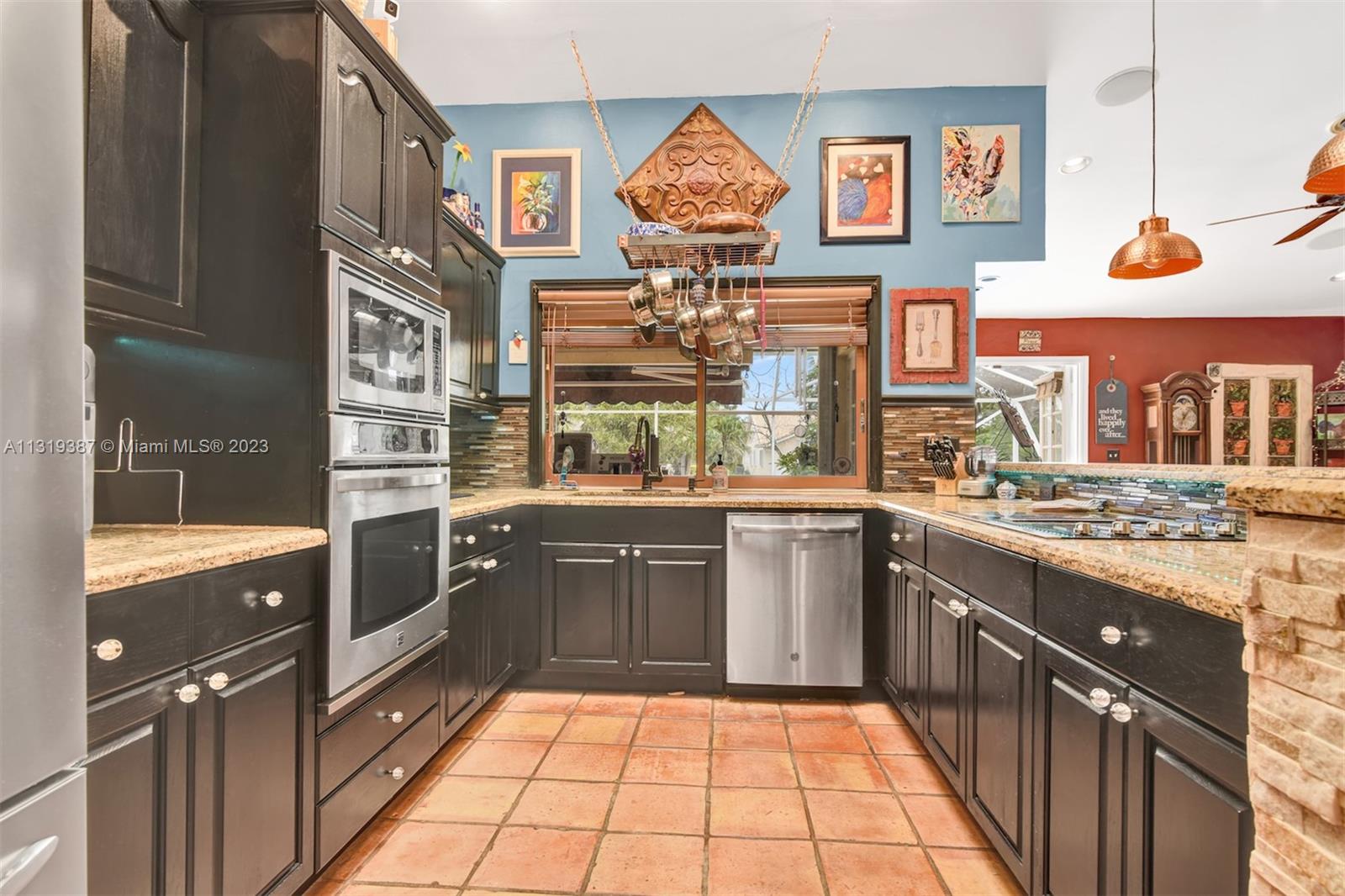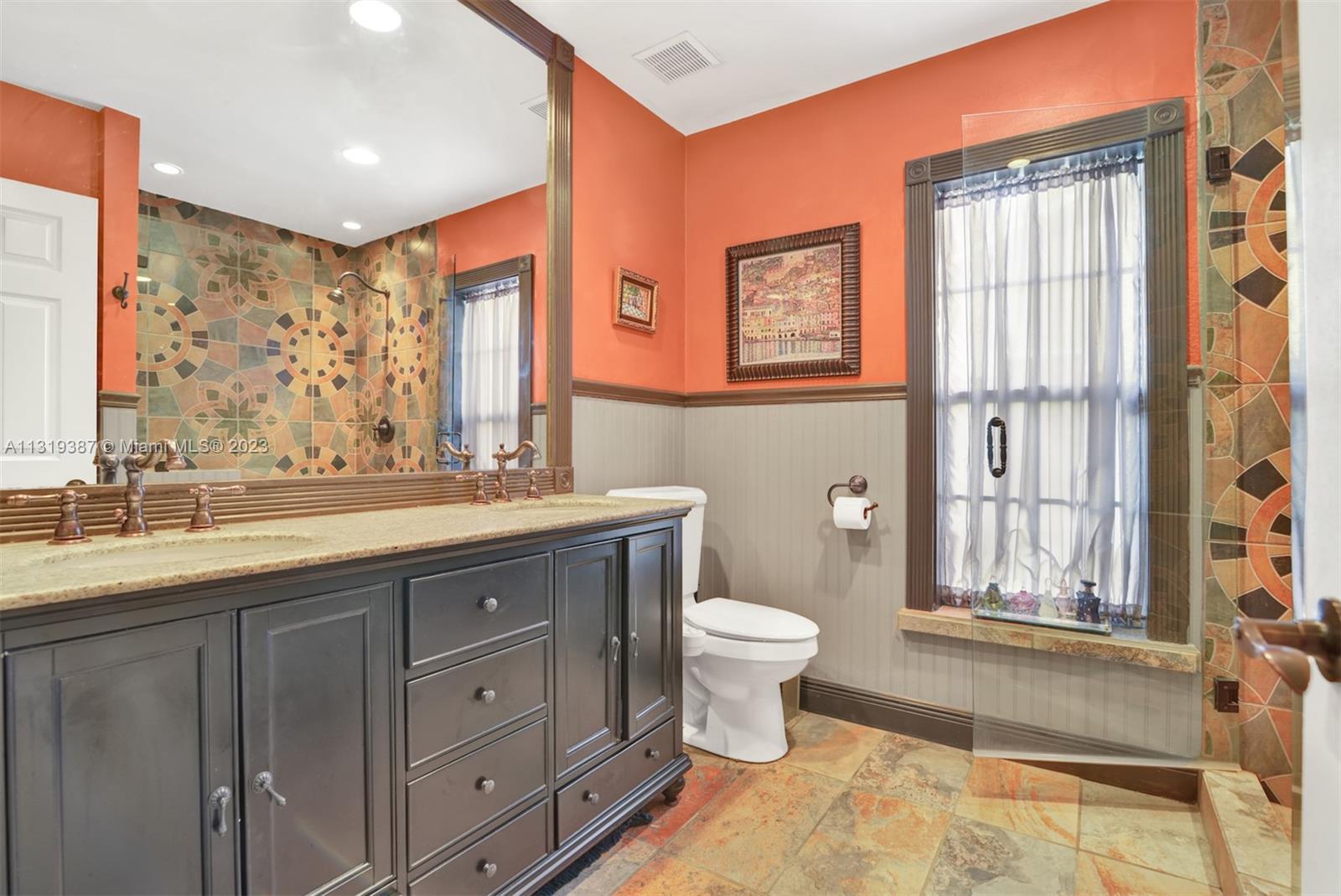 JACARANDA LAKES WATERFRONT WITH POOL. Breathtaking entrance revealing vaulted ceilings and six sets of French doors The lanai screen cage is extra-reinforced above hurricane guidelines. Clay/stone tile and wood floors throughout, Modern-rustic theme, Gigantic kitchen with updated granite counter tops stainless appliances. New bathrooms. Master bath is slamming with textured tile and shimmering copper tub! New roof 2007. Pool resurfaced in 2005. A/C 2013 Hurricane shutters, hurricane-rated garage door/skylight. Wide hallways, wide and generous bathroom space. Dual closets in master bedroom. PLENTY of storage. Home completely wired from the ceiling for all of your A/V needs, high quality professional speakers subwoofers in the ceiling of most rooms and patio. NO RENTAL RESTRICTIONS!