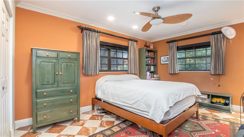 Elegant Mediterranean exterior ties in historic European Architecture with timeless style and charm. Expansive 3.67 acres of manicured & lighted landscape with pool, jacuzzi & hurricane rated pergola make this estate an entertaining paradise. 2 bedroom guest house boasts new Roof, Impact windows & upgraded electrical. Main House features West wing dedicated to 3 bedrooms, bath & a second master ensuite for maid/Nanny. East wing hosts the Master with attached sitting room/gym & Private stairs to dual office w/wet bar & patio. Ample room for entertaining with formal living, dining rooms & family room with fireplace off the eat in kitchen. Chef's dream kitchen w/Viking appliances, 2 Sub Zero refrigerators & 3 ovens. Complete house generator, Exquisite neighborhood, A+ Schools & much more!