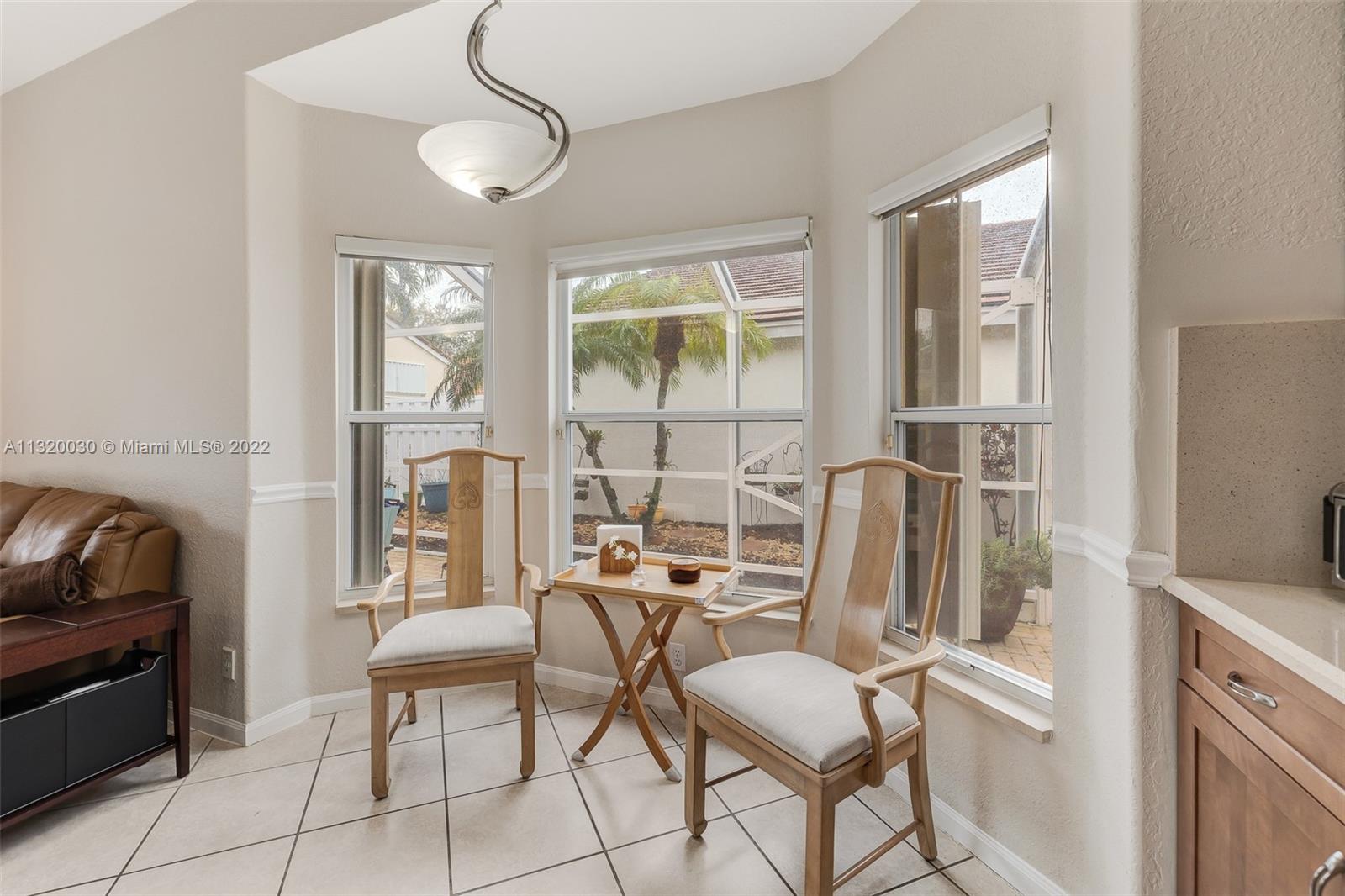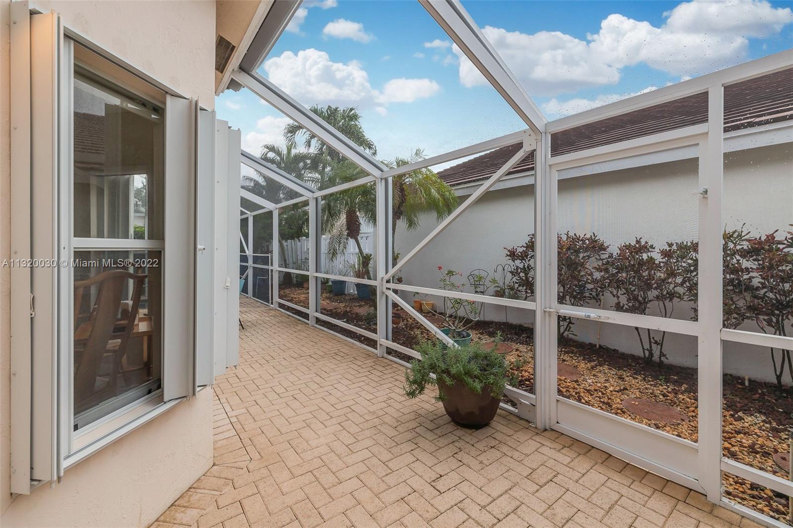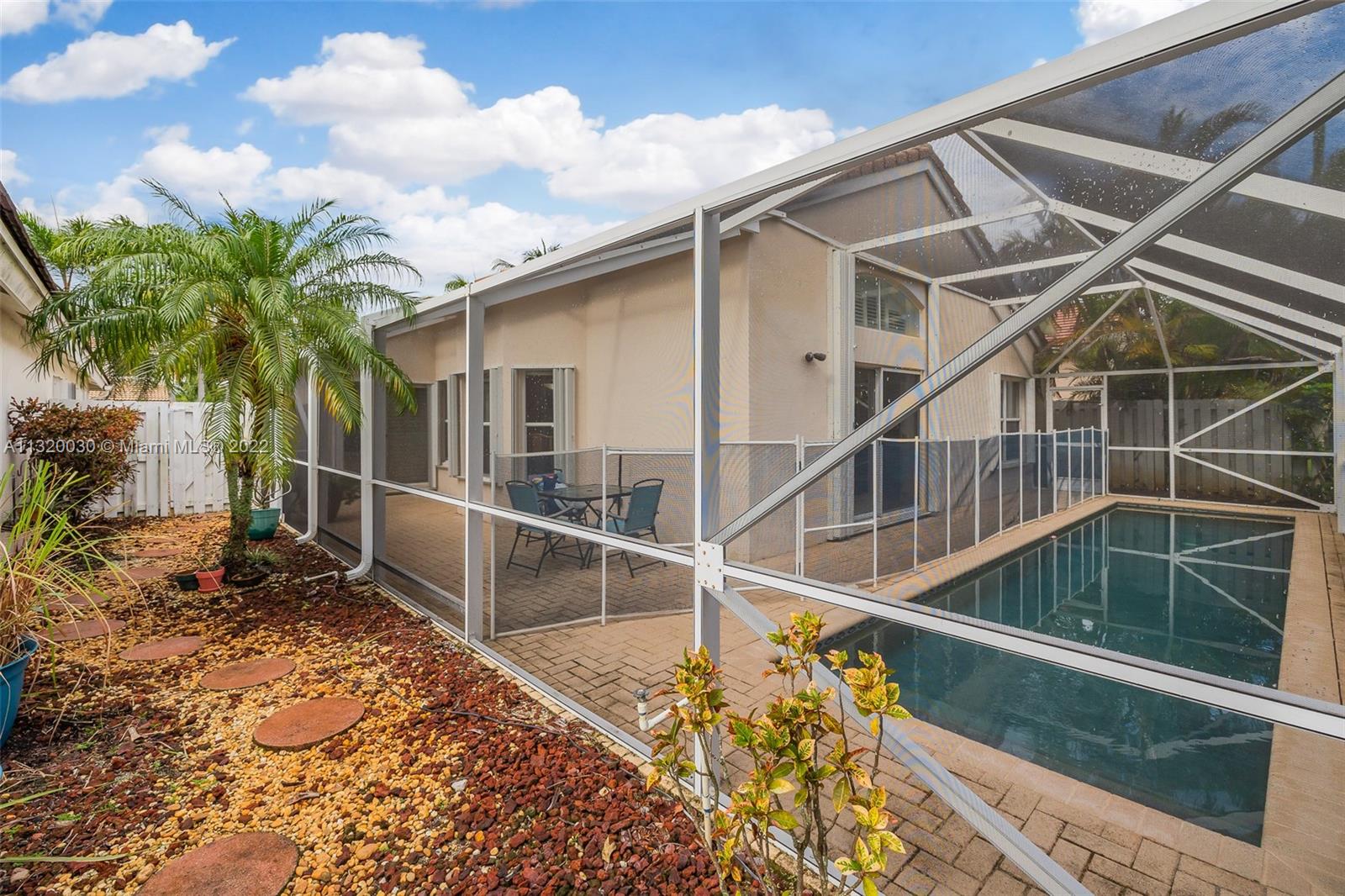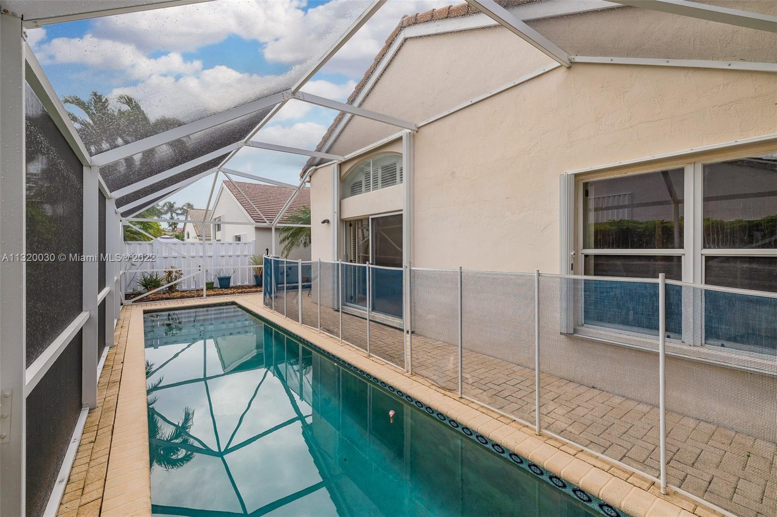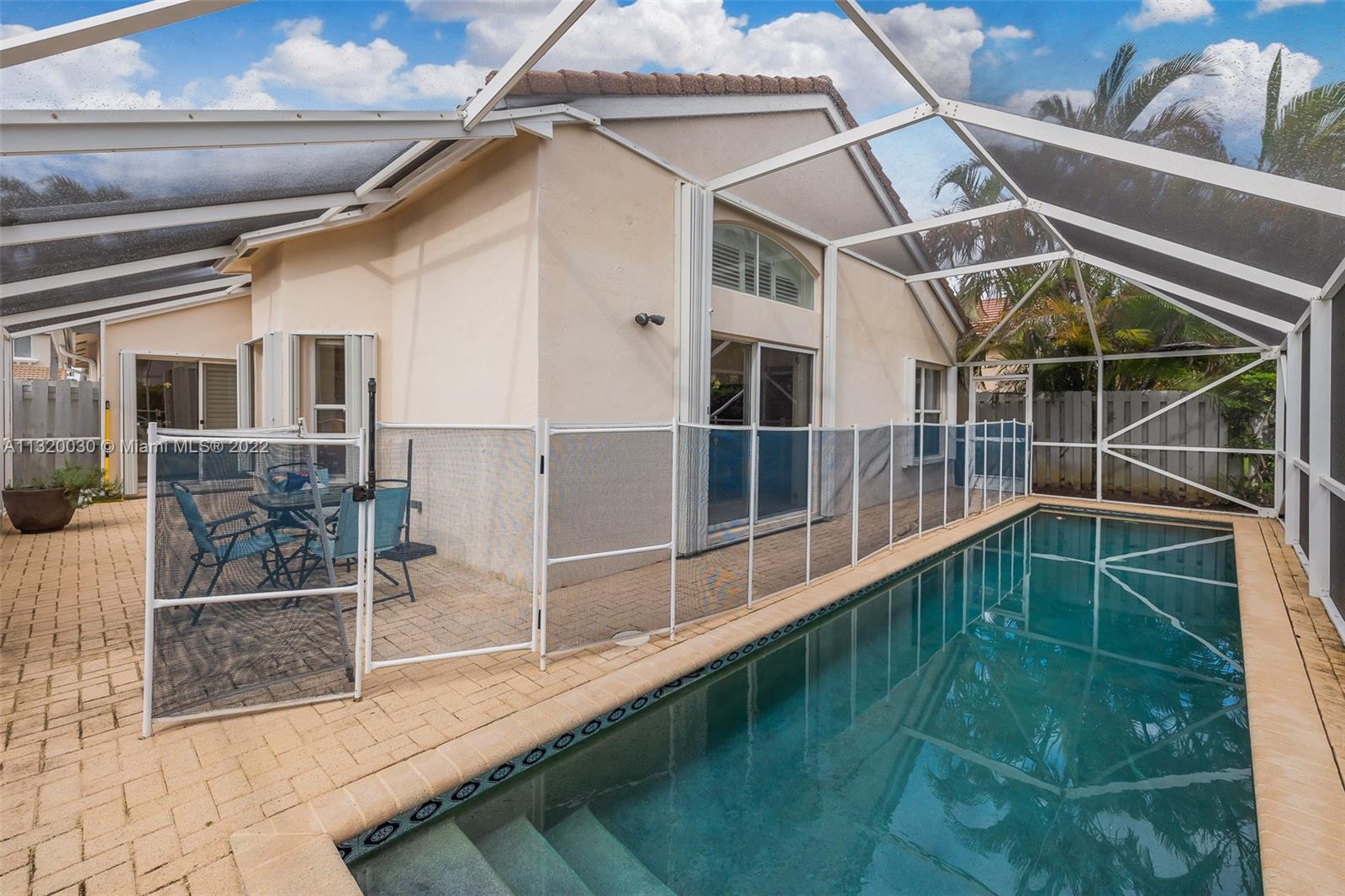 Located in Oakridge, an access controlled entry leads you to the relaxing view of the community's main lake. The well kept Redwood model has an open, spacious living/dining room and a sliding door to the screened patio area where you'll find a protective enclosure for the lap pool. Kitchen has quartz countertops & the cabinets feature soft close drawers with a lot of storage space. The oversized master bedroom gives you space for all your needs. The renovated master bathroom features separate shower & Roman rub. The 3rd bedroom has a built-in office space & a Murphy bed. The guest bathroom is also renovated. The house is wired for cameras & alarm. A/C approx. 4 yrs. old, new garage door opener and washer & dryer. Pool pump was replaced in 2021, pool heater is nonfunctioning.