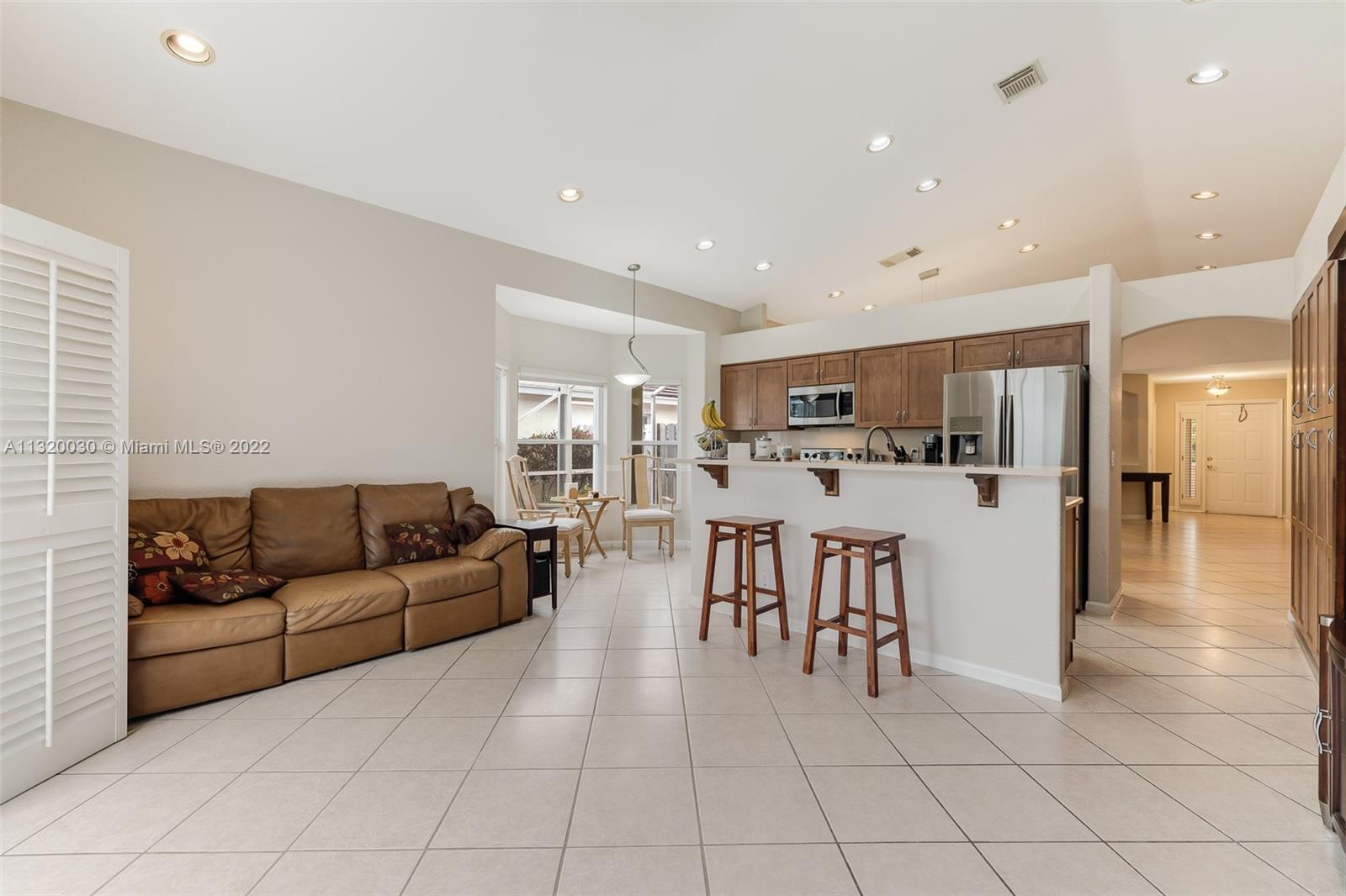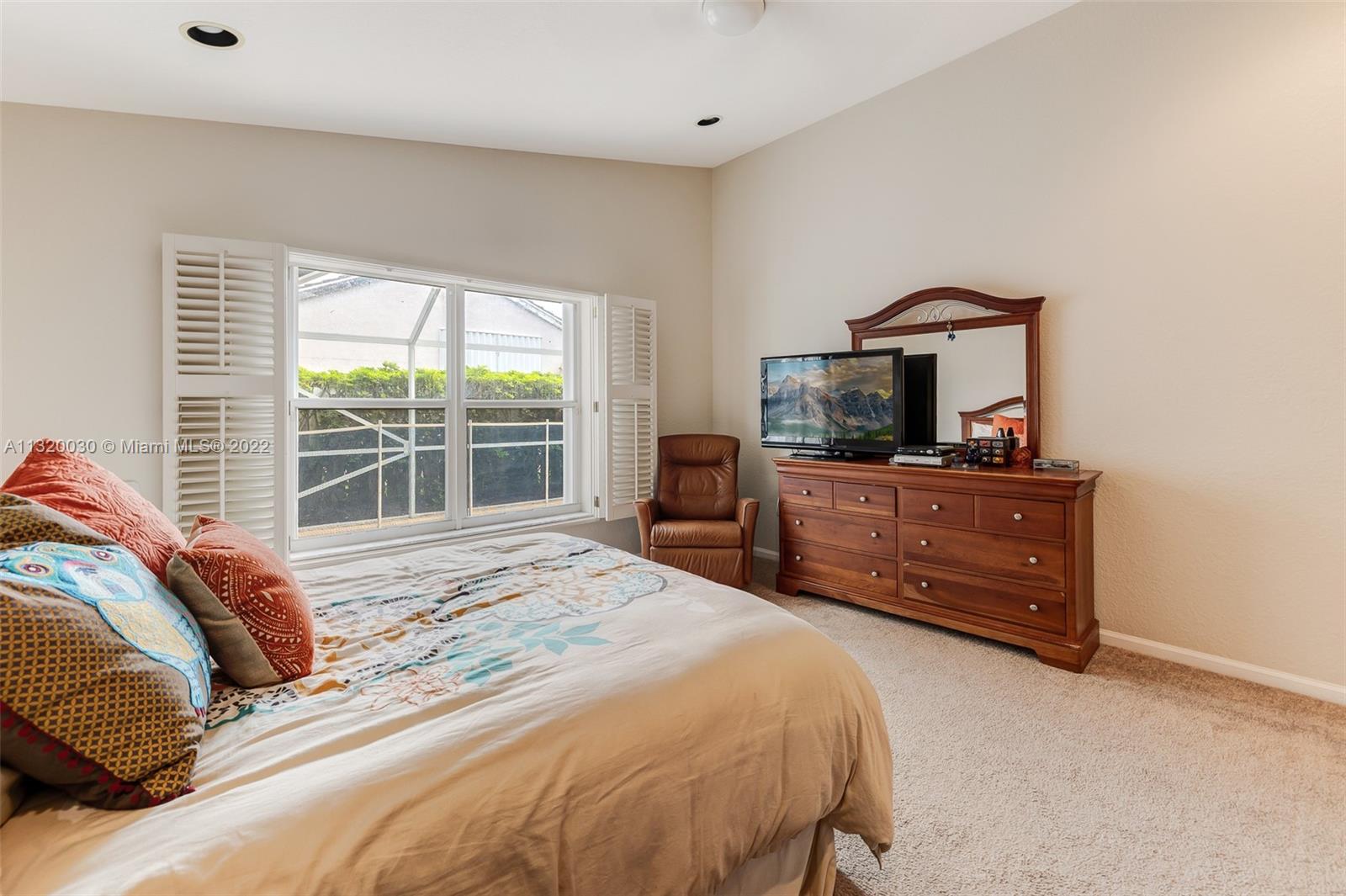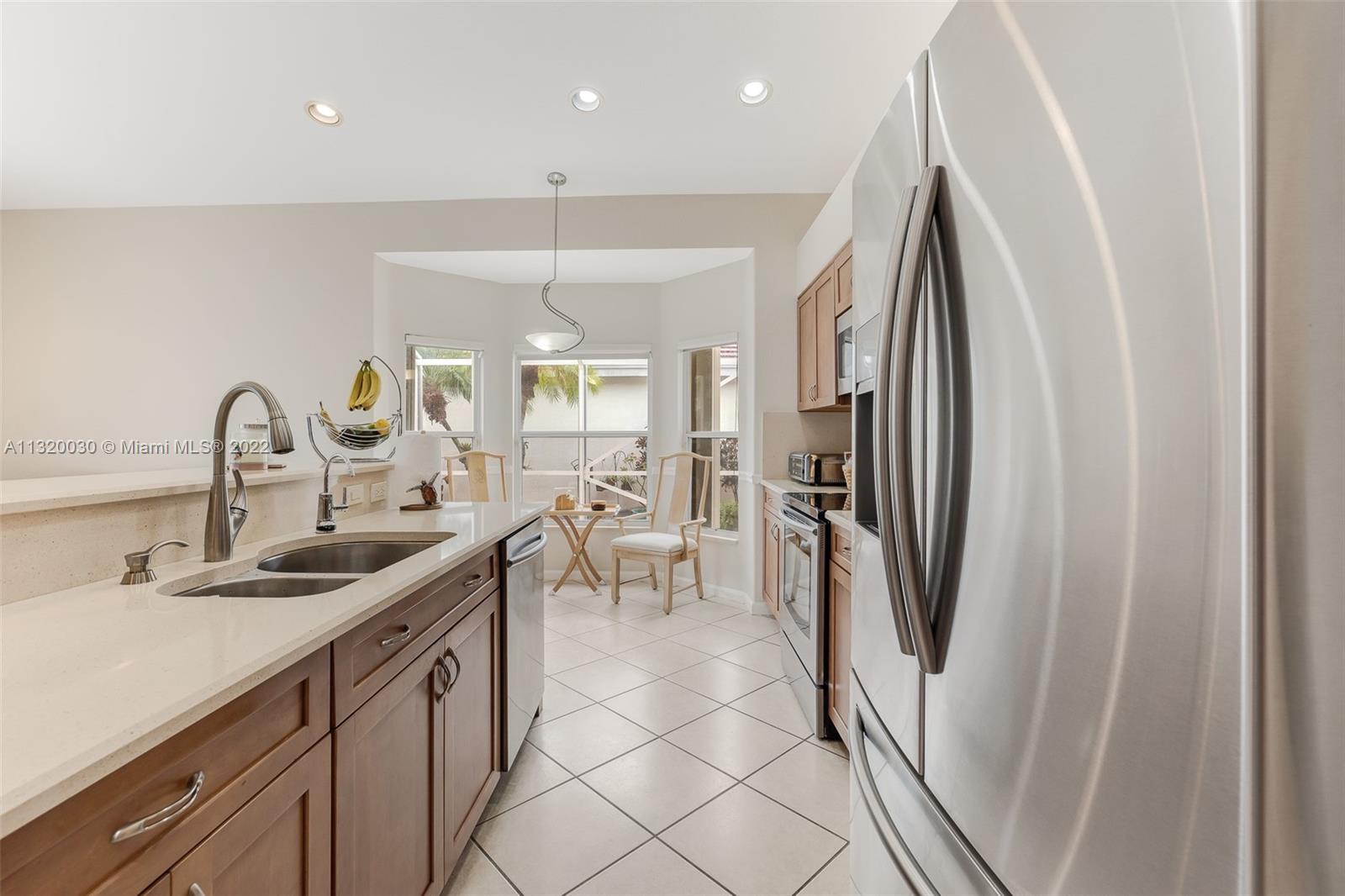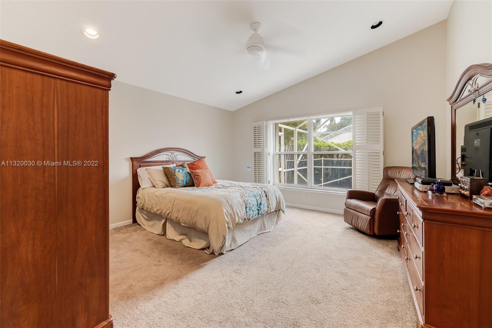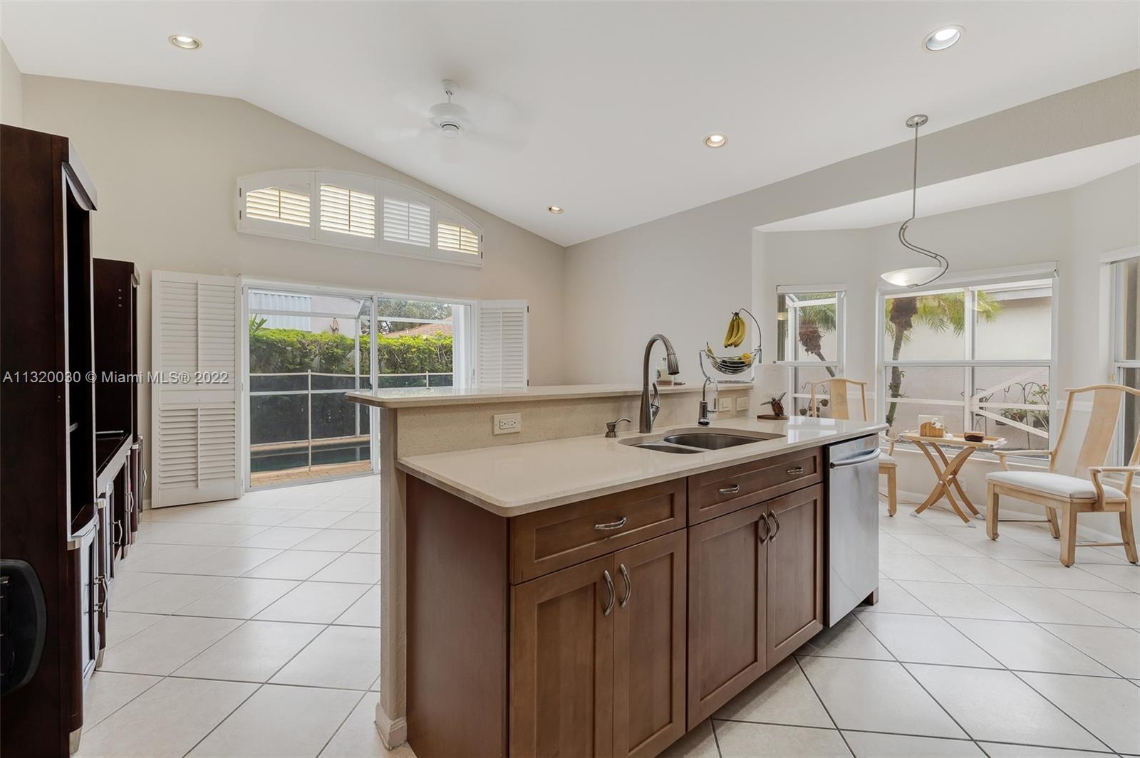 Located in Oakridge, an access controlled entry leads you to the relaxing view of the community's main lake. The well kept Redwood model has an open, spacious living/dining room and a sliding door to the screened patio area where you'll find a protective enclosure for the lap pool. Kitchen has quartz countertops & the cabinets feature soft close drawers with a lot of storage space. The oversized master bedroom gives you space for all your needs. The renovated master bathroom features separate shower & Roman rub. The 3rd bedroom has a built-in office space & a Murphy bed. The guest bathroom is also renovated. The house is wired for cameras & alarm. A/C approx. 4 yrs. old, new garage door opener and washer & dryer. Pool pump was replaced in 2021, pool heater is nonfunctioning.