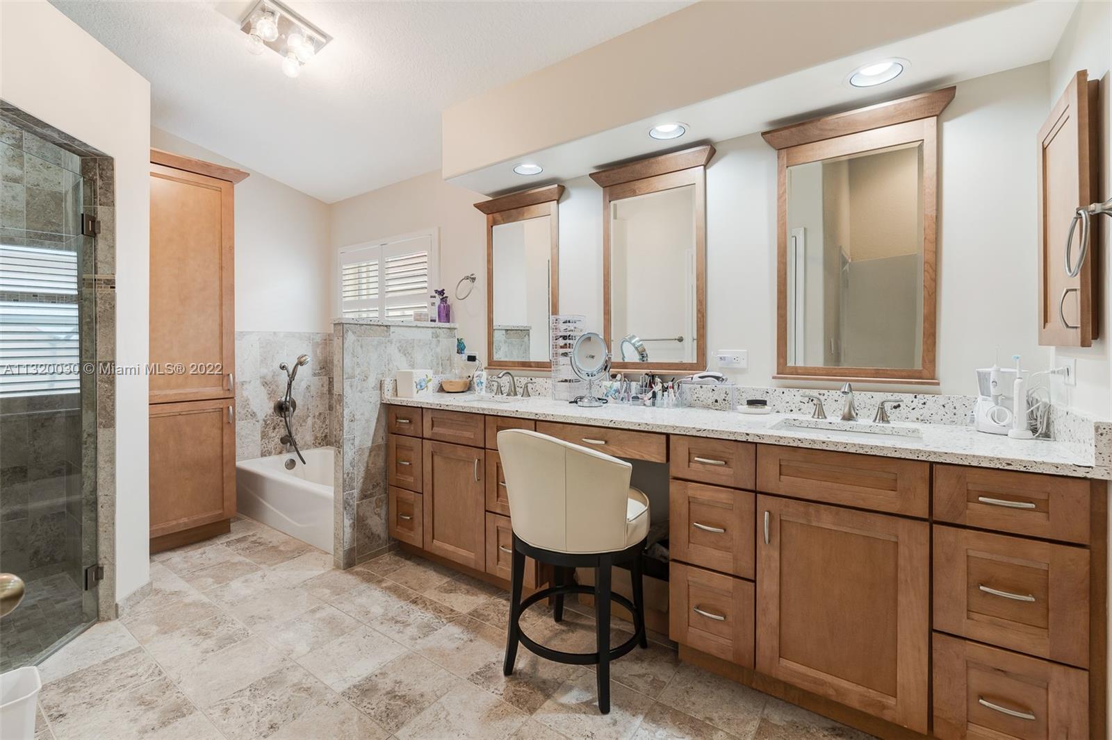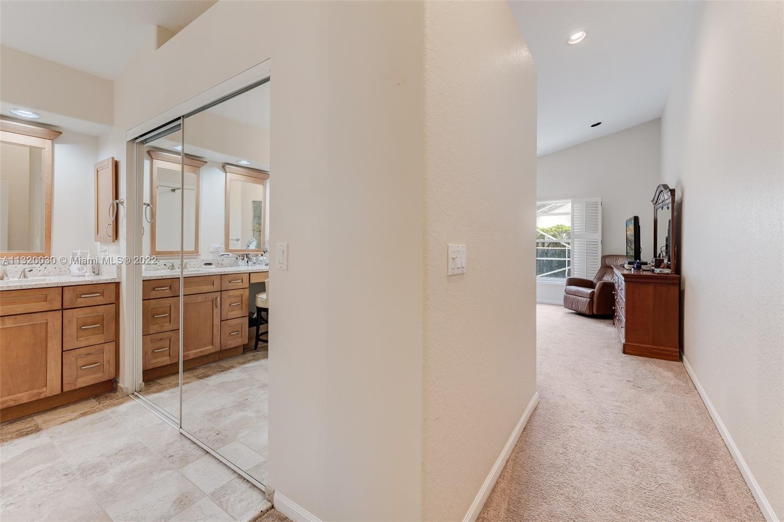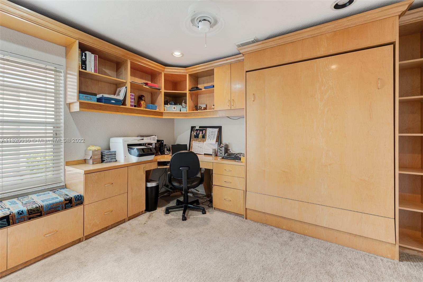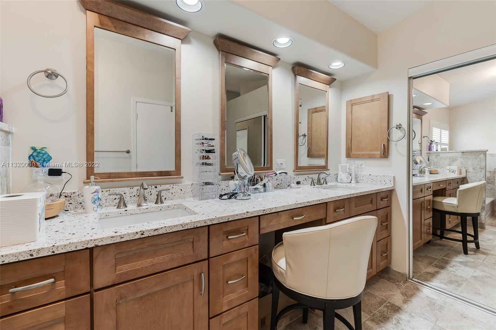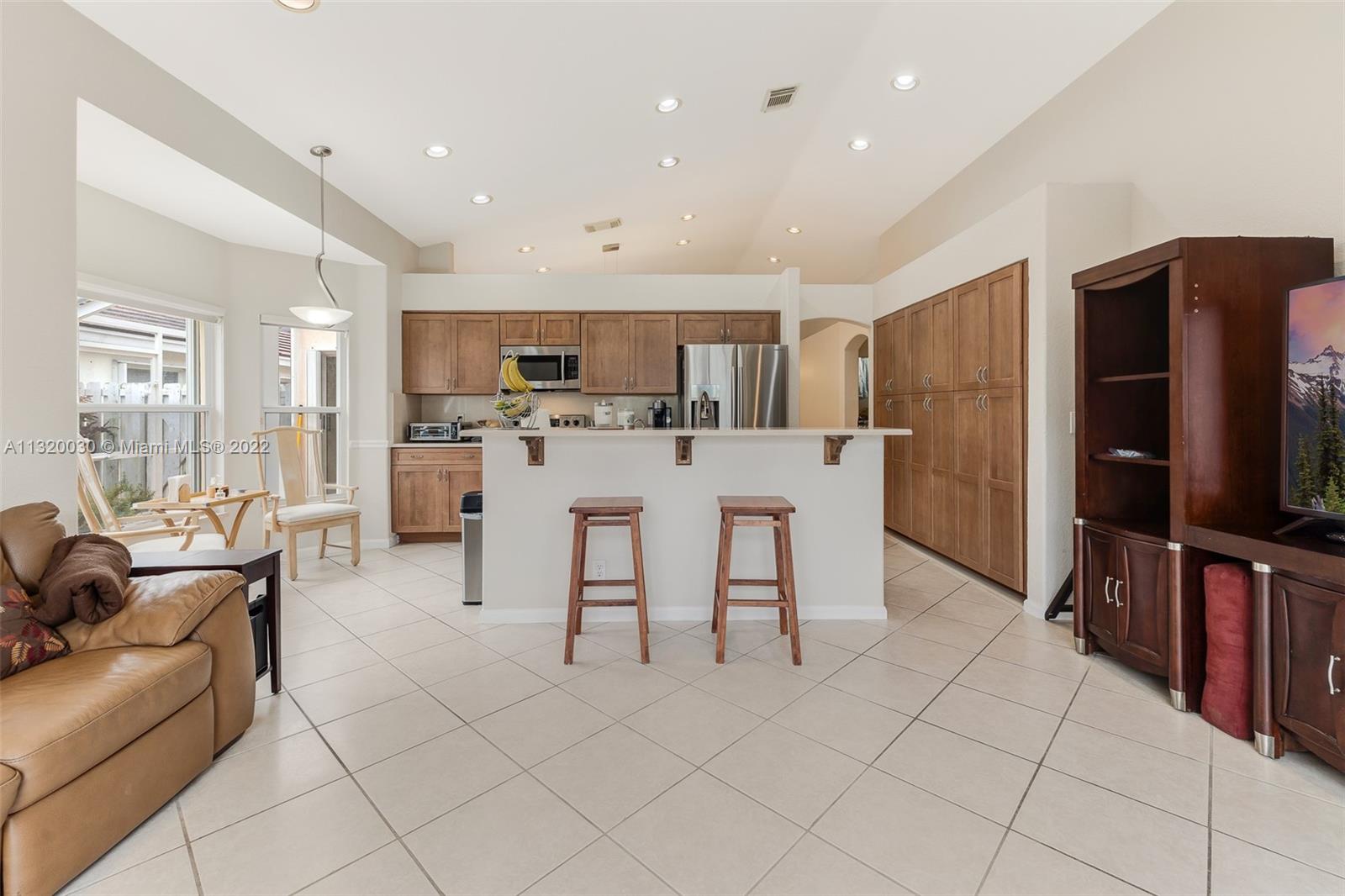 Located in Oakridge, an access controlled entry leads you to the relaxing view of the community's main lake. The well kept Redwood model has an open, spacious living/dining room and a sliding door to the screened patio area where you'll find a protective enclosure for the lap pool. Kitchen has quartz countertops & the cabinets feature soft close drawers with a lot of storage space. The oversized master bedroom gives you space for all your needs. The renovated master bathroom features separate shower & Roman rub. The 3rd bedroom has a built-in office space & a Murphy bed. The guest bathroom is also renovated. The house is wired for cameras & alarm. A/C approx. 4 yrs. old, new garage door opener and washer & dryer. Pool pump was replaced in 2021, pool heater is nonfunctioning.