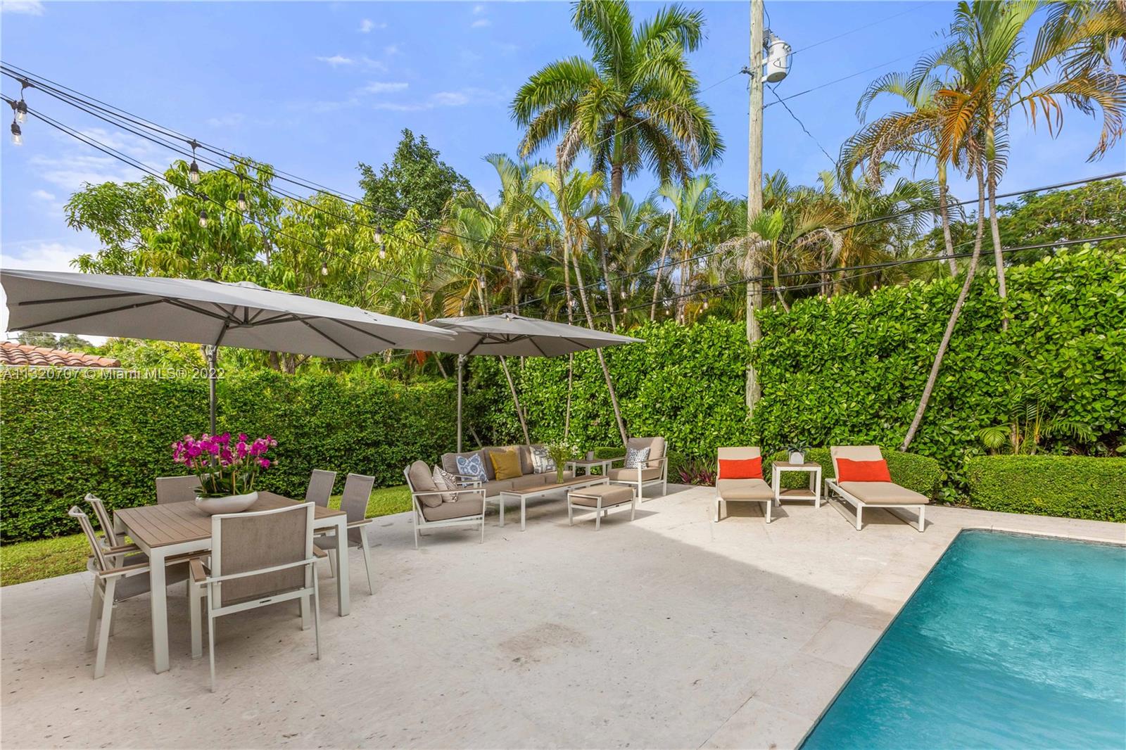 Delicious perfection. 3-bedroom, 2.5-bath home, plus den in Coral Gables, west of US-1 and within walking distance to Riviera Golf Club and the Shops at Merrill Park. This beautifully updated home has a large 20x40 heated pool and a great patio for entertaining or relaxing in your yard while framed by beautiful Clusia hedges that offer amazing privacy. This professionally landscaped home sits on just over 12k sqft of land, has many comfortable upgrades and new Impact Windows and doors. It has an open plan, cabana bathroom, two car garage and a generous Master Bath with dual sinks and a large shower. This beautiful home sits on a quiet street, has a circular driveway, is completely turn key, and is priced to sell.