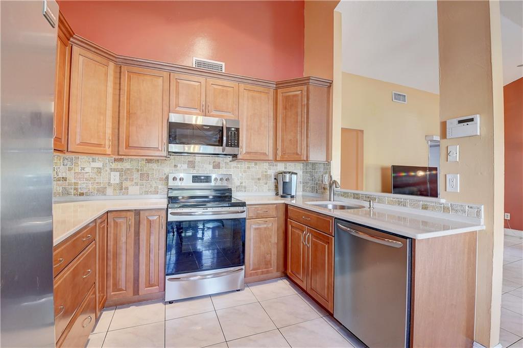 Reduced to sell!! Do not miss out! Charming extremely well maintained 2 bedrooms,2 bathrooms 1 car garage single family house. Spacious fenced in yard room for a pool. Oversized screened back porch with Jacuzzi in addition to a paved patio area. Located in a quiet & private area back-up to the lake & walking paths. Steps to the community pool, tennis courts & Basketball included in the HOA fees only $108.00 per month. NEW ROOF 2022. Tile & laminate flooring. Updated open kitchen, wood cabinets w/ self closed drawers. Tiled back splash. Stainless appliances. New Microwave & dishwasher. spacious master bedroom. A/C 2015. Water heater 2017. Washer & dryer in the garage. IMPACT ACCORDION SHUTTERS ON ALL WINDOWS. Great location minutes to HWYS, shopping & restaurants. Welcome Home! MUST SEE!