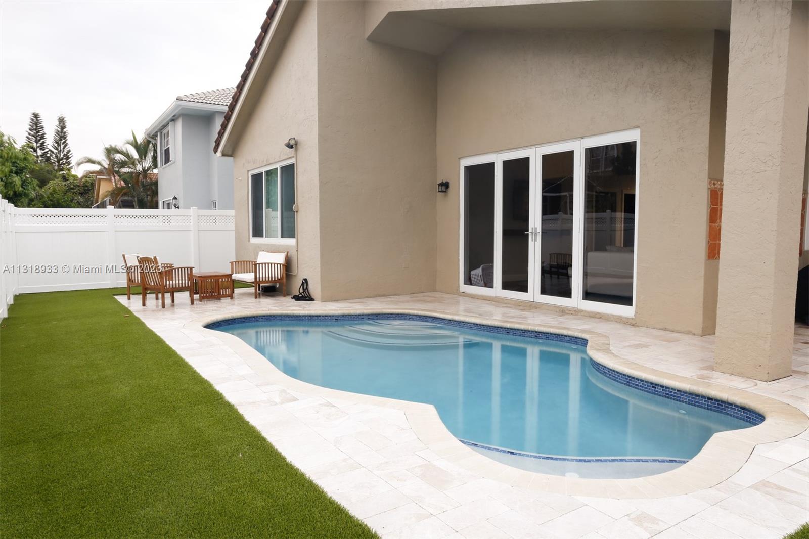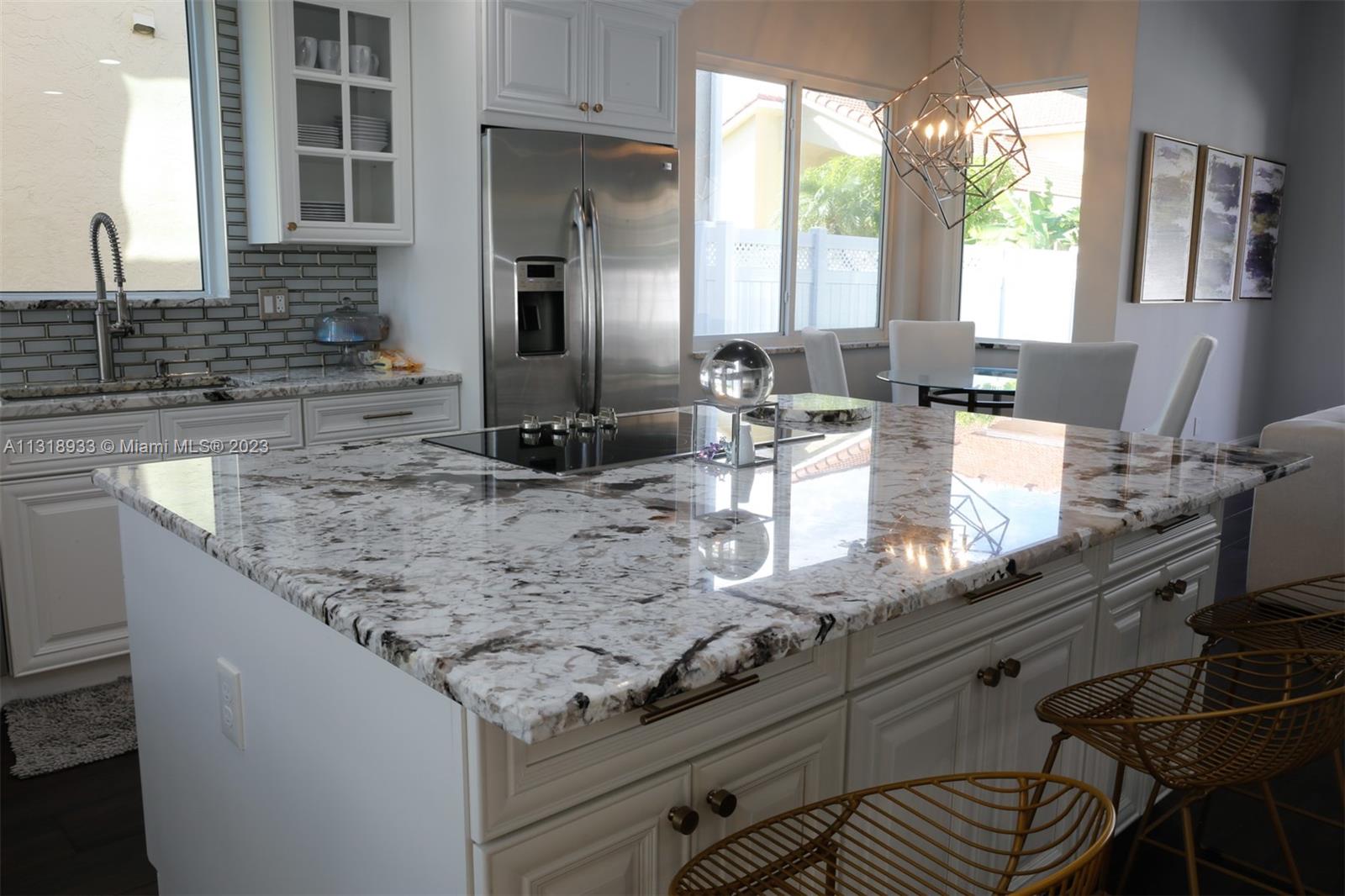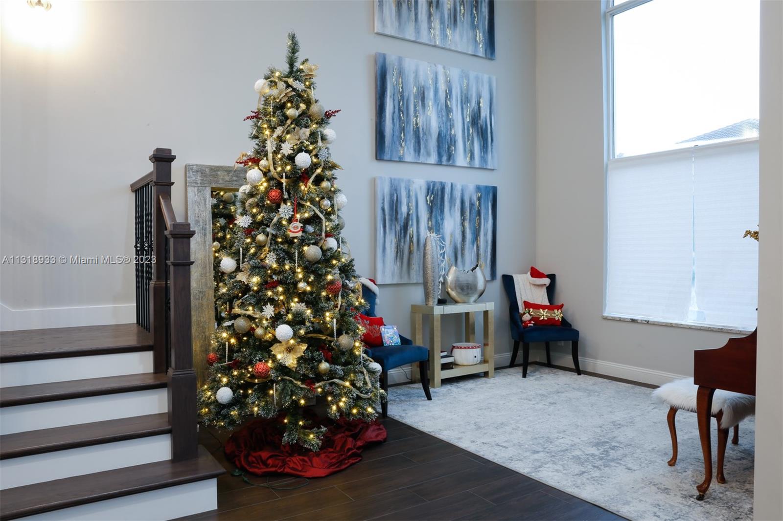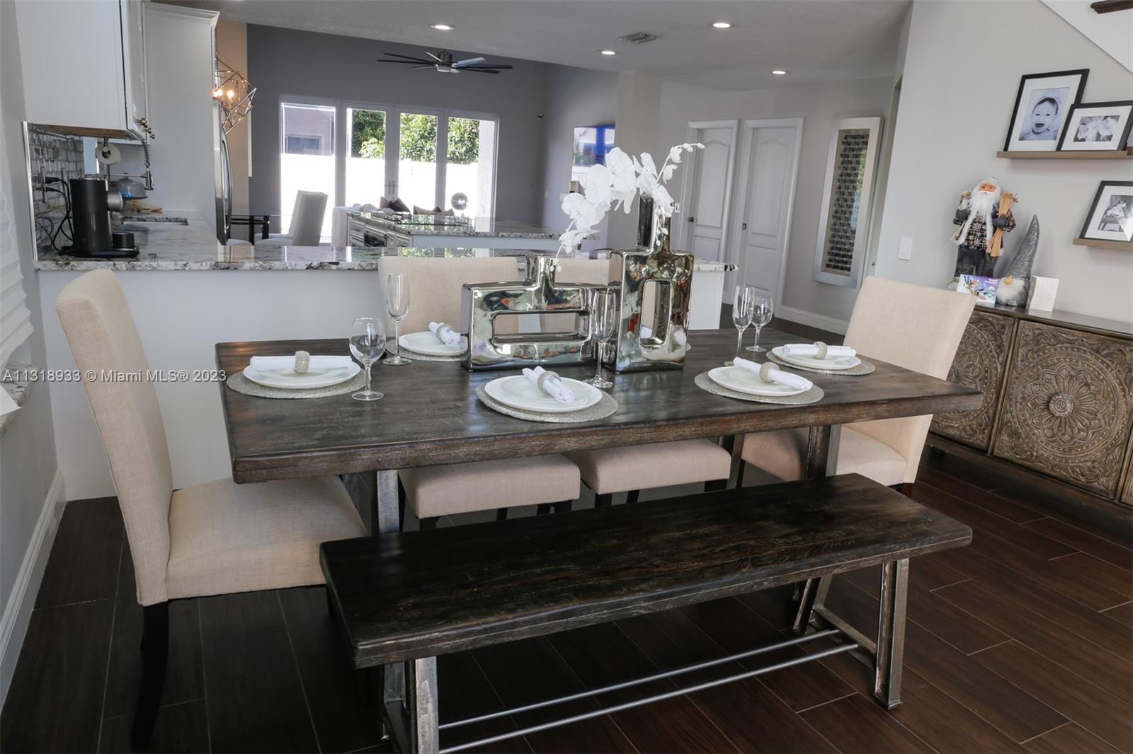 Completely upgraded 4 bed/2.5 bath open floor plan. Porcelain tile/wood throughout. Enormous gourmet kitchen with double ovens and top line appliances. Separate dining room breakfast bar, and dining nook- perfect for entertaining. Main floor large owner's suite with his/hers closets and 16' ceilings! Jetted freestanding tub and marble shower in suite. Vaulted and double story ceilings throughout (22' in the main entry and dining area). Floor to ceiling low E storm impact windows with plenty of natural light. Three more large bedrooms and comfortable loft upstairs. Recently renovated pool, new privacy fence in the backyard. Solar panels & 2 Tesla batteries: don't worry about losing power in a hurricane!