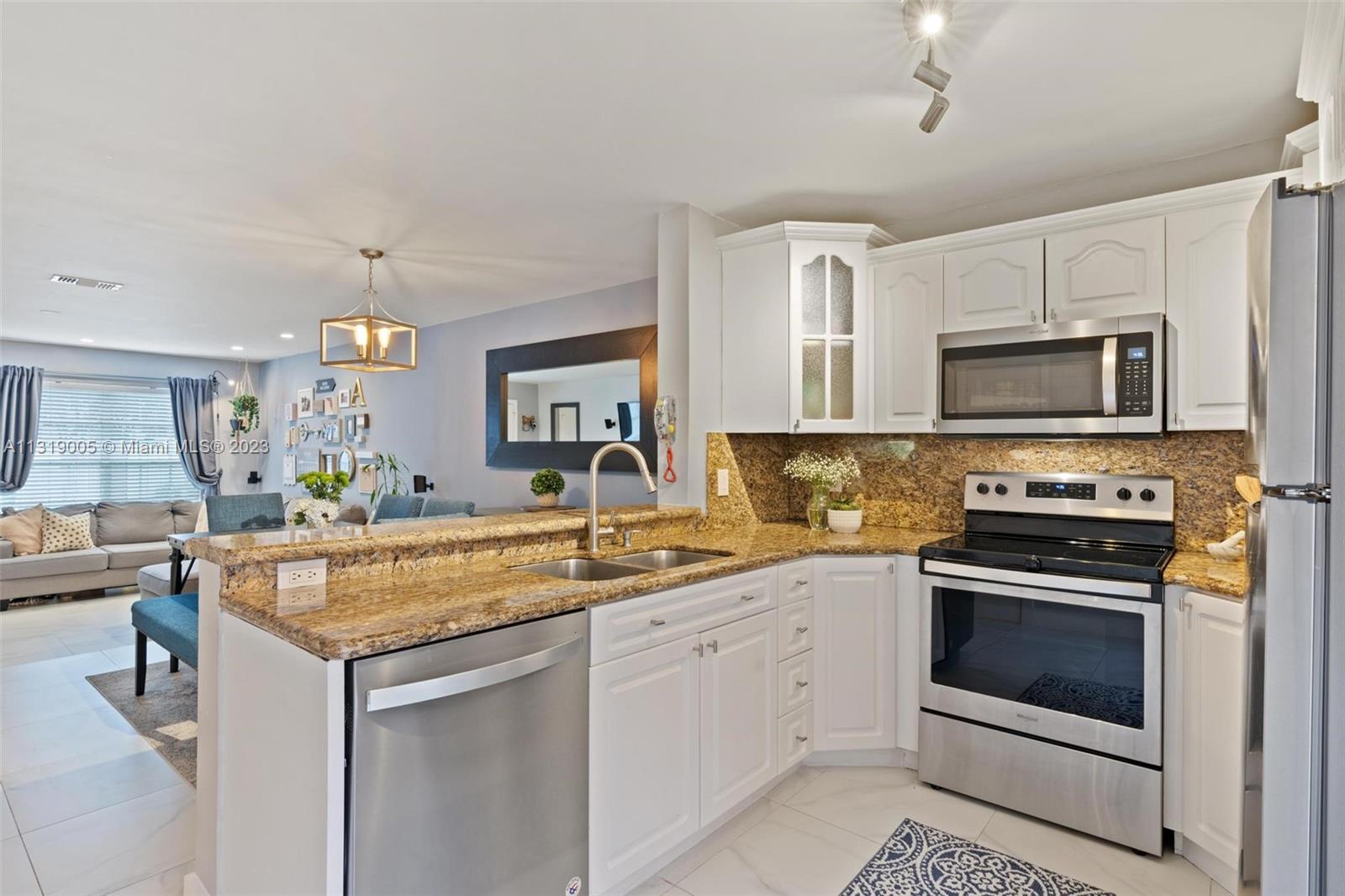 Welcome to Crown Colony in the lovely neighborhood of Rock Creek of Cooper City. Come step inside this fully upgraded & very well maintained townhome. Offering beautiful tile floors downstairs & wooden floors upstairs. A very open & lovely kitchen w/ all white wooden cabinets, granite counter tops/backsplash as well as SS appliances. Half bath located downstairs. Once upstairs you will find 2 very large size bedrooms. Lot's of closet space. Master bedroom & bathroom freshly painted & redone with great taste. 2 parking spots located directly in front of the home. Covered back patio is set with an artificial turf & fenced in. Community offers many walking trails, basketball courts & a children's play area. Centrally located mins from all major roads.