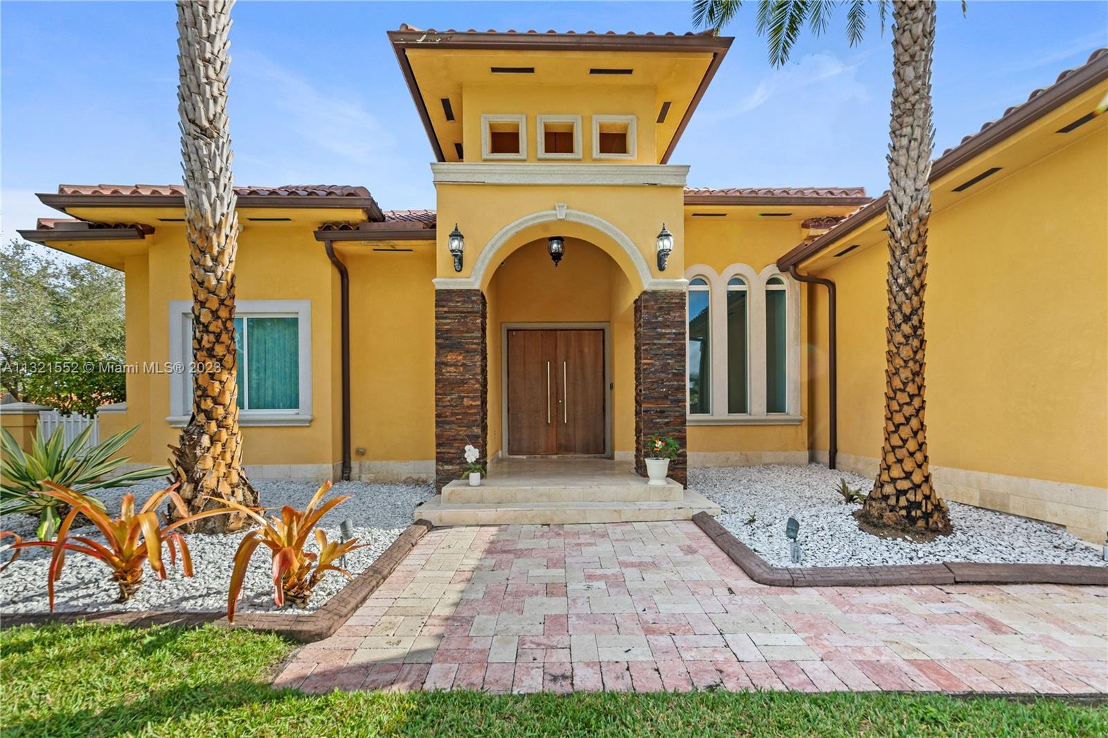 Beautiful, 4 bed/3 bath, single family home located on a large, corner lot in the Vanderbilt Park area of Doral. Home is set back on a hill with double doors opening to a spacious living area with high ceilings and there is a separate dining, kitchen and family room. Kitchen is finished with granite countertop, lots of windows, wood cabinetry and stainless steel appliances equipped with built in wall oven, microwave and warming drawer with wolf range and subzero refrigerator. Master bedroom has a separate sitting area and ensuite bath/closet, plenty of storage space and leads out to the pool/garden. Top of the line security system, flood lights, surround sound and covered patio area with pool. Move in ready/space for a boat. Close to A-rated schools, highways and restaurants.