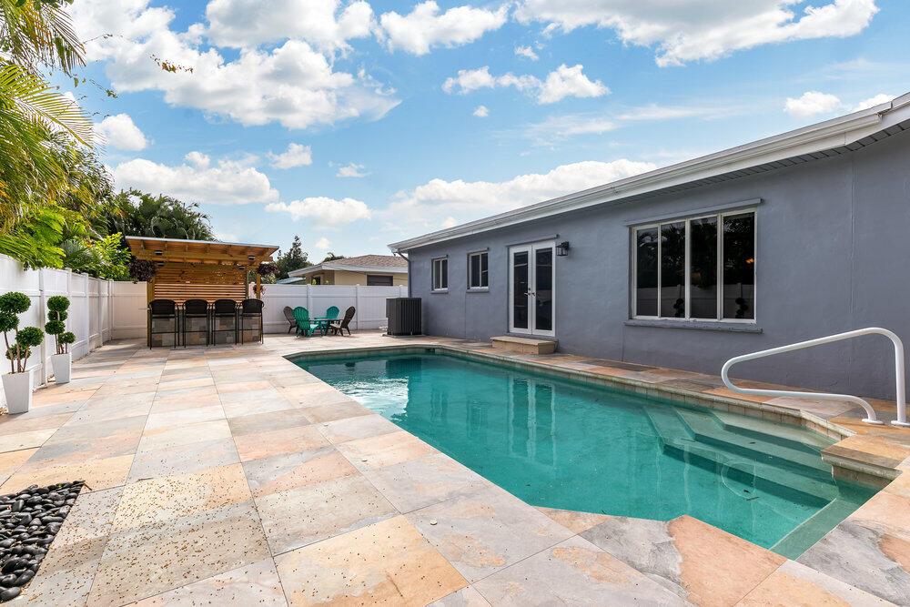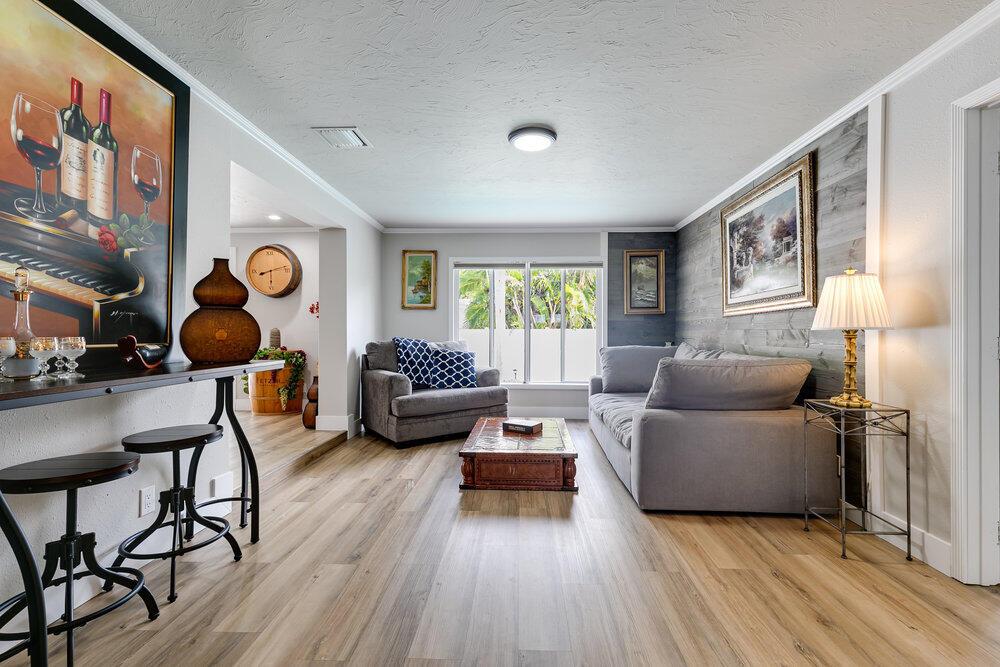 A beautiful 3 bedroom, 2 bath home in the highly desired Boca Villas of the Golden Triangle! Open concept with recent upgrades and renovation done in 2021 and 2022. A rare square footage count for a 3/2 in the neighborhood. This home also contains a separate family room which may potentially convert to a 4th bedroom. Wood cladding installed on the walls for an additional aesthetic appeal. New kitchen aid appliances, new washer and dryer, newly built outdoor bar and newly installed hardscape in the yard. Lush new landscaping in the front yard for maximized curb appeal. Walking distance to the shops and restaurants of Mizner Park. Close proximity to the beach. This home is for the buyer who is looking to live near everything fun and exciting that Boca has to offer! Closing to take place no