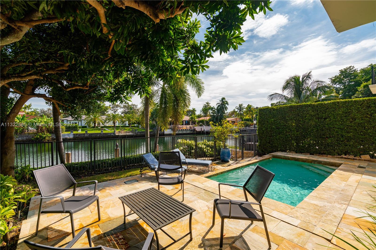 Absolutely stunning Coral Gables waterfront property offers a luxurious and private retreat. This 4 bed/4.5 bath 2-story home has upscale designer finishes throughout and is equipped with an elevator for easy living. The covered patio, pool & enticing private dock are perfect for watching the manatees at dawn or dusk. The kitchen boasts a 6-burner Viking gas range as well as a Sub-zero Refrigerator and Miele dishwasher, inviting cooking and entertaining as it integrates with the family room. The primary suite w/wood floors, large walk-in closet, separate sitting area, and private balcony overlook the waterway. The sublime primary bath features Carrera marble, double sinks w/separate tub & shower with Waterworks fixtures. Walking distance to Riviera Country Club. A Very Special Home.