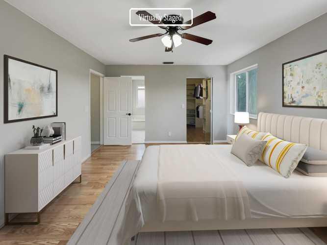 Welcome home! This home has new roof, fresh interior paint, fresh exterior paint and partial flooring replacement . Windows create a light filled interior with well placed neutral accents. The kitchen is ready for cooking with ample counter space and cabinets for storage. Relax in your primary suite with a walk in closet included. Extra bedrooms add nice flex space for your everyday needs. The primary bathroom is fully equipped with a separate tub and shower, double sinks, and plenty of under sink storage. Take it easy in the fenced in back yard. The sitting area makes it great for BBQs! A must see!