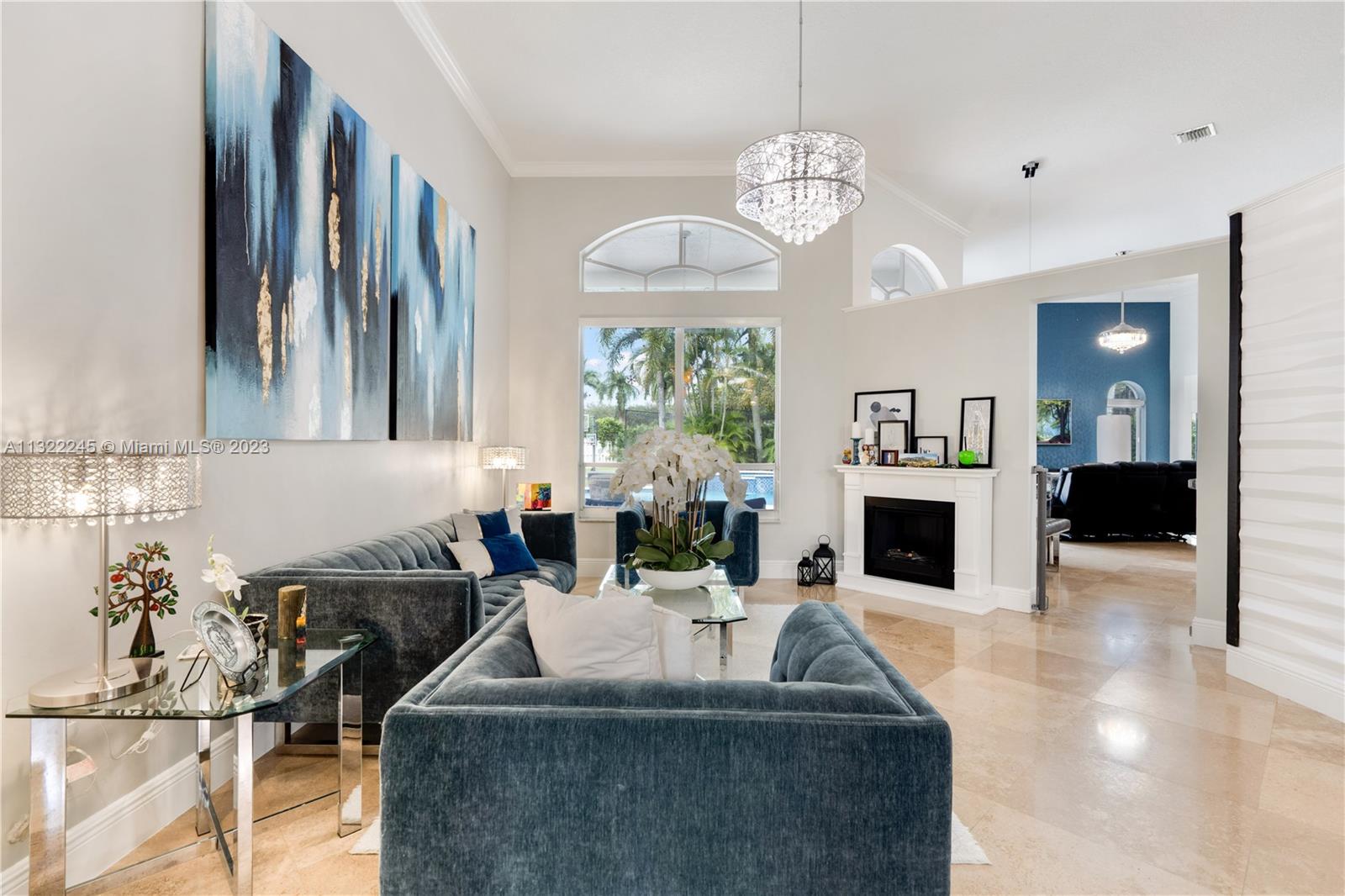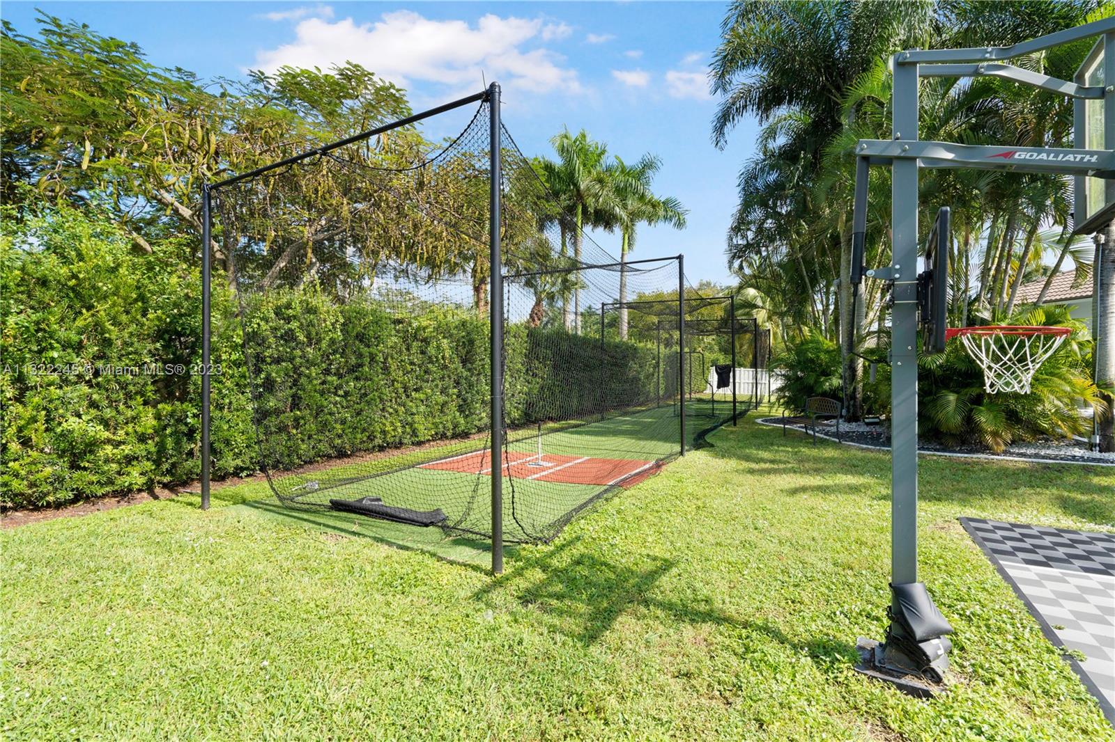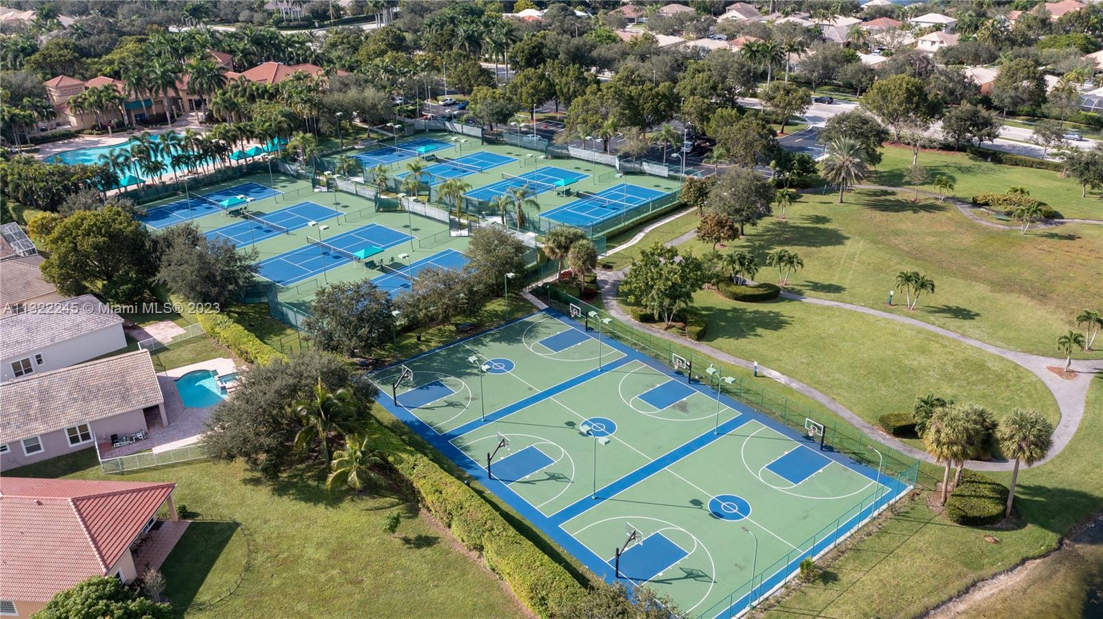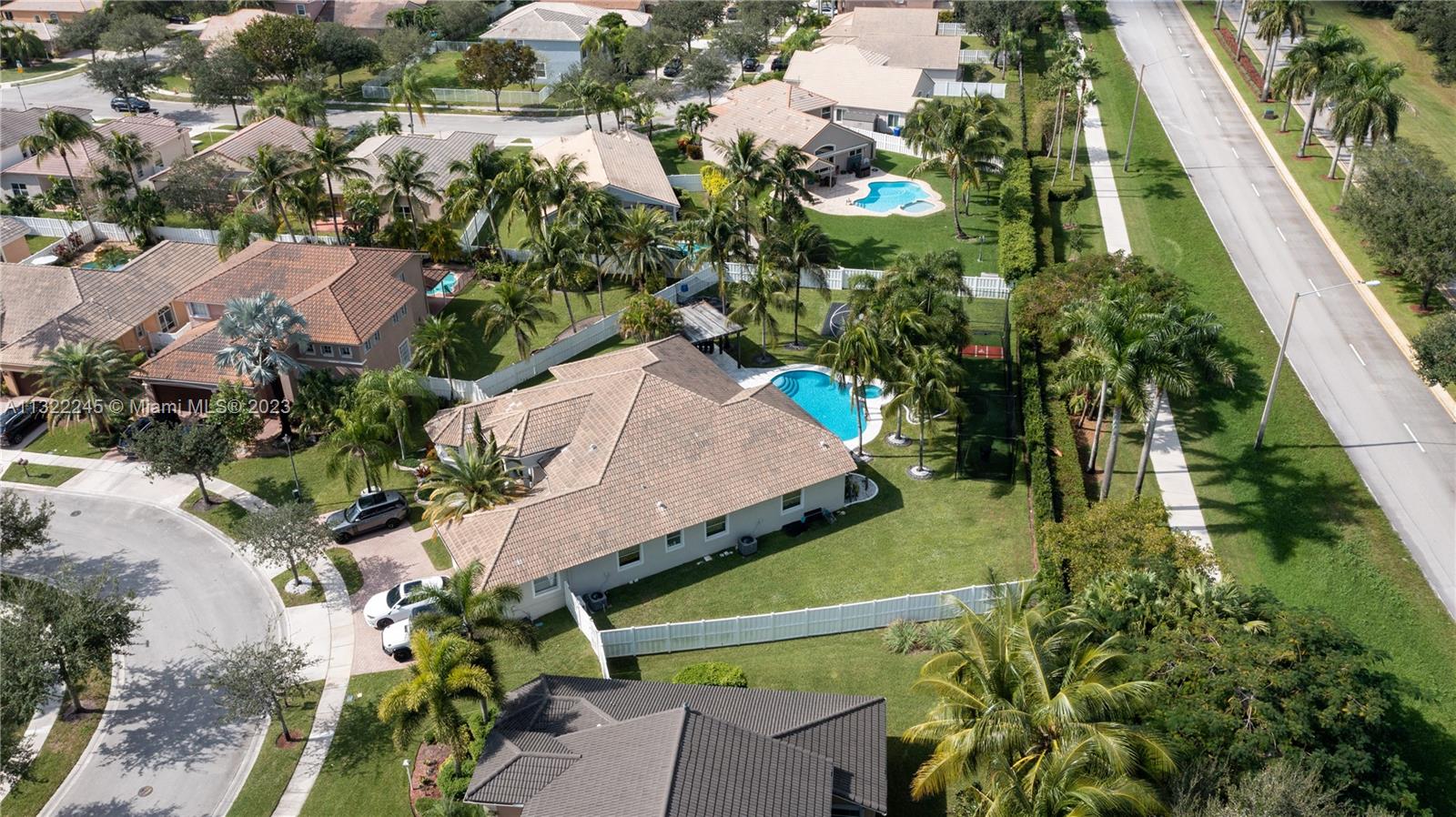 COMPLETELY RENOVATED MONTEREY MODEL, DESIRABLE 3 WAY SPLIT FLOOR PLAN, 4 BEDROOMS+DEN (THEATER ROOM) PRIVATE MAN CAVE ROOM, 3 UPDATED BATHS, ELEGANT MASTER SUITE W/UPGRADED BATHROOM 2021 AND CALIFORNIA CLOSETS, GRANITE KITCHEN W/SS APPLIANCES, WOOD CABINETS, MARBLE FLOORS ON MAIN AREAS LAMINATED WOOD FLOORS ON BEDROOMS, 2 AC UNITS 2018,ACCORDION SHUTTERS, CONCRETE LANDSCAPE BORDERS, EXTERIOR LIGHTING WITH BEAUTIFUL POOL, BACKYARD WITH SPECTACULAR PARADISE PAVERED PATIO WITH LARGE COVERED PORCH AND LUSH TROPICAL LANDSCAPING, SUMMER KITCHEN, HALF BASKETBALL COURT, BATTING CAGE PACKAGE. PREMIUM SIZE LOT OVER 18,000 SF CORNER WITH CIRCULAR DRIVEWAY. GATED COMMUNITY RESORT STYLE CLUB HOUSE, HEATED POOL, SPA, FITNES CENTER, TENNIS AND BASKETBALL COURT.HOA INCLUDES CABLE-HIGH SPEED INTERNET ALARM