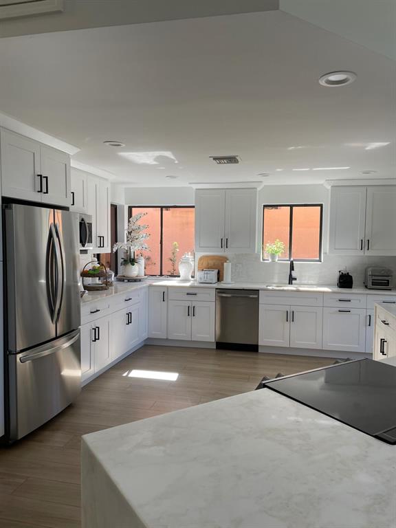 Villa Flora of Boca Pointe!! Renovated one story, single family home in desirable Villa Flora of BOCA POINTE. Brand new roof, brand new A/C, brand new stainless steel appliances. Italian porcelain plank flooring throughout. Completely open kitchen with white cabinetry and natural stone quartzite countertops with matching backsplash and waterfall edge. Custom built closets new doors and new hardware. Bathrooms encompass Italian porcelain flooring throughout as well as quartz countertops. BOCA POINTE is a NON mandatory equity membership community. You can get pricing for social and golf memberships.