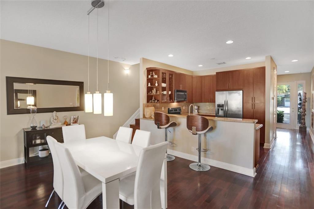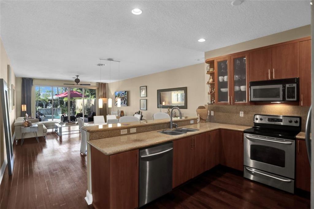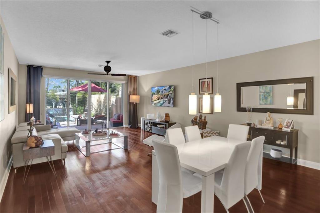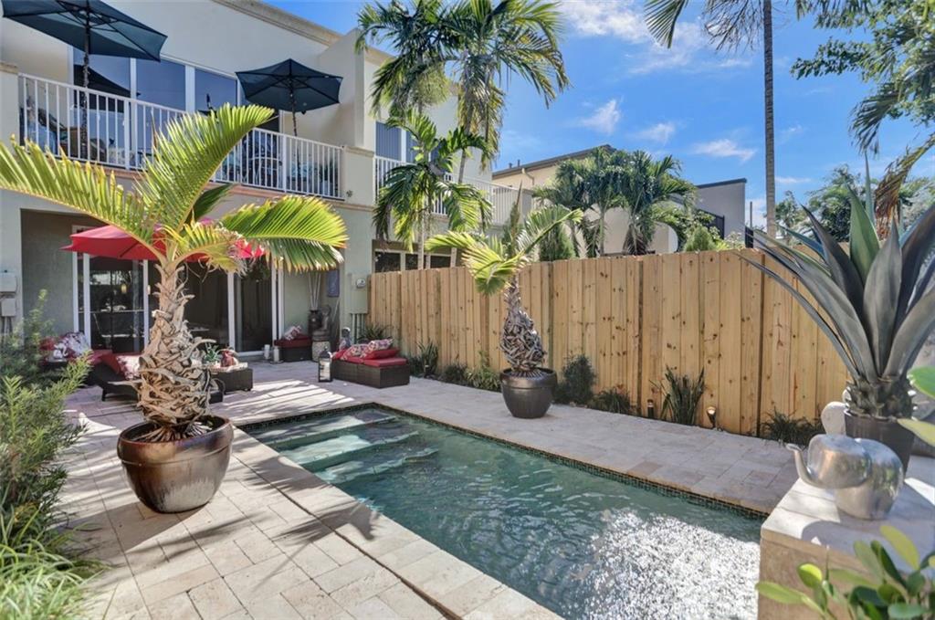 Awesome townhome with open, spacious floor plan leading to your own private outdoor oasis with covered patio and private pool with a tranquil waterfall feature. Impact windows and doors, open kitchen with granite counters, wood floors, front and rear balconies, 9’ ceilings and 8’ doors, Dual Zone AC, a one car garage, and brick paver driveway. Large primary suite features a large balcony overlooking the pool area, walk-in closet, trayed ceilings, and primary bath with walk in shower, separate Jacuzzi tub, and a double sink vanity. Convenient to Holiday Park and the energetic “Studio City”, a vibrant district home to restaurants, boutique shops, fitness studios and even a brewery. Minutes to downtown, Las Olas, beaches and more! Rental Friendly! Okay to lease right away! Very Pet Friendly!
