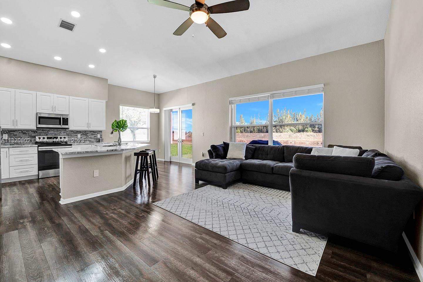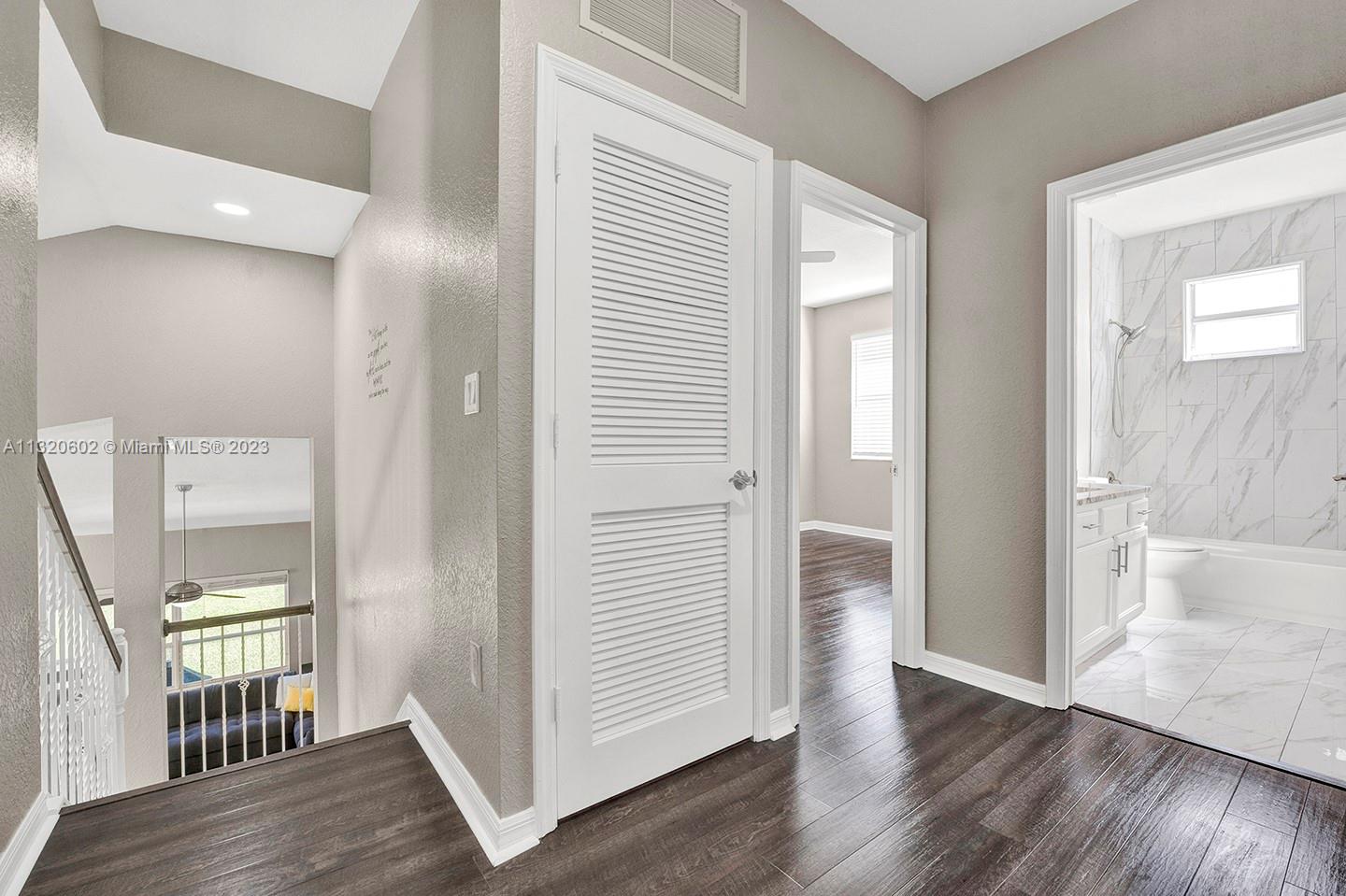 Located in a private, gated community within the heart of Miramar. A two-floor single-family home with 4BR and 2.5 baths, with the master bedroom on the 1st floor. Newly remodeled open kitchen featuring high ceilings, beautiful marble slate counters, and a kitchen island, ideal for hosting. Remodeled bathrooms, master bathroom has a full soak tub as well as a standup shower. Two-car garage in addition to spacious driveway. Large backyard with waterfront view ideal for children, pets, or home gatherings. The community also provides a clubhouse with amenities such as a pool, fitness center, and playground.
