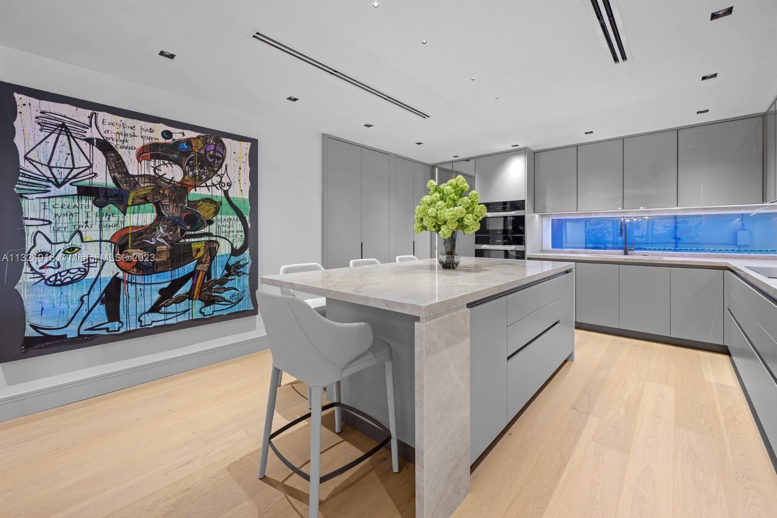 Welcome to this striking waterfront turnkey residence designed by Estudio Jorge Fuentes. This home has been completely gutted and remodeled with the finest finishes both inside and out. All millwork and closets are by Armazen Design, living room includes desirable paneling design, full wet bar with hidden doors and bespoke buildouts. Custom kitchen with Miele & Thermador appliances. Bathrooms include Madeli mirrors with LED/sensors, Toto Smart Toilets and a steam shower by Mr. Steam. A desirable newly added pool, and breathtaking landscape surrounding this one-of-a kind residence. Additional features: RH & custom Italian furniture, wood floors throughout, face recognition entry door system, Savant AV, 14 installed security cameras, high impact windows, mini golf, outdoor sauna, & much more