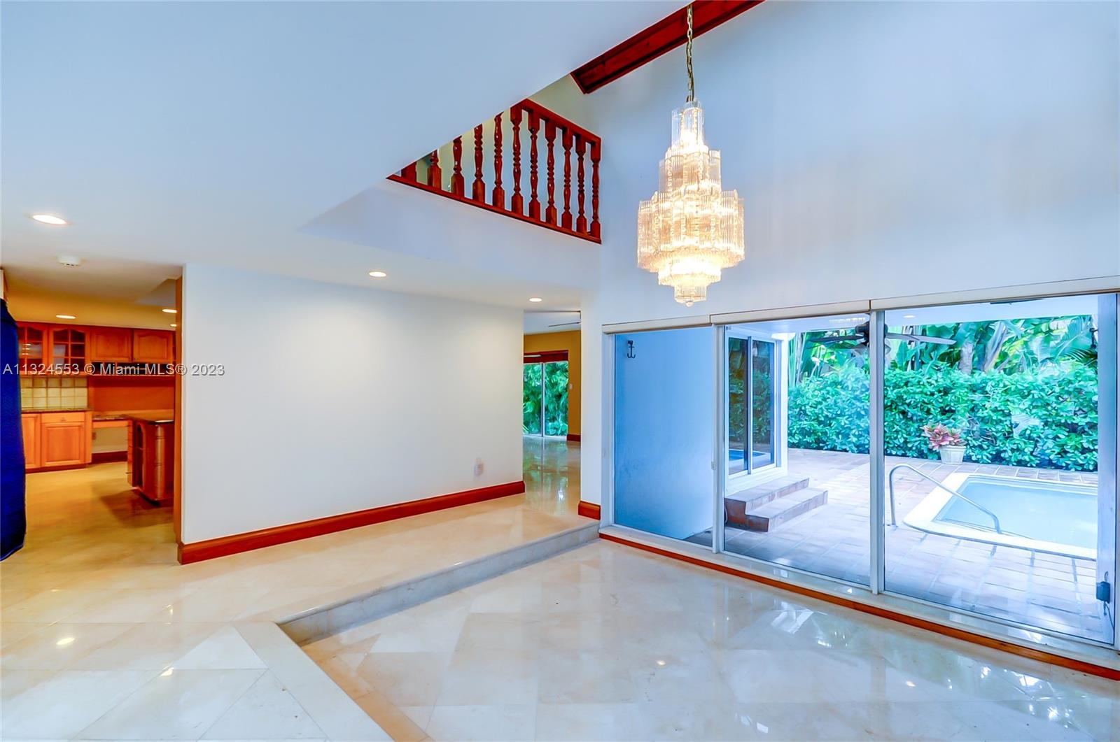 Contemporary 5 bedroom/ 4 bathroom home located on a quiet street in the gated community of Pinecrest by the Sea. Grand formal living with double height ceilings and inside balconies. Spacious kitchen with island, opening to the large family room which heads directly to the tropically landscaped patio and pool. Master's and other bedrooms located on the second floor, with an office room and cabana bathroom on the first. New roof and AC units. 2 car garage and circular driveway. Voluntary HOA.