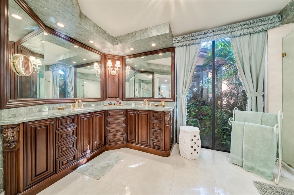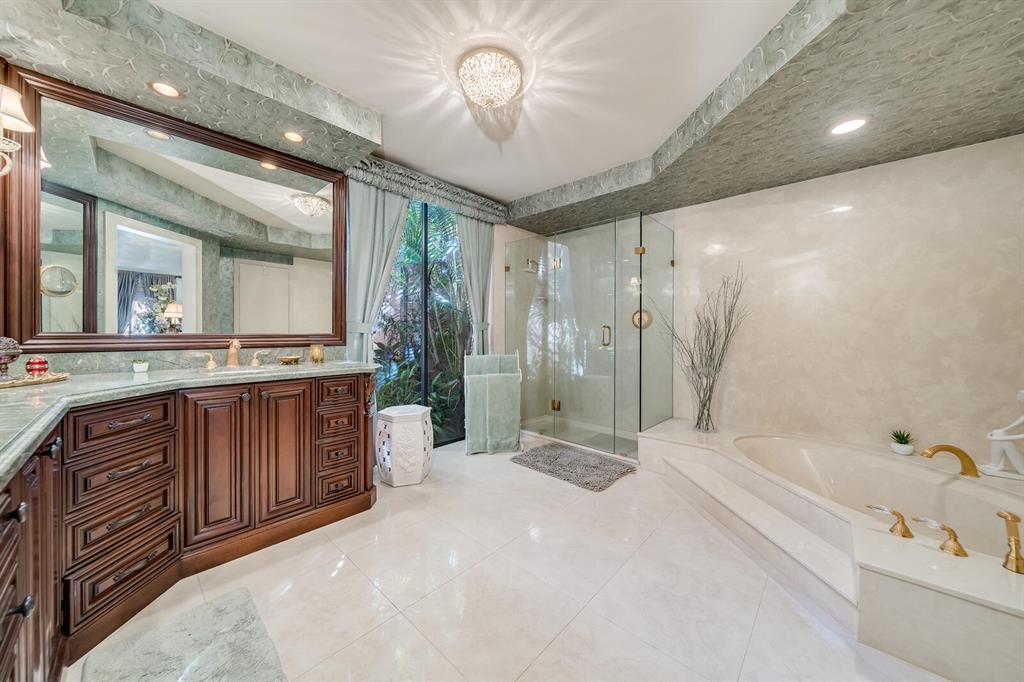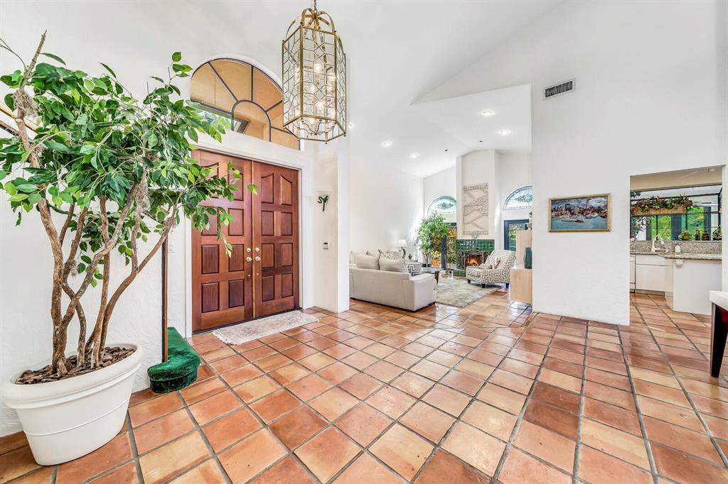 Wow! Spectacular Mediterranean home on Huge Corner Lot features 3 bedrooms, 2.5 baths & a 2 car garage. Located in the prestigious Villa Flora at Boca Pointe. Private & elegant wrought iron double gate leads to the front door. Dramatic entrance w/soaring cathedral ceilings. Enjoy the sense of openness, volume, & space. This floor plan is an Expanded Villa La Palma with an additional family room. Special corner lot with tons of privacy & space from other homes. Wood burning fireplace in the living room. Downstairs master bedroom has an updated bathroom, huge dressing area, & enormous walk in closet w/customized shelving. The 2nd story has 2 bedrooms and a Jack & Jill bathroom with a loft area that is open to the living & dining room. Brand new roof from 2021 w/transferable warrantee.
