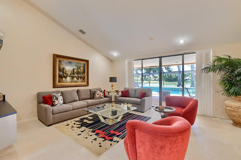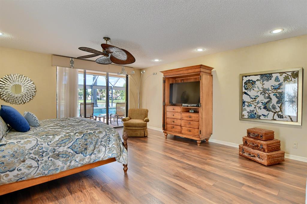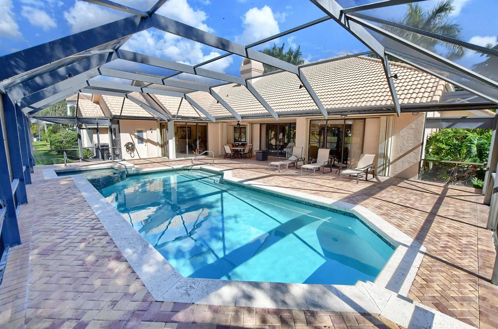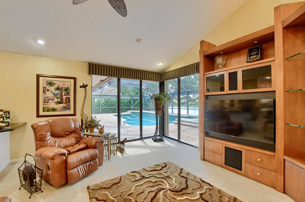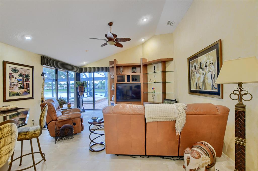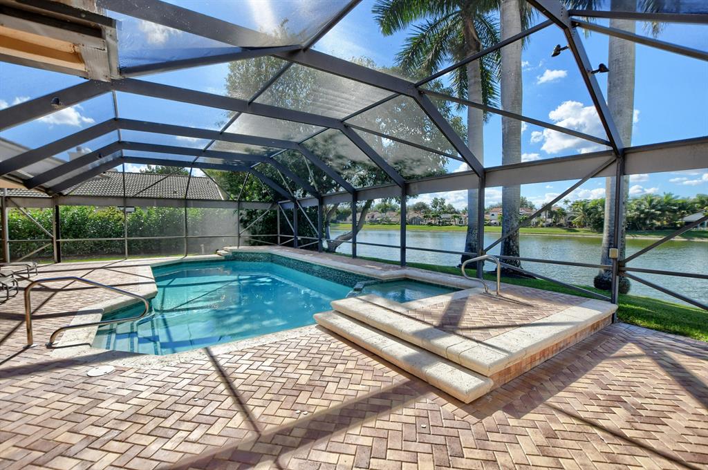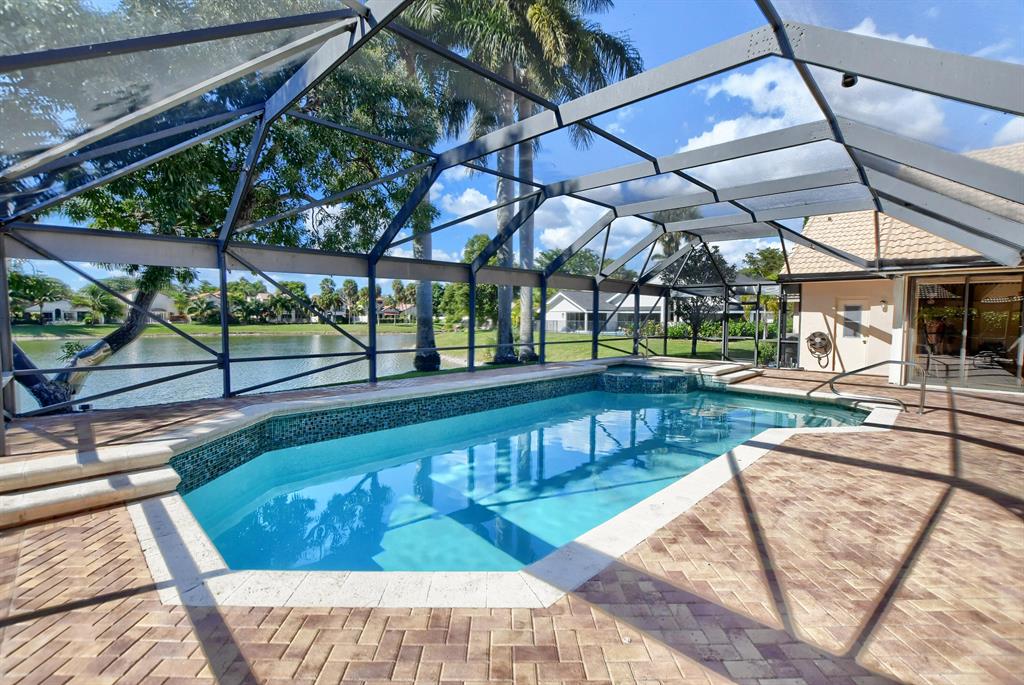 Enter this sprawling one story pool home and see picture perfect lake views! This 4/3 home features a split floor plan, spacious kitchen, plus a separate living room and family room with a wet bar. Kitchen has lots of cabinets and counter space plus island, desk and breakfast area is open to large family room. Master suite looks out at lake, 2 walk in custom fitted closets, large updated master bath area. Beautiful large pool and spa with new pool heater. 3 car garage with epoxy floors. Other features include 3 zone A/C, accordion shutters on rear of home, cabana bath, central vacuum> Included: attached TV's, fridge + freezer in garage; fire pit + outdoor furniture. A/C's 3 years old, 2009, 2015. Pool retiled and re-marcited 2 yrs ago. Pool deck resurfaced. Marble pavers on driveway.