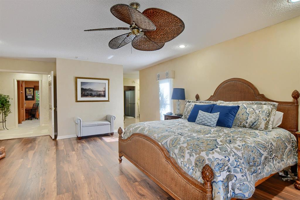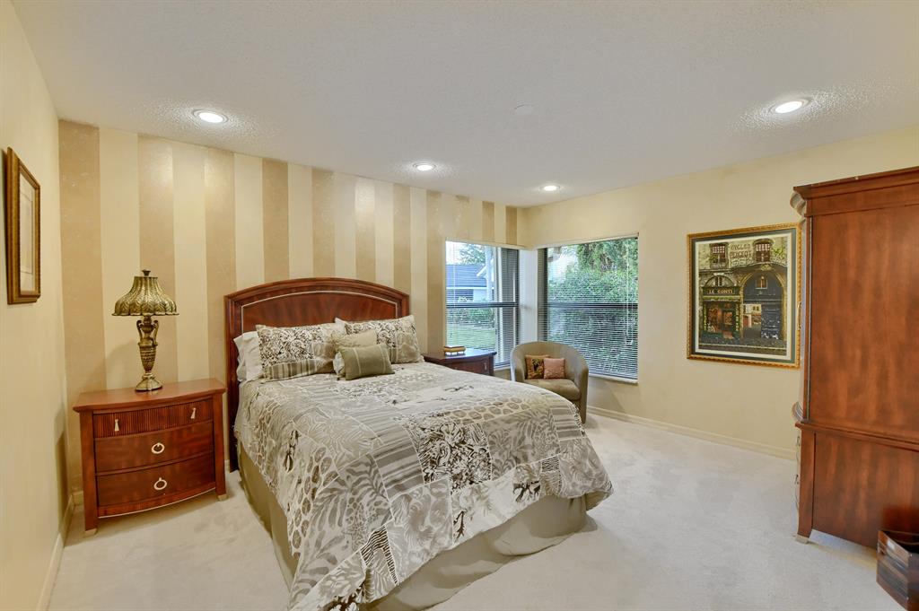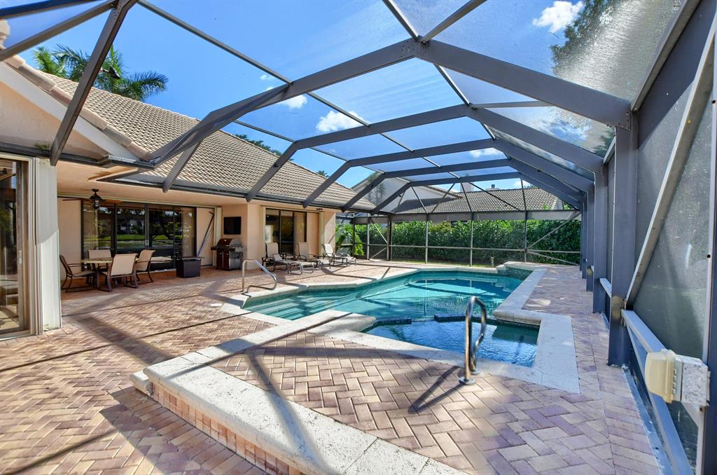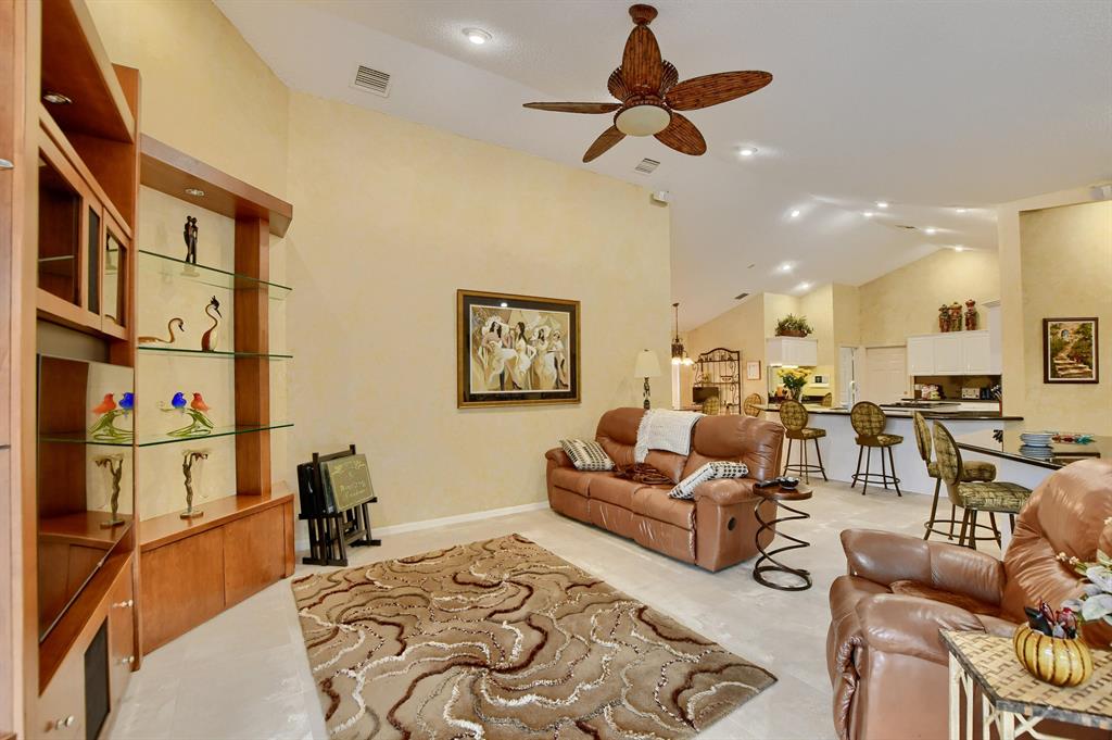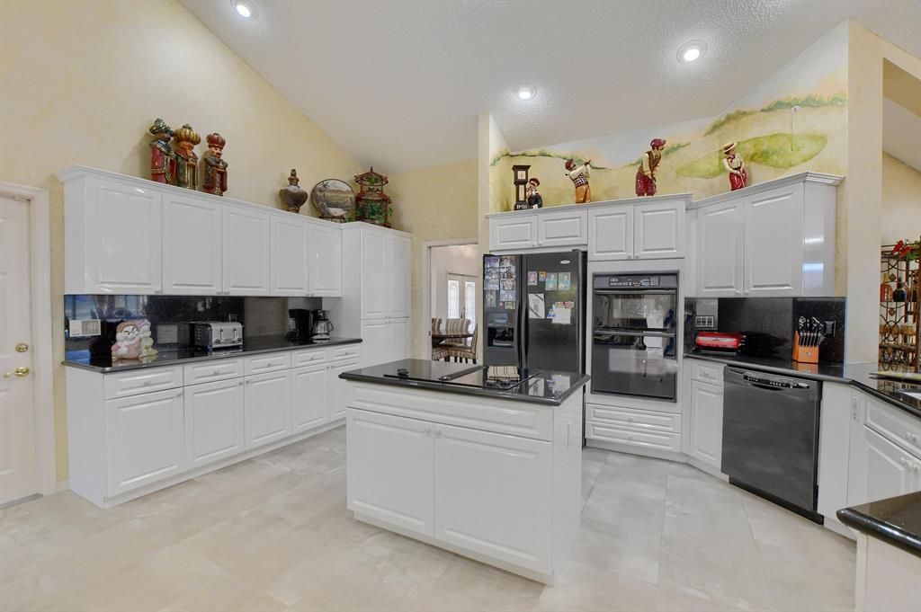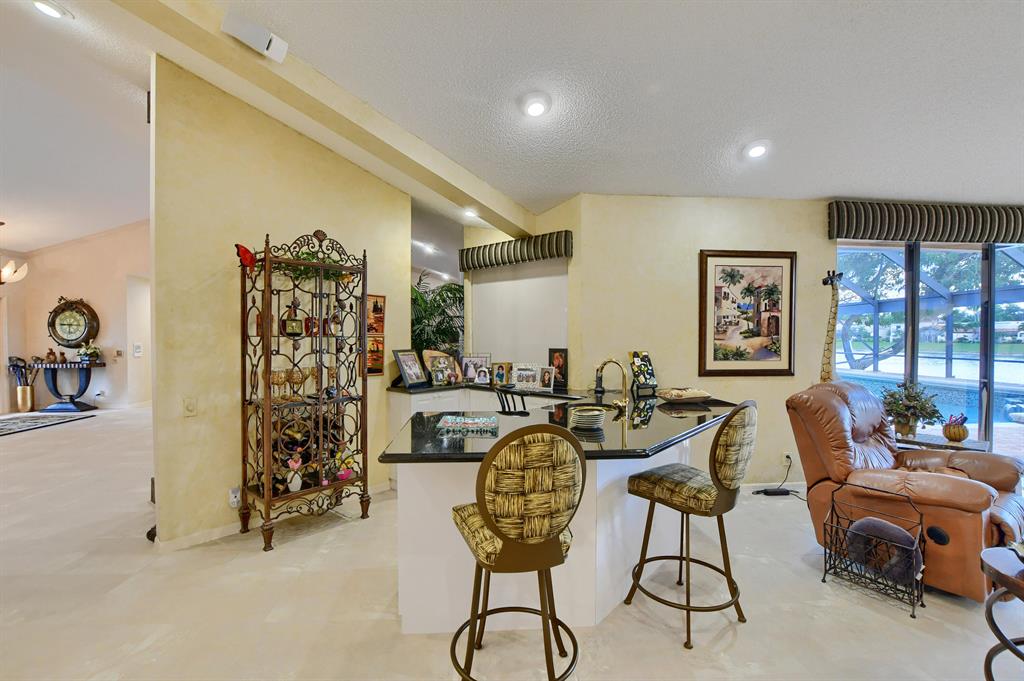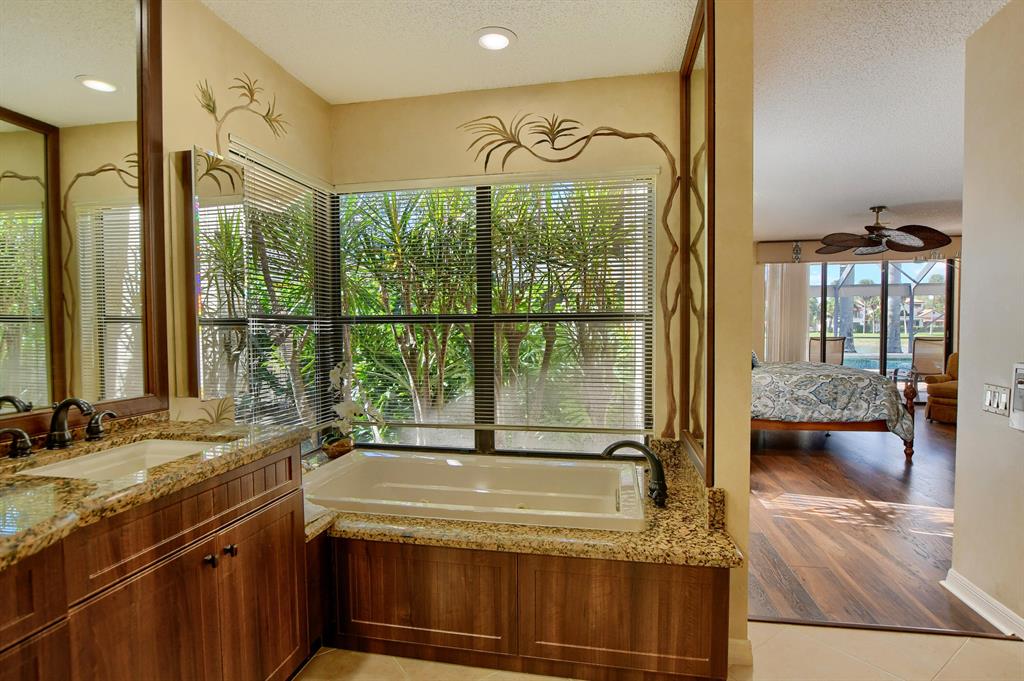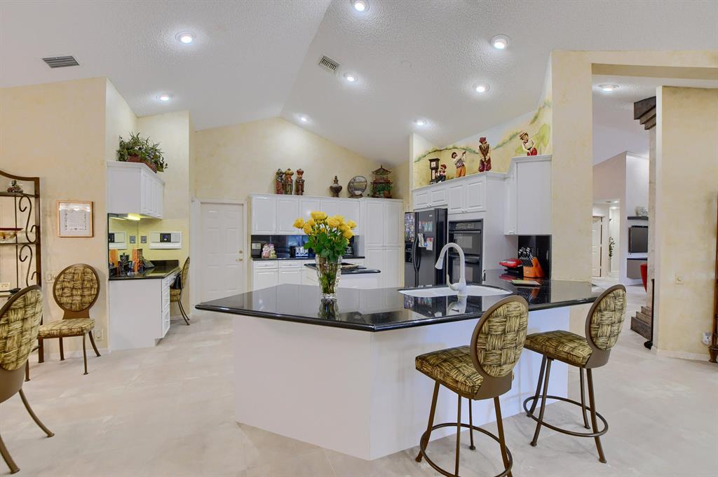 Enter this sprawling one story pool home and see picture perfect lake views! This 4/3 home features a split floor plan, spacious kitchen, plus a separate living room and family room with a wet bar. Kitchen has lots of cabinets and counter space plus island, desk and breakfast area is open to large family room. Master suite looks out at lake, 2 walk in custom fitted closets, large updated master bath area. Beautiful large pool and spa with new pool heater. 3 car garage with epoxy floors. Other features include 3 zone A/C, accordion shutters on rear of home, cabana bath, central vacuum> Included: attached TV's, fridge + freezer in garage; fire pit + outdoor furniture. A/C's 3 years old, 2009, 2015. Pool retiled and re-marcited 2 yrs ago. Pool deck resurfaced. Marble pavers on driveway.