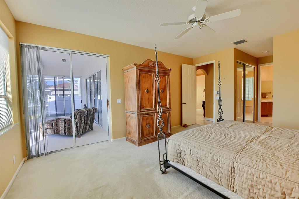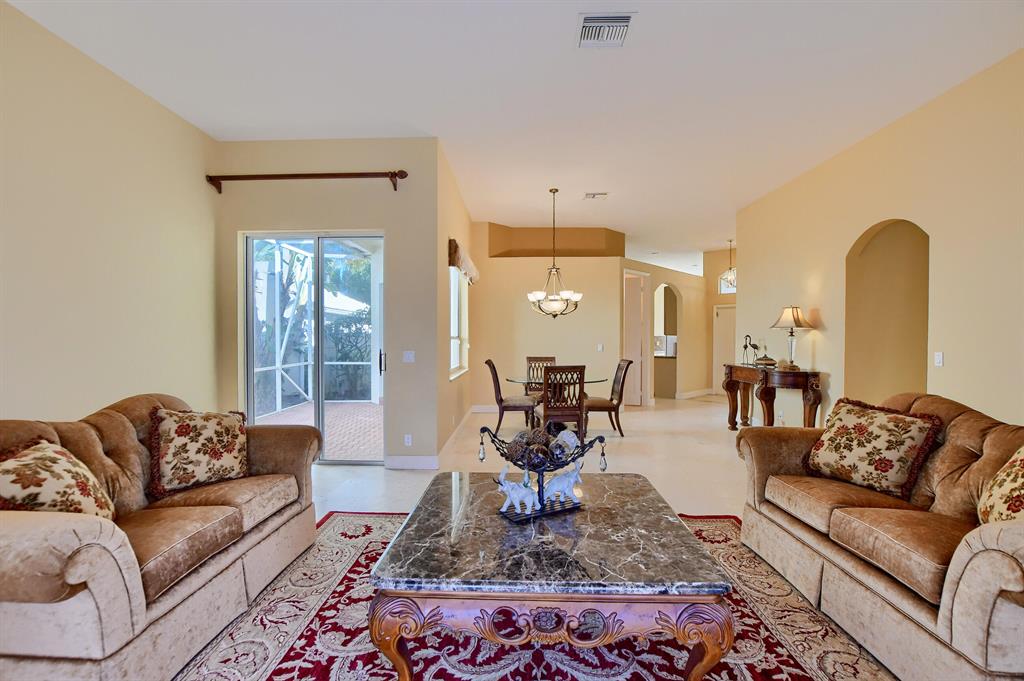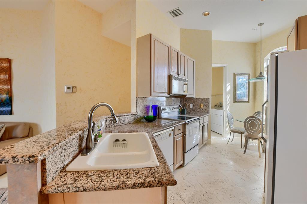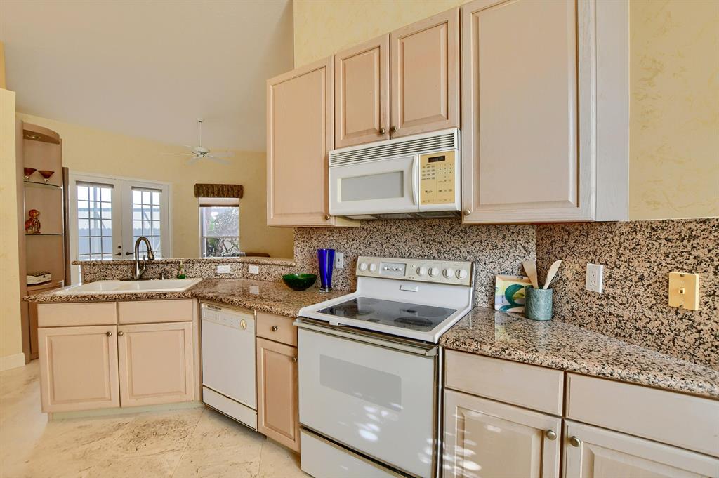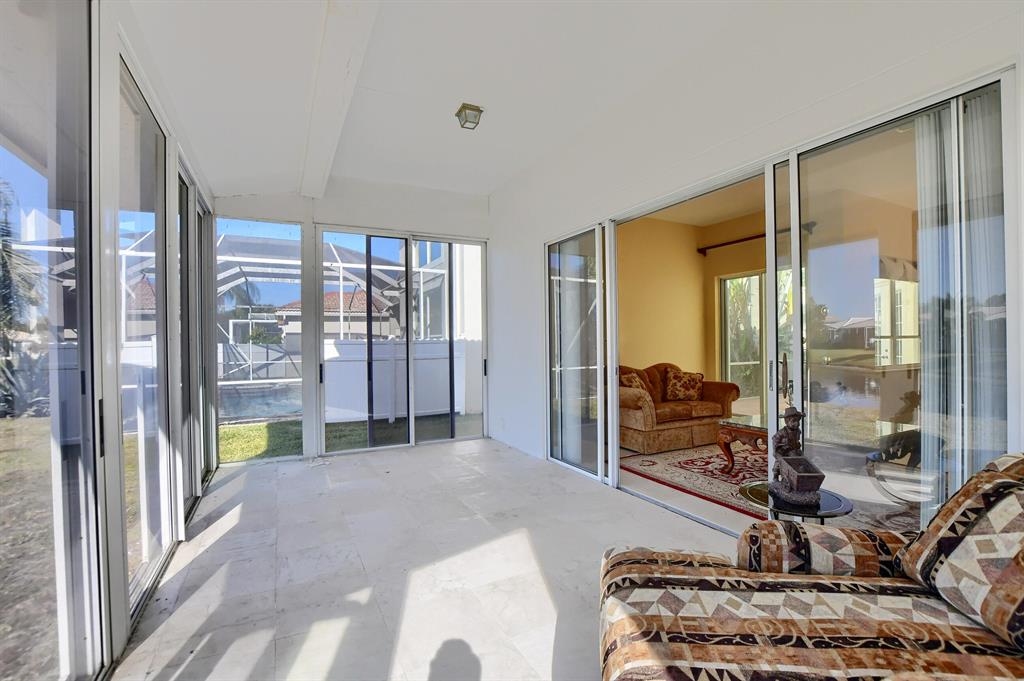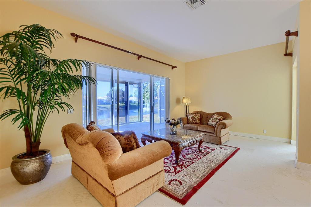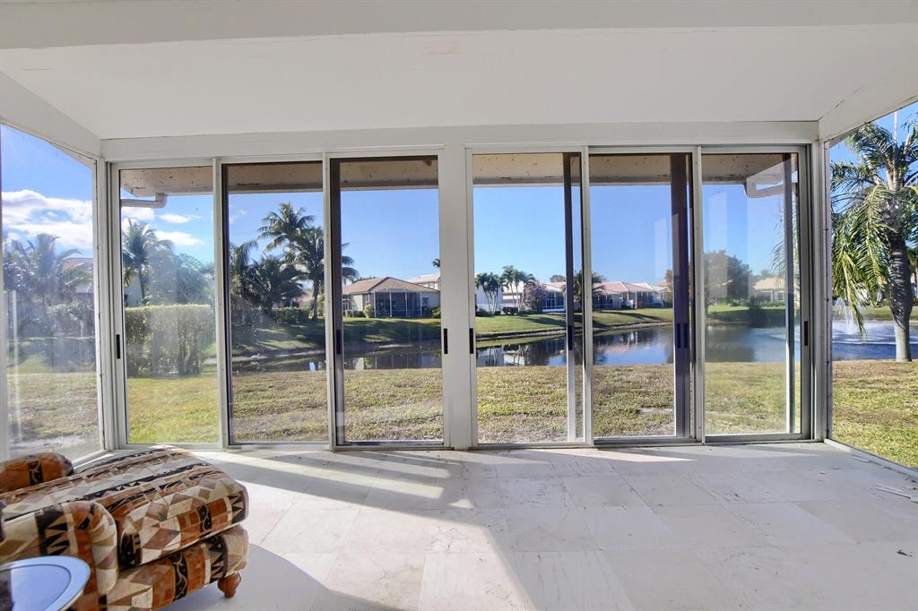 Price reduced for quick sale! One story home with relaxing lake views. Huge glass enclosed florida room to enjoy the views. Enter this beautiful home and enjoy the perfect layout with 2 patios (one screened and one glass enclosed), split bedrooms, high ceilings, formal living room and den, eat in kitchen and 2 car garage. The flooring in main living areas is a custom stone neutral tile. Kitchen has high cabinets and granite counters. Master bedroom features 2 walk in closets, lake views, private bath with separate shower and tub. Two other bedrooms share a bath and both have walk in closets. Laundry room has sink and access from hallway and kitchen. Lovingly maintained by original owners. Community has 24 hour manned gate and subdivision pool.