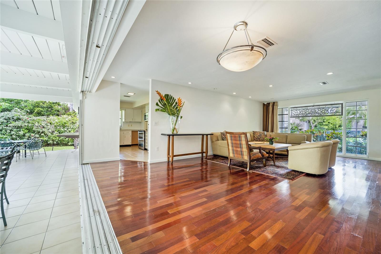 Lovely Bermuda style custom built home on a street with other custom built homes. * Over-sized lot 8,916 sq. ft.* Great side yard for your kids to play in. 3 bedroom 2.5 baths with additional toilet in garage. Very large open living/dining area, with a panel of 4 stacking glass doors, opening to a large soothing tropical patio. Master bedroom also opens directly onto the patio and the large backyard. Plenty of room for a pool. Ample closet space and additional storage in the garage. Garage can be converted to a fourth bedroom. Flooring is a combination of terrazzo and wood floors with tile on the patio. Has Beach Club membership. Easy walk to the K.B. Yacht Club and local churches. Very comfortable as is or remodel to your needs.