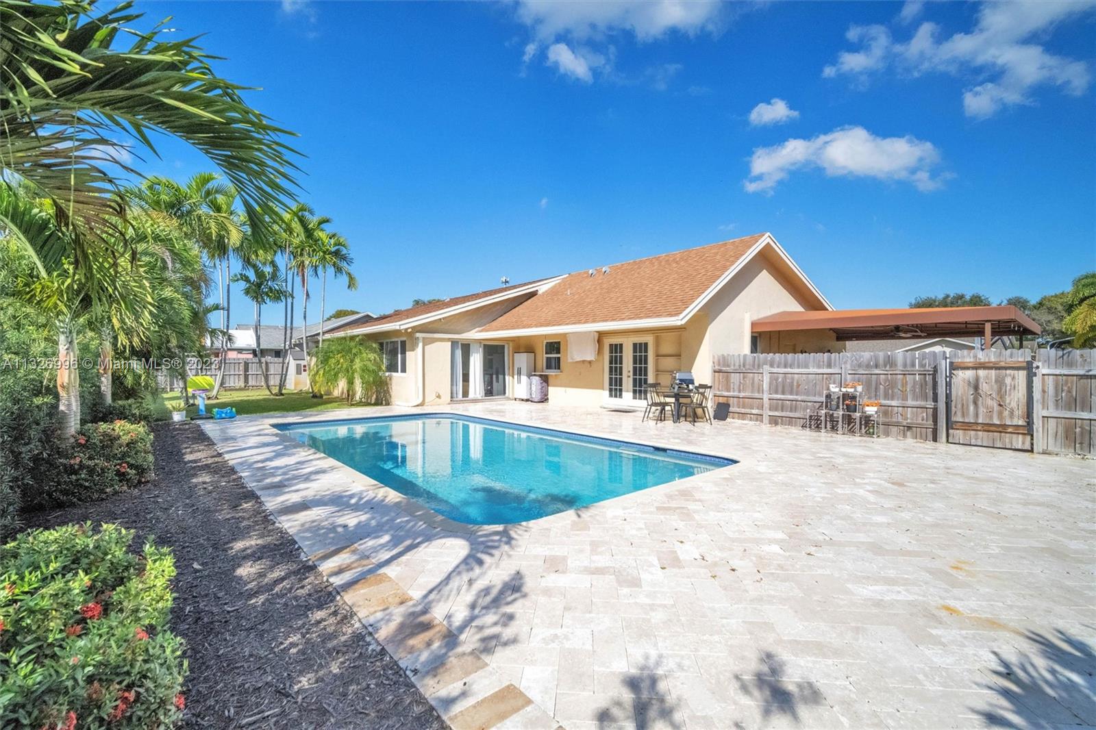 This beautifully updated and spacious family home located in the heart of Davie will not last long! With 4 well-sized bedrooms, large galley kitchen, 2 seating areas, and 2 bathrooms, this home is undeniably perfect for family living. The home is excellent for hosting gatherings and entertaining. Lighting, ceiling fans, and fixtures flow throughout the home. The large sparkling pool is enticing and a perfect way to cool off on those hot Florida days. Additional features include: Remodeled kitchen (2019) Stainless steel appliances Brand new AC unit (2020) New remodeled deck & landscaping (2020) Newly remodeled bathroom (2021) Newly remodeled primary closet(2022) Impact windows throughout 2 Car Garage Pool with pool light Storage Shed RV or Boat Parking