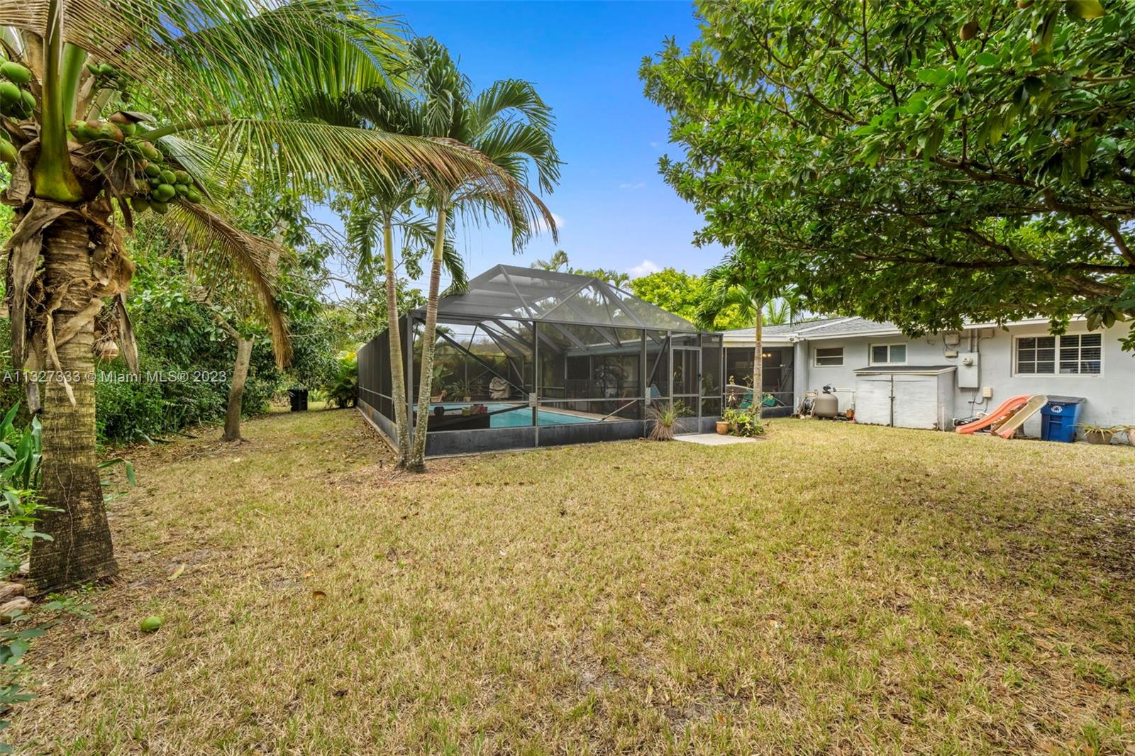 This home checks all the boxes!! Beautiful and open spacious floorplan, great square ft distribution. New and open plan Kitchen, 3 Bed/ 2 Bath, with a 1 car garage giving room for growth. There's a separate entrance to the utility room and garage from the back making an in-laws quarter a possibility. Home has a large circular driveway and sits on a large corner lot with great curb appeal, numerous fruit trees, well kept manicured landscaping. Large backyard with a large beautiful screened in pool and Patio.** This home is perfect for a family and for entertaining.** The screened enclosure on the patio is pet proof and the pool has child protection. House also has Impact windows, new AC unit, and a new Roof, The list of positives go on. This is a move-in beauty!!
