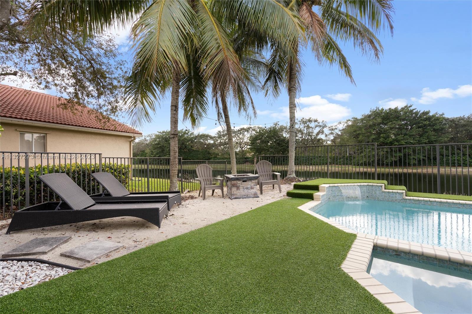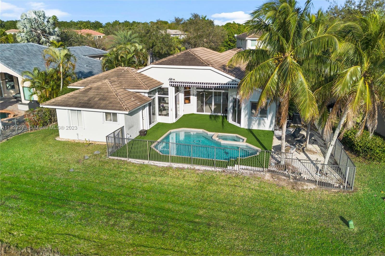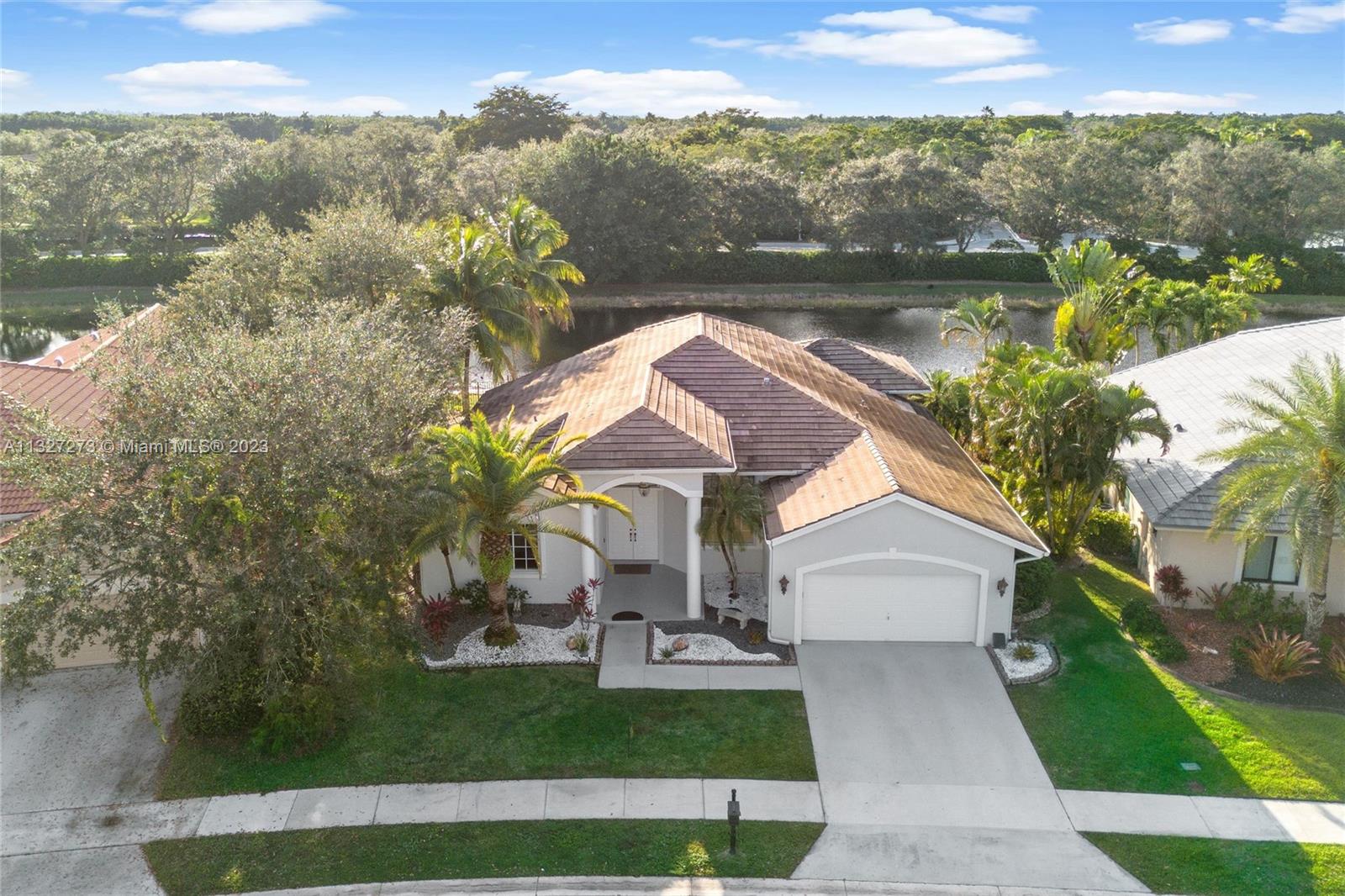 New ROOF is to be completed prior to closing. This beautiful one-story home is located in the heart of Weston, The Islands. The home sits on a lakefront and features a heated swimming pool with a spa, and salt chlorination, perfect for enjoying the outdoor views. It includes 5 bedrooms and 3 full baths with a three-way split floor plan. The kitchen has been updated with granite counters, wood cabinets, and stainless-steel appliances, the bathrooms have also been tastefully updated. Bedrooms feature engineered wood floors and accordion shutters throughout the home. The Island is a smaller, high-end community, surrounded by a panoramic lake and is within walking distance of Weston Town Center restaurants and shops. The backyard fence can be extended to the property line.