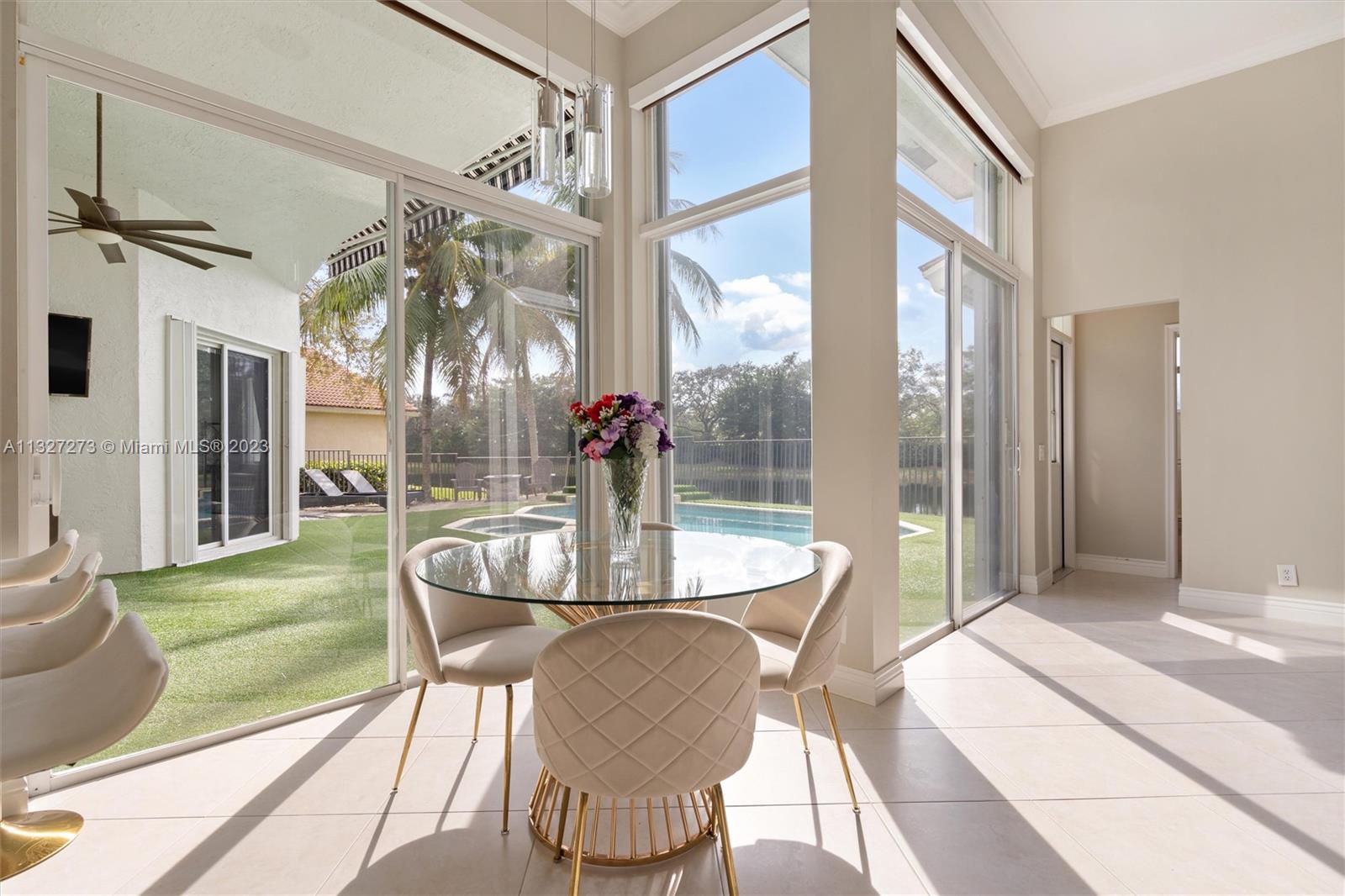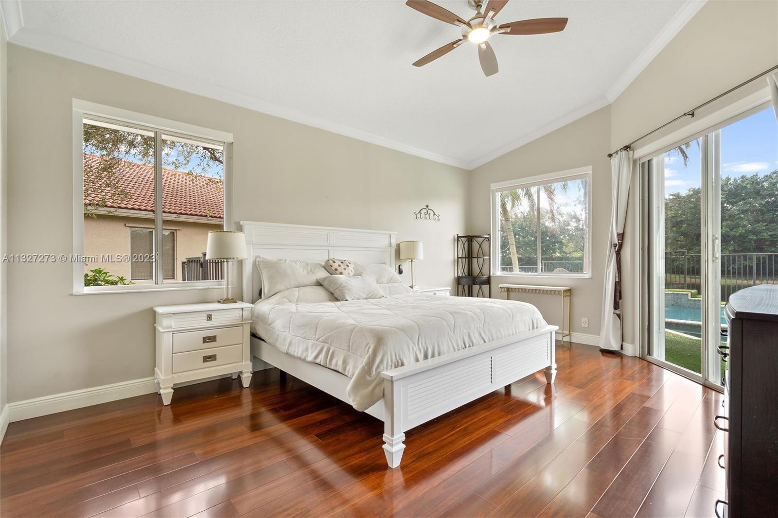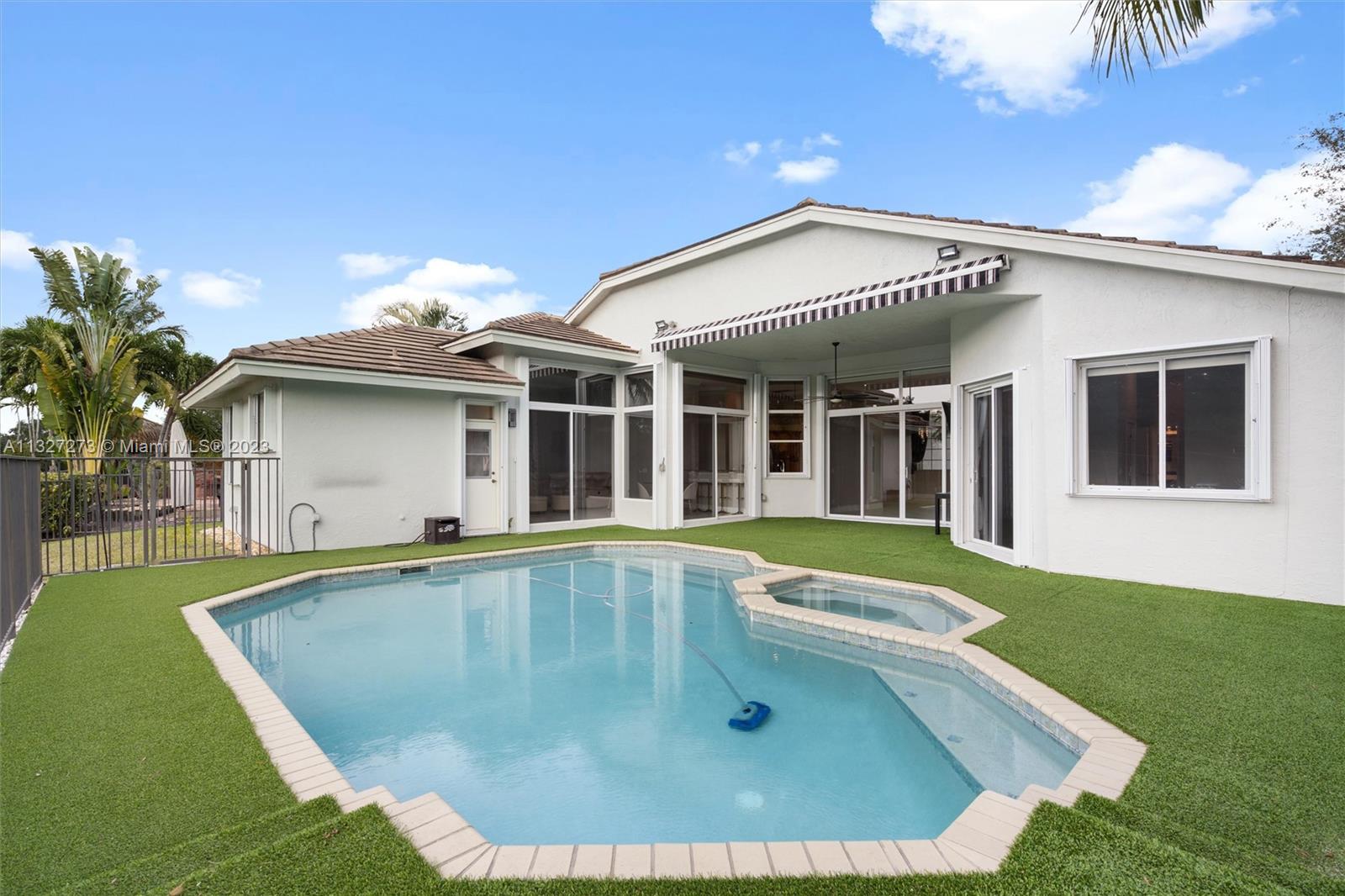 New ROOF is to be completed prior to closing. This beautiful one-story home is located in the heart of Weston, The Islands. The home sits on a lakefront and features a heated swimming pool with a spa, and salt chlorination, perfect for enjoying the outdoor views. It includes 5 bedrooms and 3 full baths with a three-way split floor plan. The kitchen has been updated with granite counters, wood cabinets, and stainless-steel appliances, the bathrooms have also been tastefully updated. Bedrooms feature engineered wood floors and accordion shutters throughout the home. The Island is a smaller, high-end community, surrounded by a panoramic lake and is within walking distance of Weston Town Center restaurants and shops. The backyard fence can be extended to the property line.