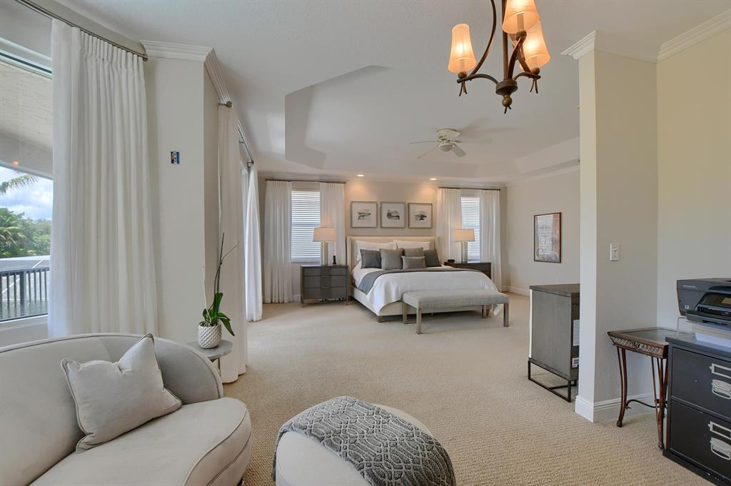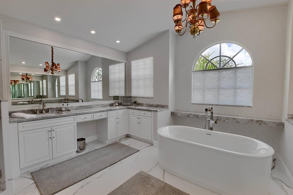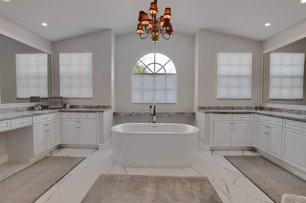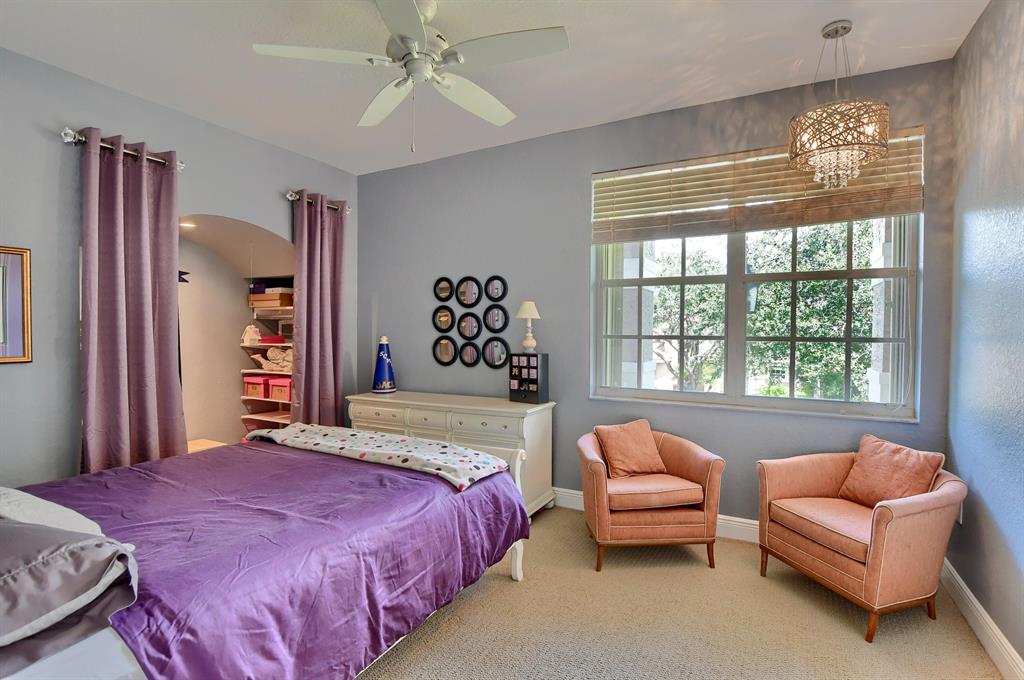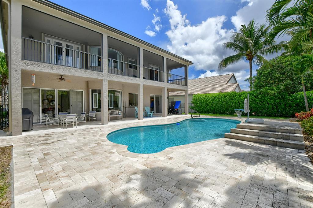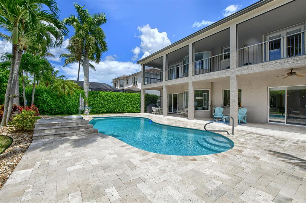 Lower your insurance with this 1-year old roof! This Chateau Lafitte model is situated on a private lot & provides 4162 sq. ft. of fine living. A 1st floor office/den doubles as a 5th bedroom with a full bathroom downstairs to accommodate, four more large bedrooms & three baths upstairs plus a flexible sitting area within the Primary bedroom. The newly finished Primary bathroom is straight from a designer magazine. Connecting the Primary bedroom to the 4th bedrm is a full-length screened balcony, perfect for watching sunsets. A transitional chef's kitchen boasts quartz counters & a full set of newer appliances. The well-manicured backyard includes a grotto-inspired pool & covered patio. Two A-rated schools sit right across the street so the little ones can walk to class.