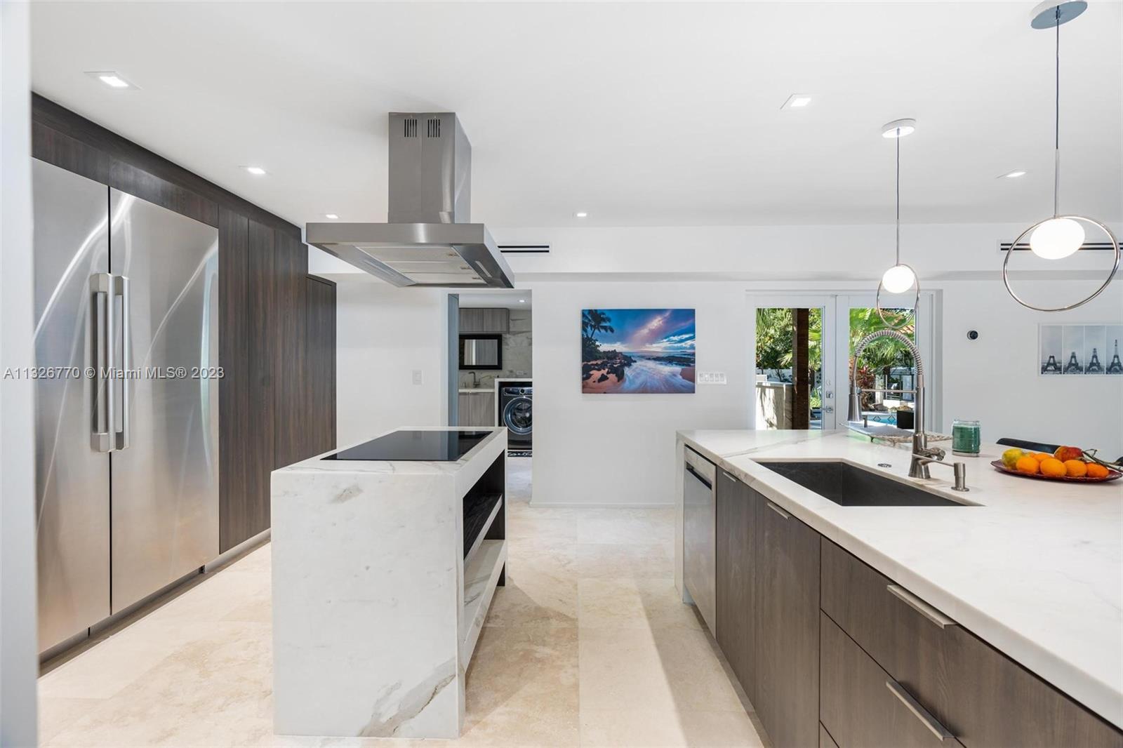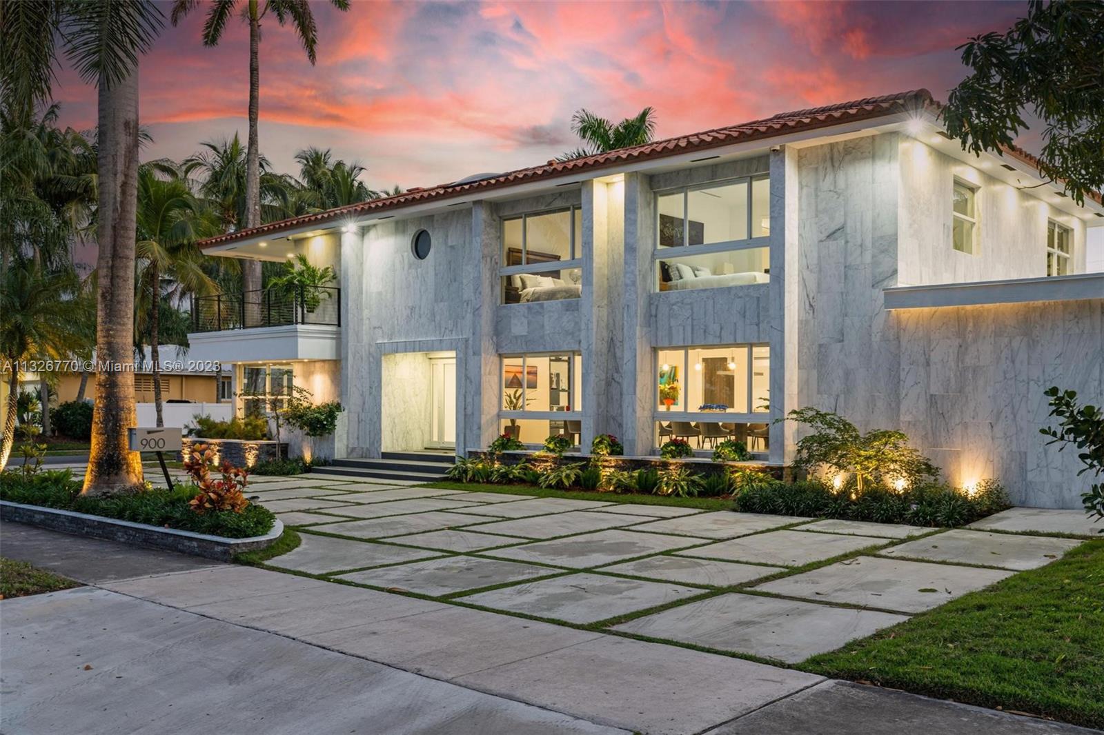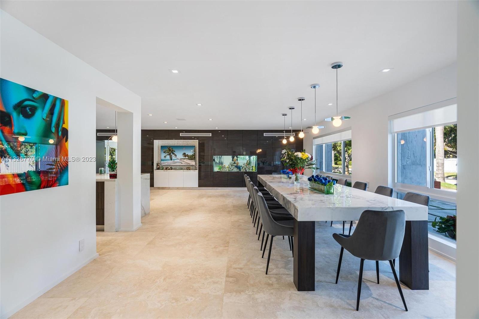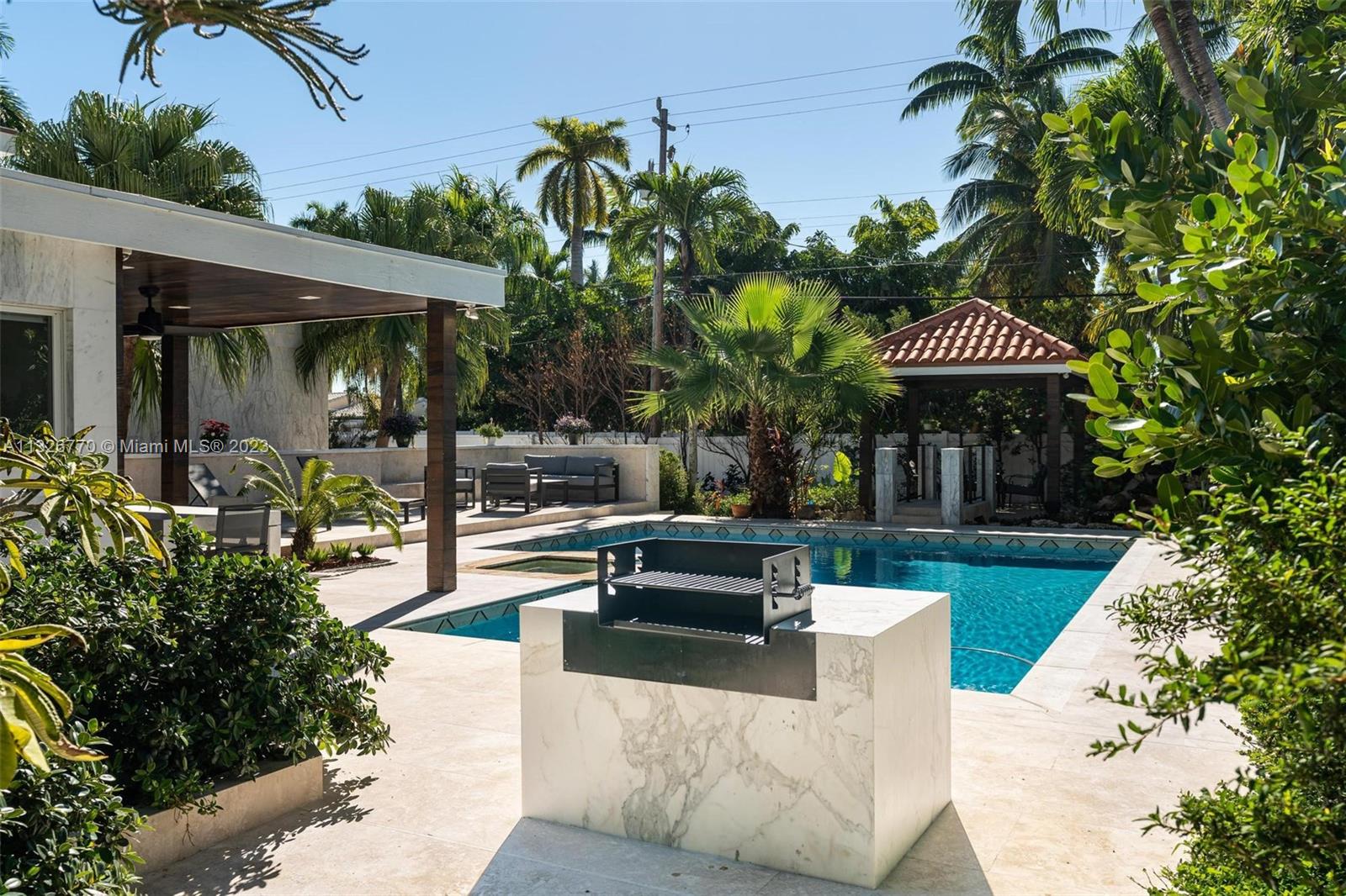 MODERN. LUXURIOUS. ELEGANT. This stunning residence in the upscale Hollywood Lakes neighborhood features exquisite finishes from its exterior marble-clad facade, custom wood cabinetry, Calacatta waterfall islands, custom marble staircase, and travertine/marble floors. This 4 bed, 4 bath home sits on a corner lot steps away from the bay and offers an open floor plan, impact windows, custom bar + modern wine rack, two outdoor gazebos with a fully-equipped summer kitchen, gorgeous pool deck + manicured landscaping, and oversized laundry room. The master suite offers a sitting area + outdoor terrace overlooking the water, mesmerizing statuary marble bathroom with rain shower + spa tub, and custom walk-in closet cabinetry. Marvelous home with the most exceptional materials and finishes!