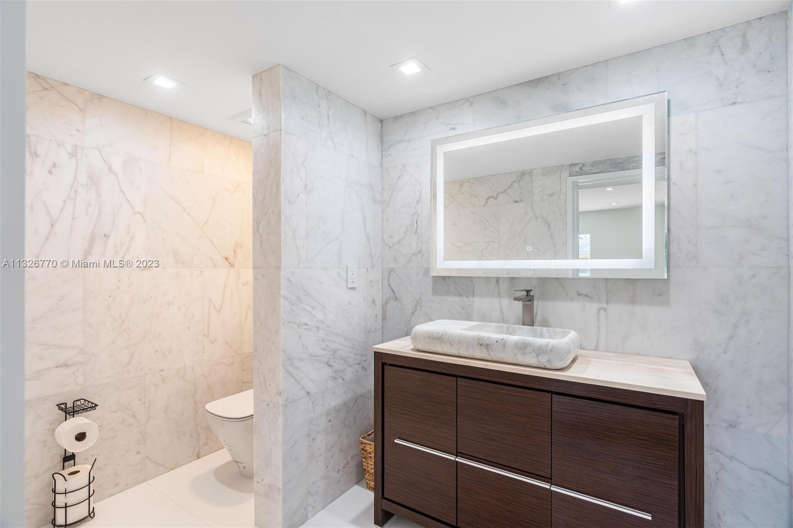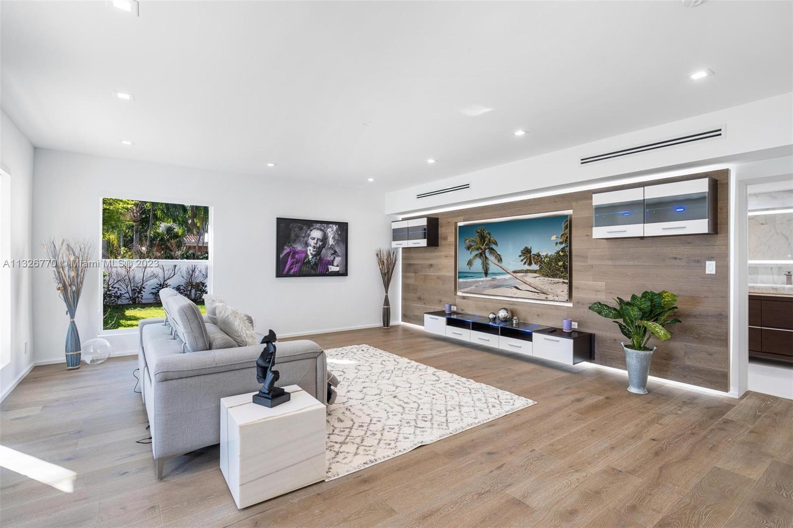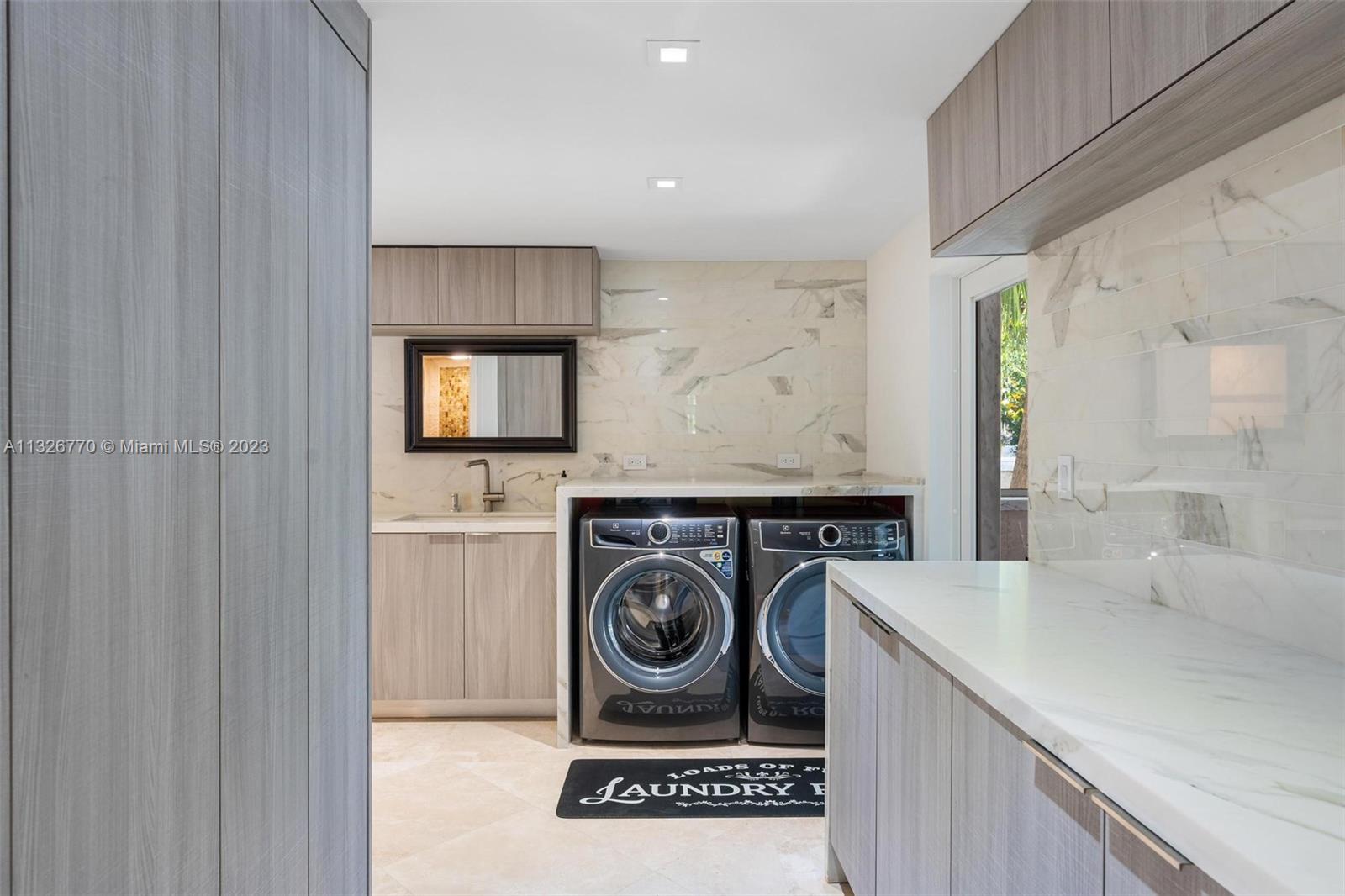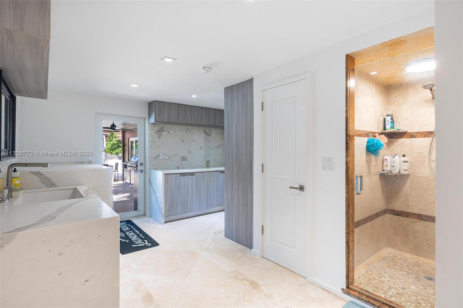 MODERN. LUXURIOUS. ELEGANT. This stunning residence in the upscale Hollywood Lakes neighborhood features exquisite finishes from its exterior marble-clad facade, custom wood cabinetry, Calacatta waterfall islands, custom marble staircase, and travertine/marble floors. This 4 bed, 4 bath home sits on a corner lot steps away from the bay and offers an open floor plan, impact windows, custom bar + modern wine rack, two outdoor gazebos with a fully-equipped summer kitchen, gorgeous pool deck + manicured landscaping, and oversized laundry room. The master suite offers a sitting area + outdoor terrace overlooking the water, mesmerizing statuary marble bathroom with rain shower + spa tub, and custom walk-in closet cabinetry. Marvelous home with the most exceptional materials and finishes!