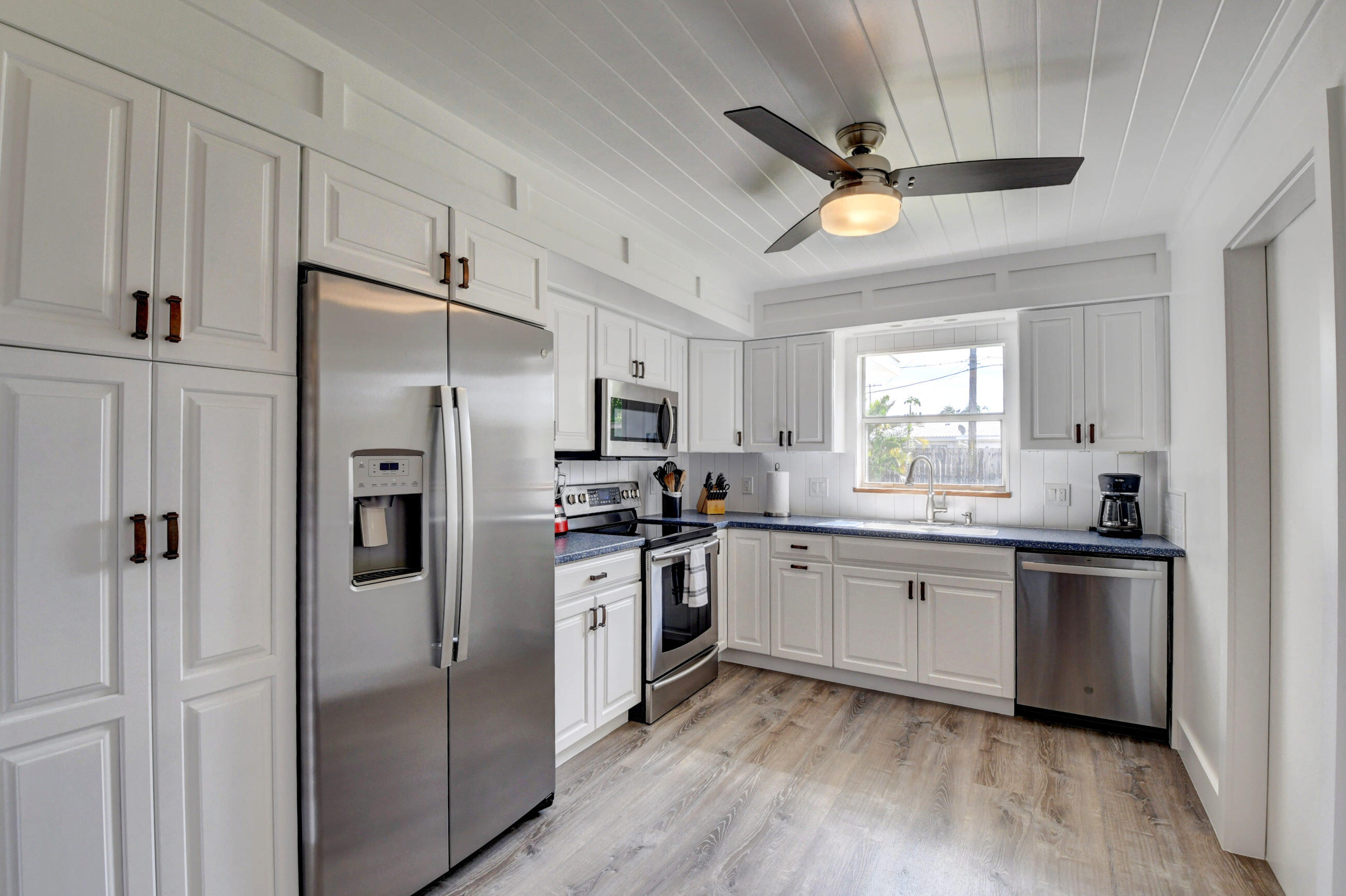 Now's your chance to own this charming pool home located in the heart of Boca - near downtown with close proximity to Mizner Park, FAU and the beaches! This home has been fully renovated with expert craftsmanship, quality finishing details and many custom upgrades. There is a lot of natural light flowing through the home while the open floor plan allows for easy entertaining whether in the living room, dining room or sunroom. The kitchen features white cabinetry, Corian counters and stainless appliances with views of the back yard. The primary bedroom features 2 barn-style doors for the custom-designed walk-in closet and ensuite bath that is equipped with a custom fabricated vanity and walk-in shower. The hall bathroom has similar finishes. Other interior features include luxury vinyl